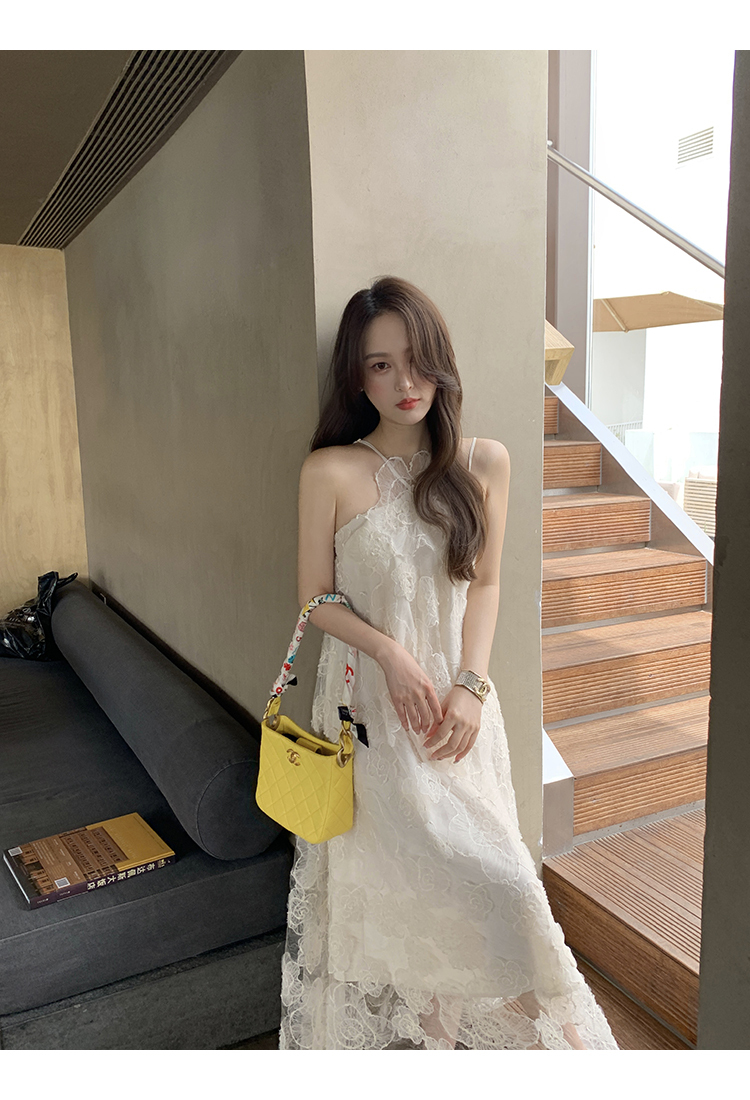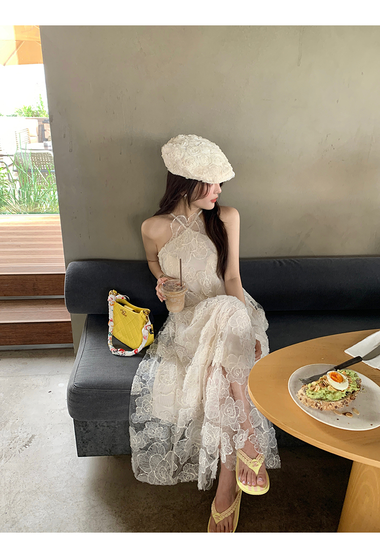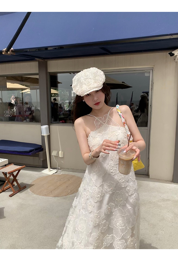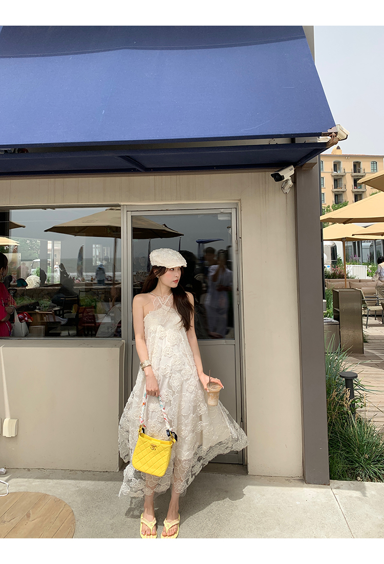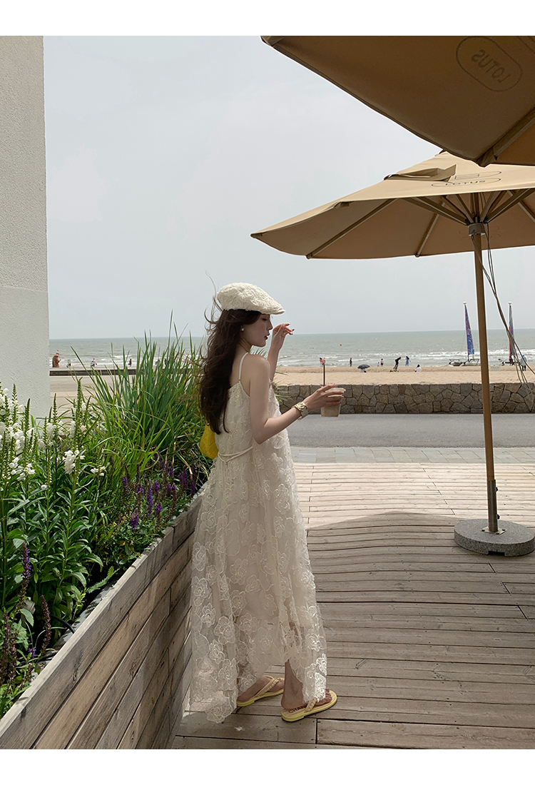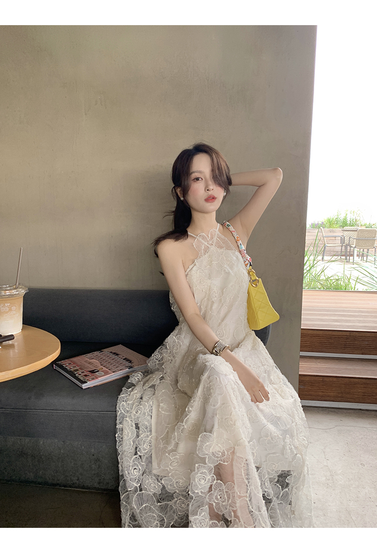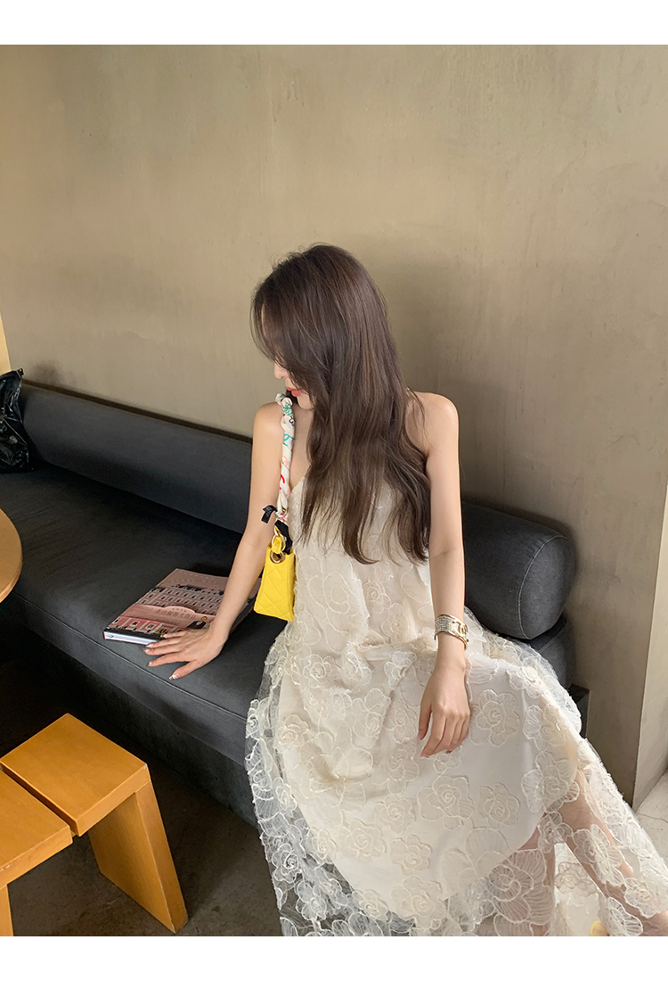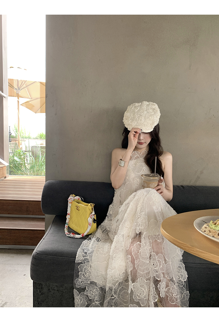 *o-ha-you*【FMQL2042092】浮世幽夢白月光輕禮服系列重工立體盤花蕾絲仙氣吊帶裙/連衣裙洋裝