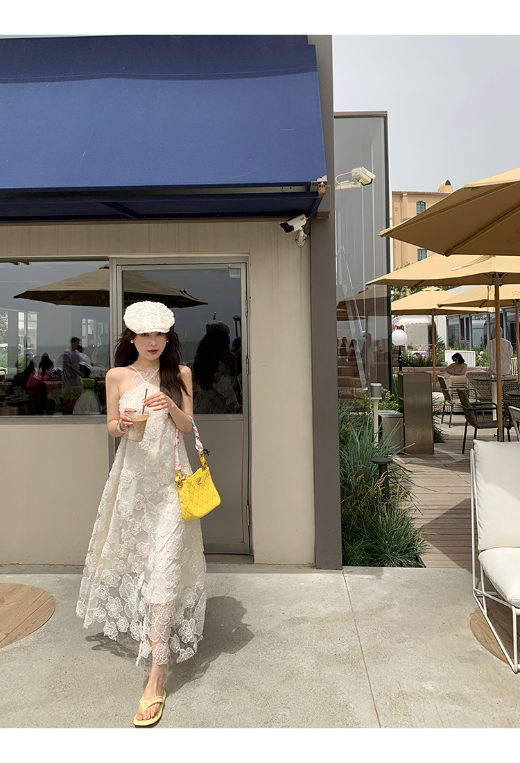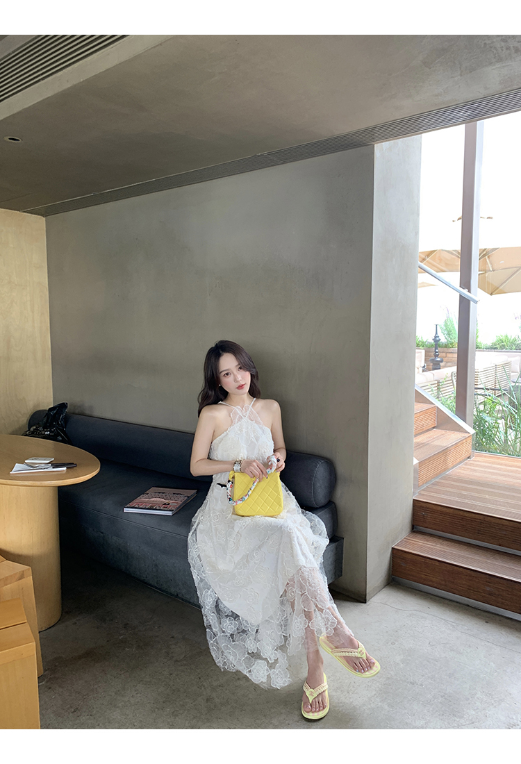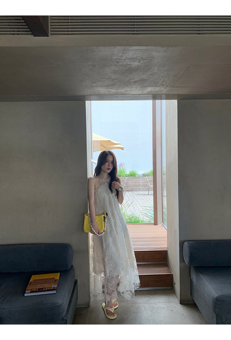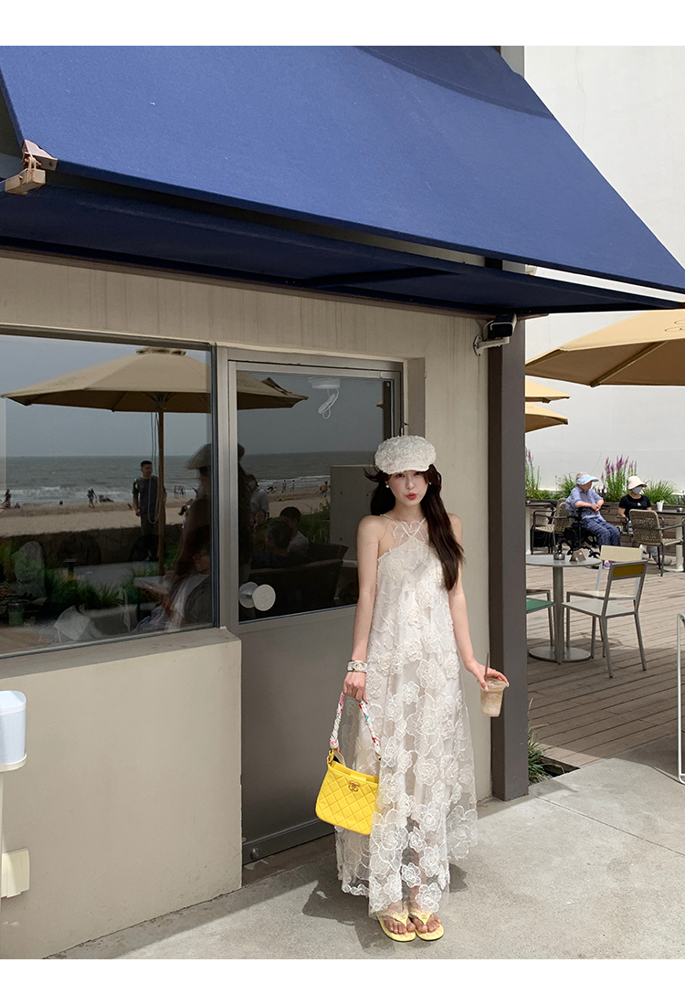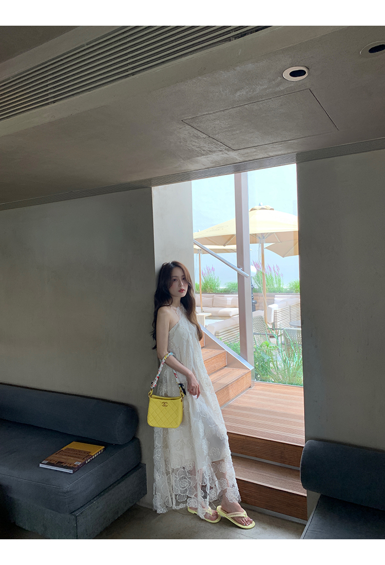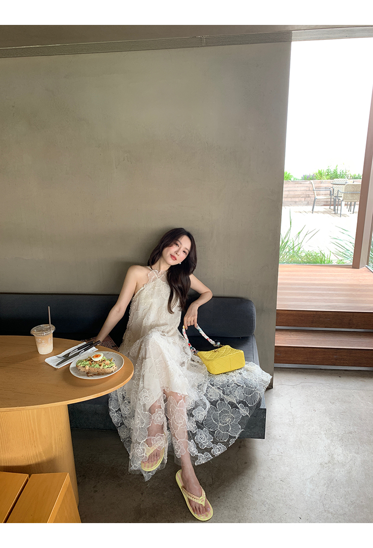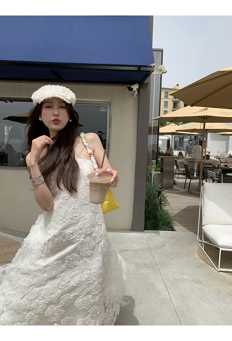 *o-ha-you*【FMQL2042092】浮世幽夢白月光輕禮服系列重工立體盤花蕾絲仙氣吊帶裙/連衣裙洋裝