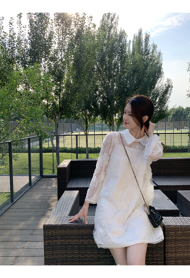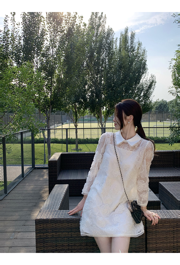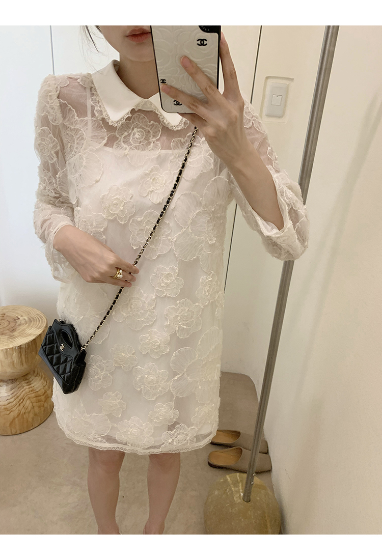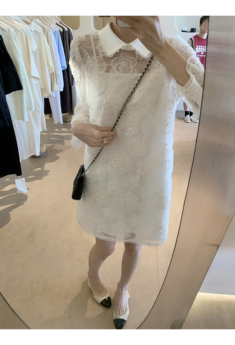 領口設計領口一大朵立體花朵點綴,唯美動人