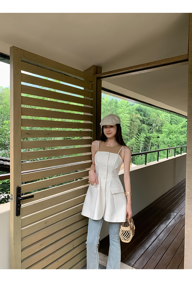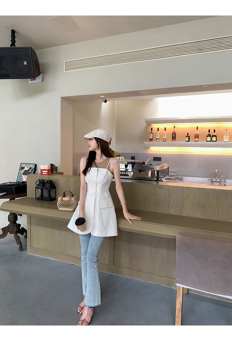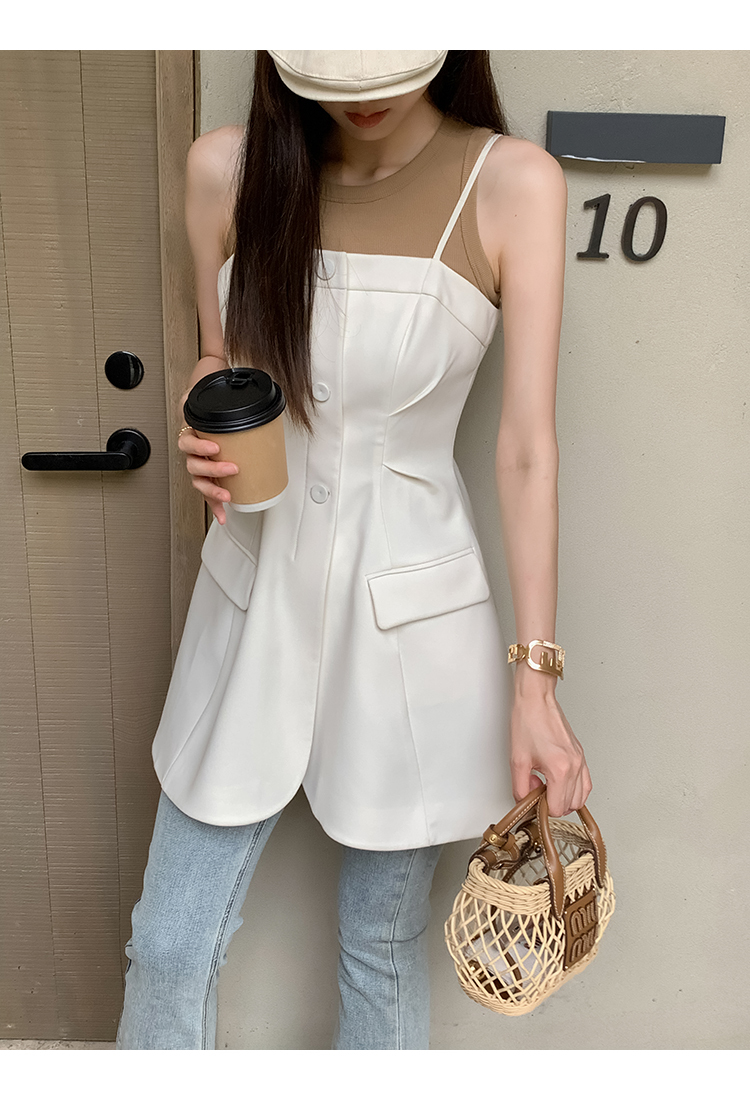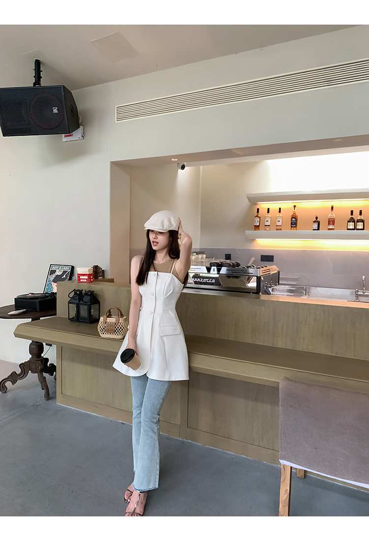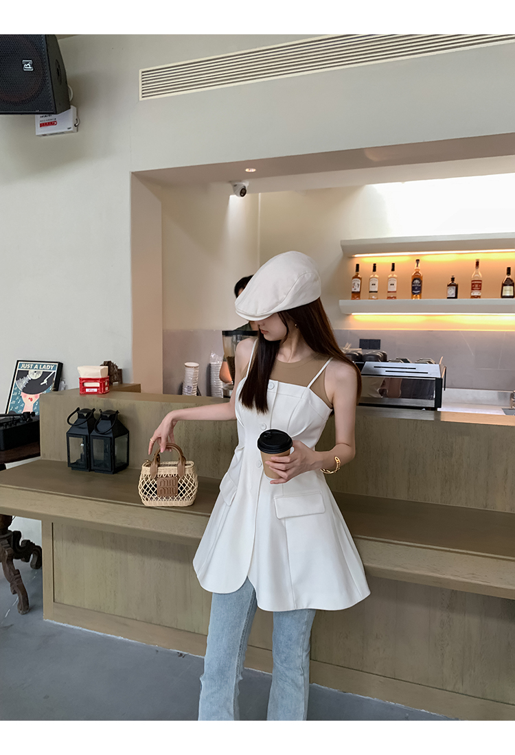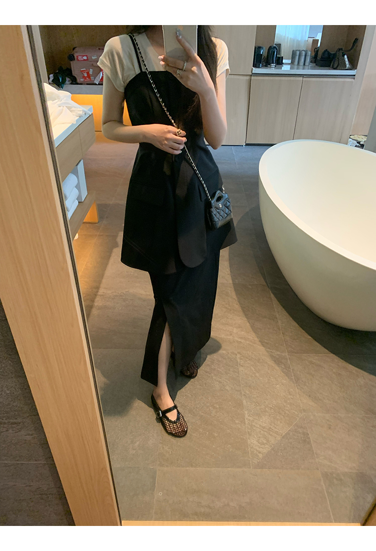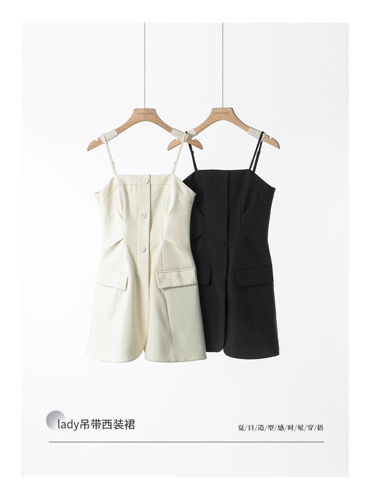 *o-ha-you*【FMQL2042099】lady吊帶西裝裙秒塑S腰氣質通勤收腰顯瘦中長版開襟上衣