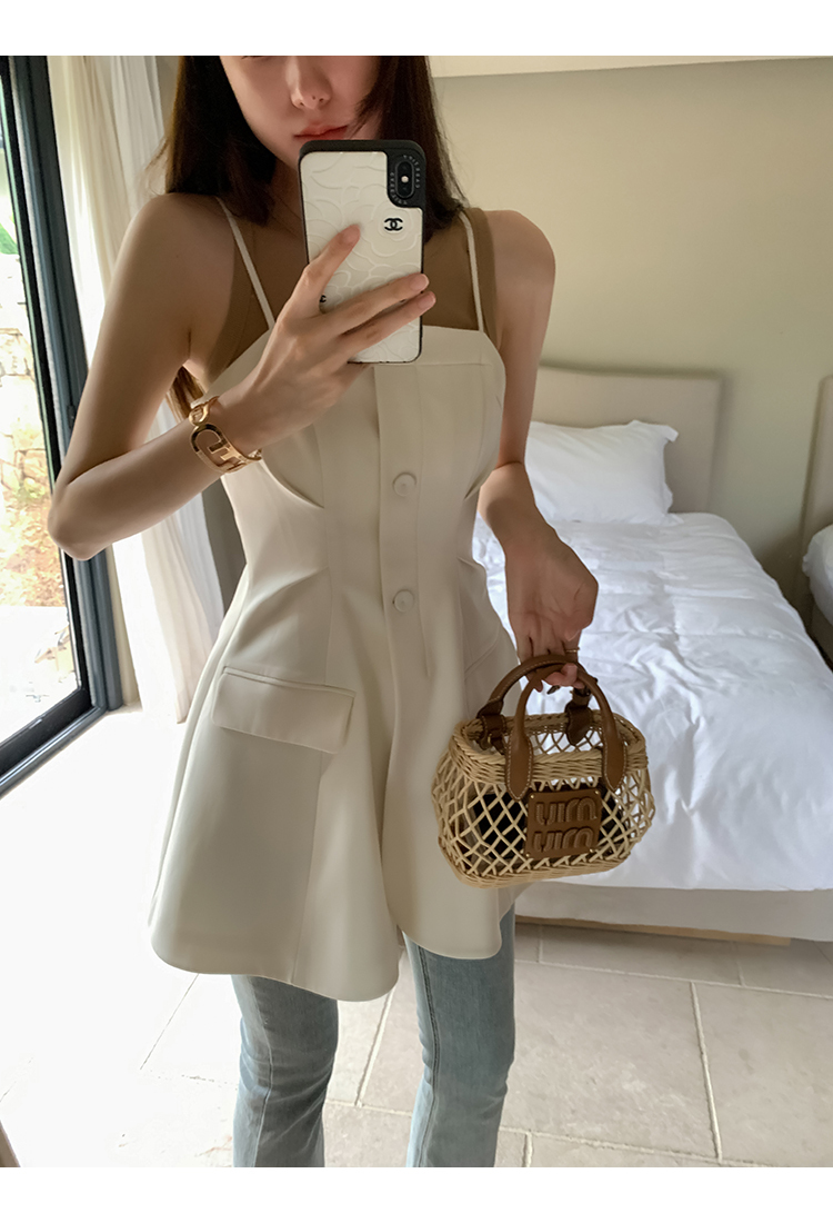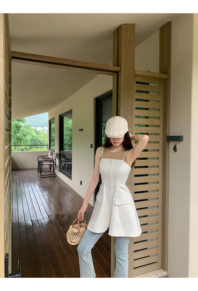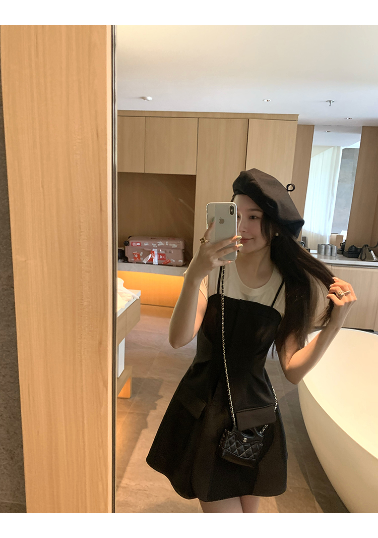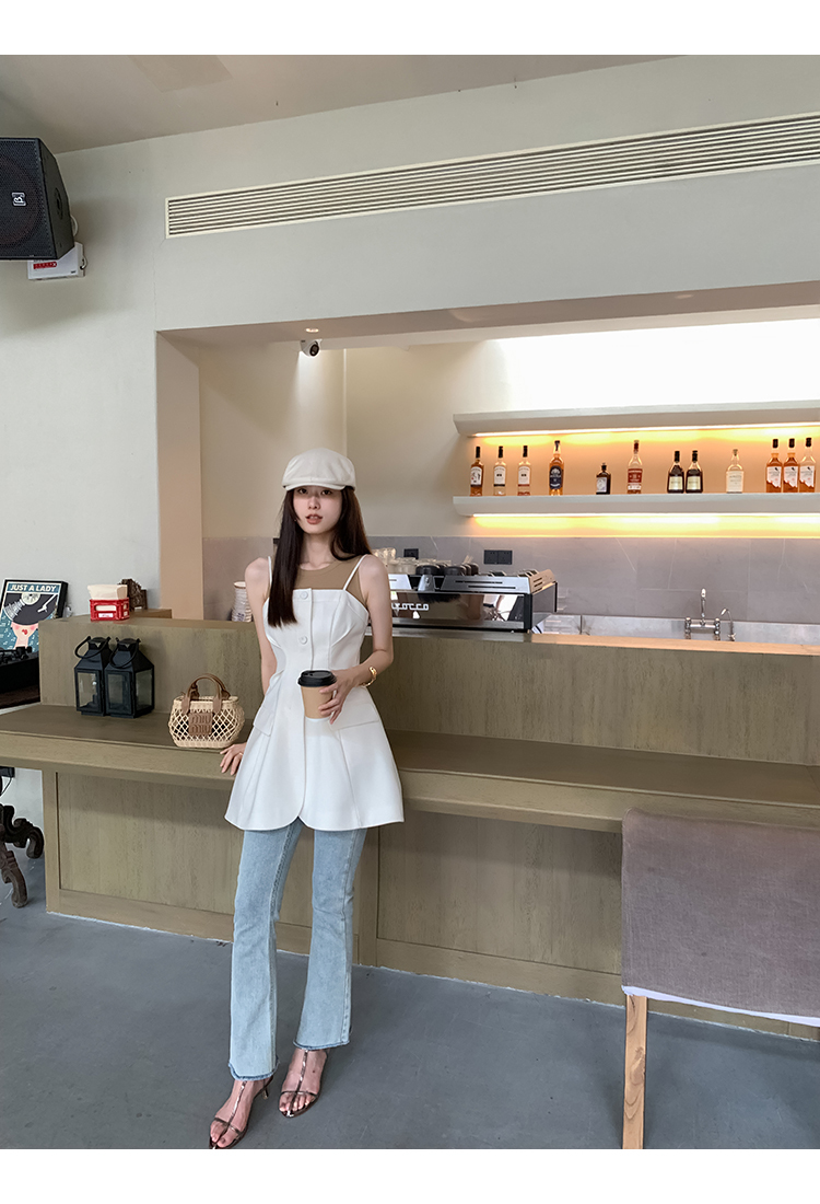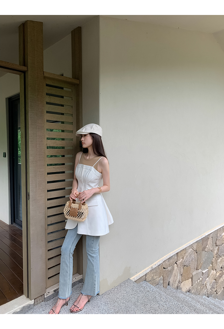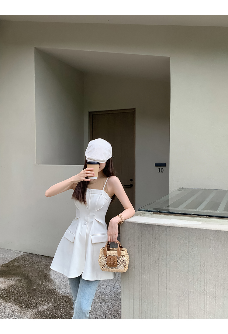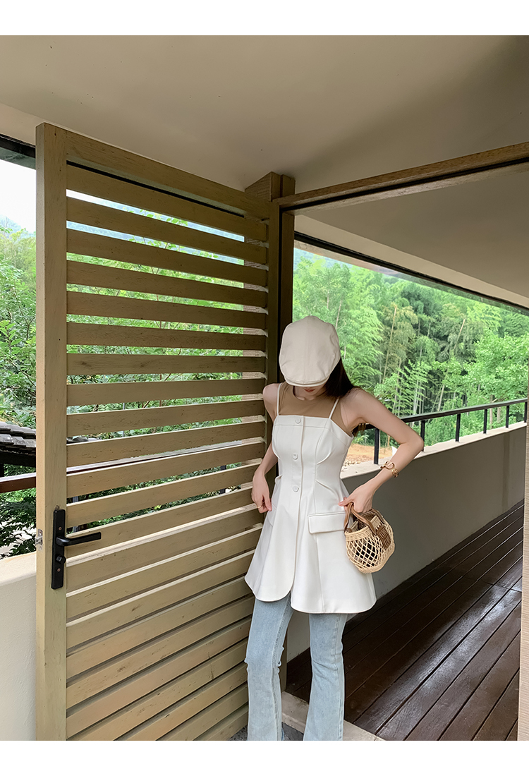*o-ha-you*【FMQL2042099】lady吊帶西裝裙秒塑S腰氣質通勤收腰顯瘦中長版開襟上衣