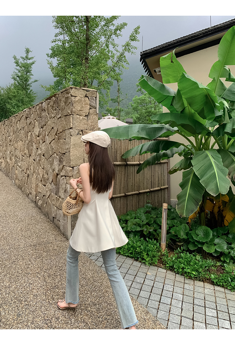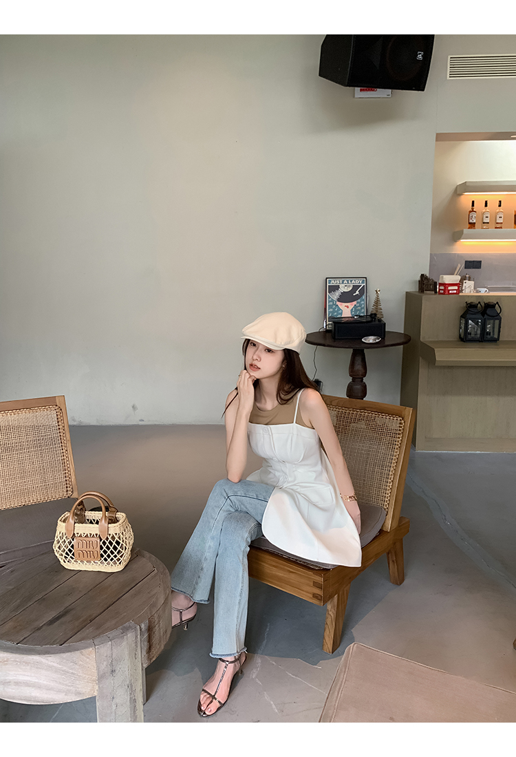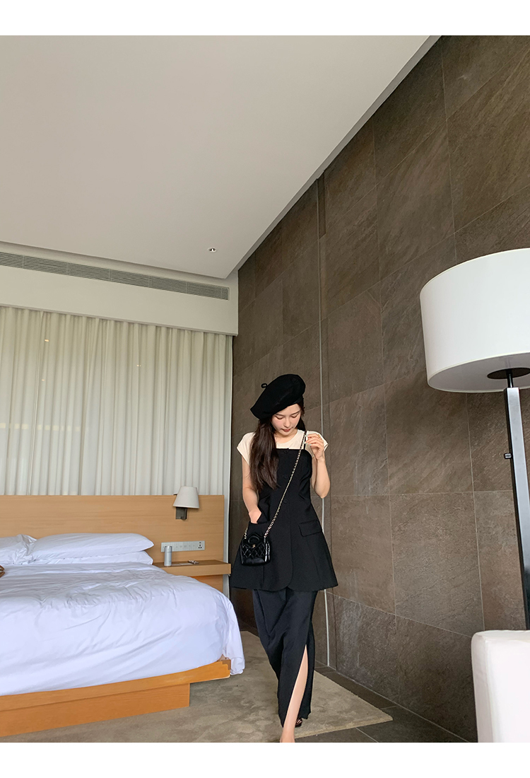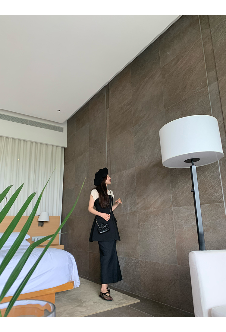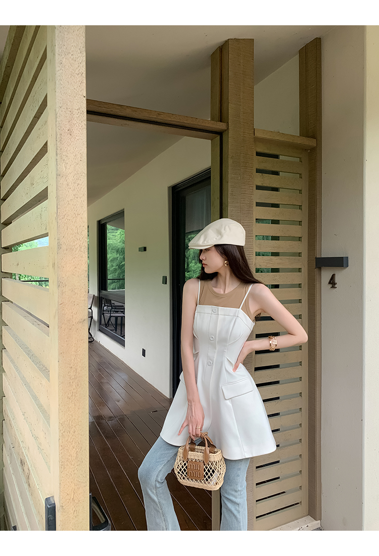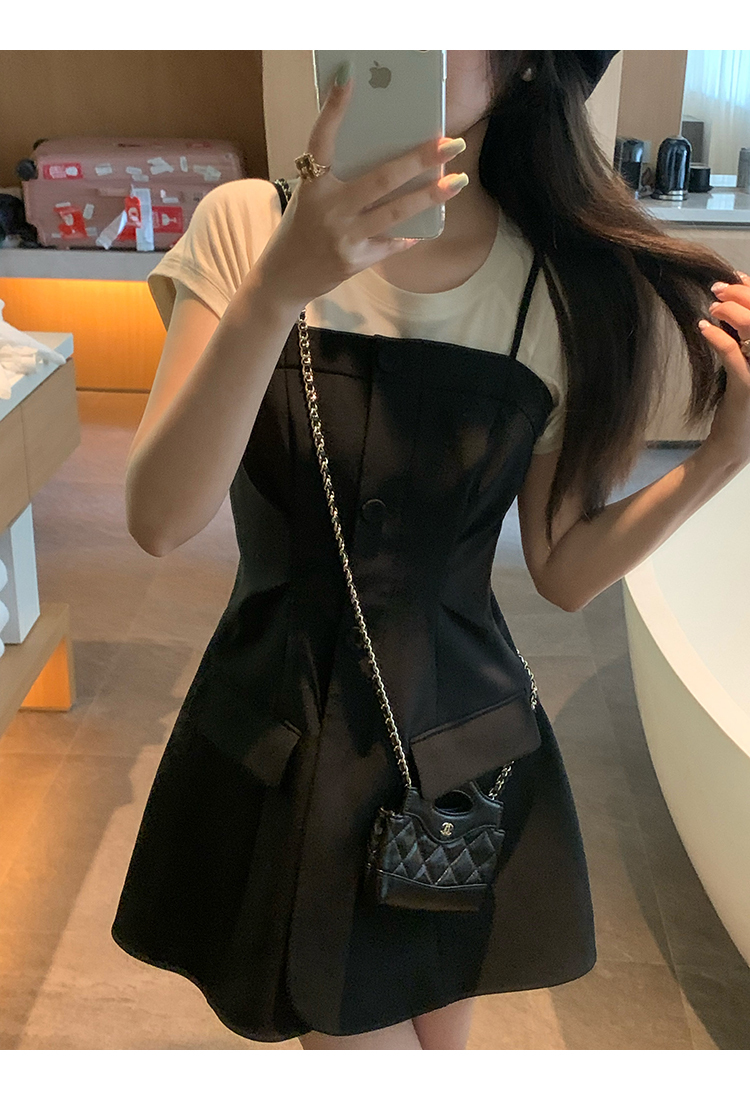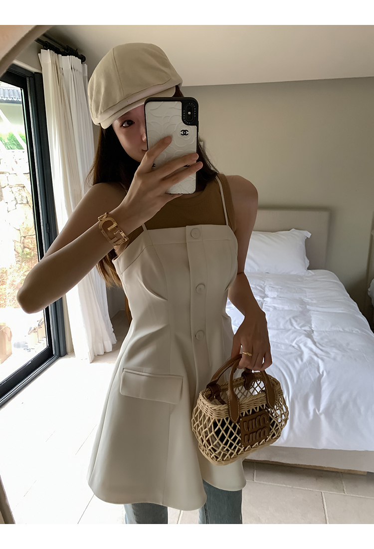 *o-ha-you*【FMQL2042099】lady吊帶西裝裙秒塑S腰氣質通勤收腰顯瘦中長版開襟上衣