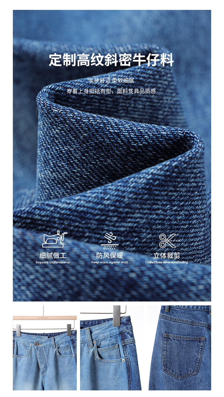 甄选高纹斜密牛仔面料,不轻易起球