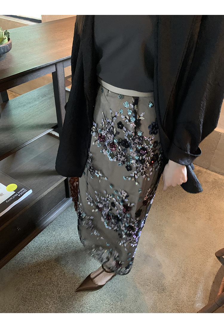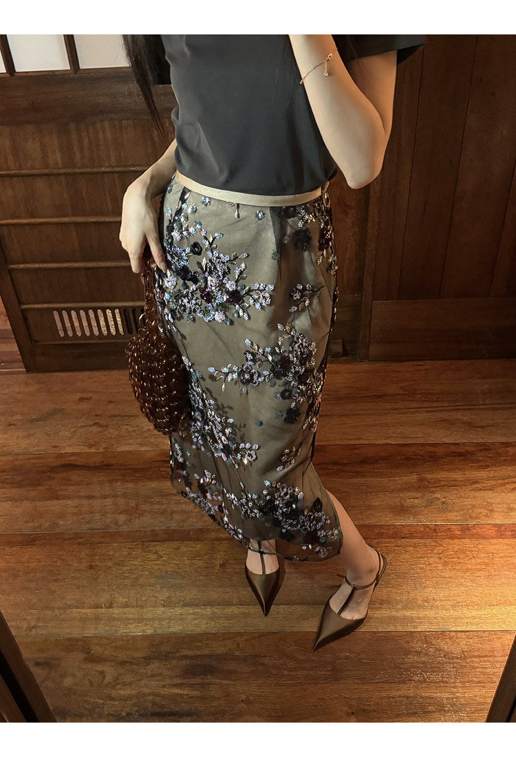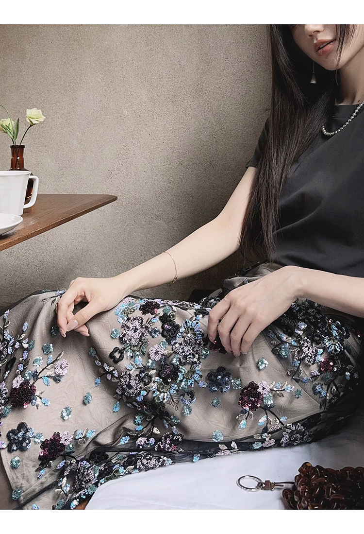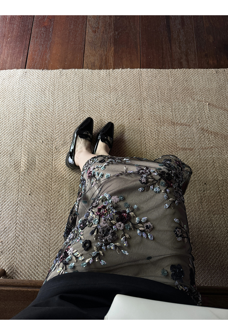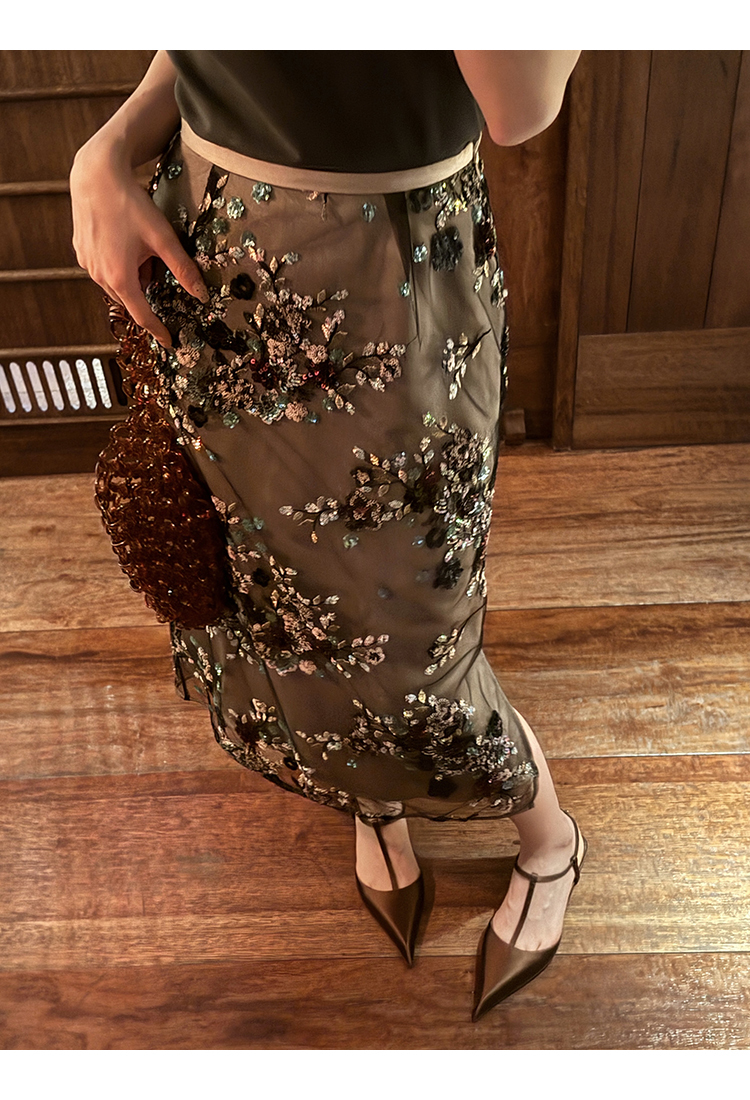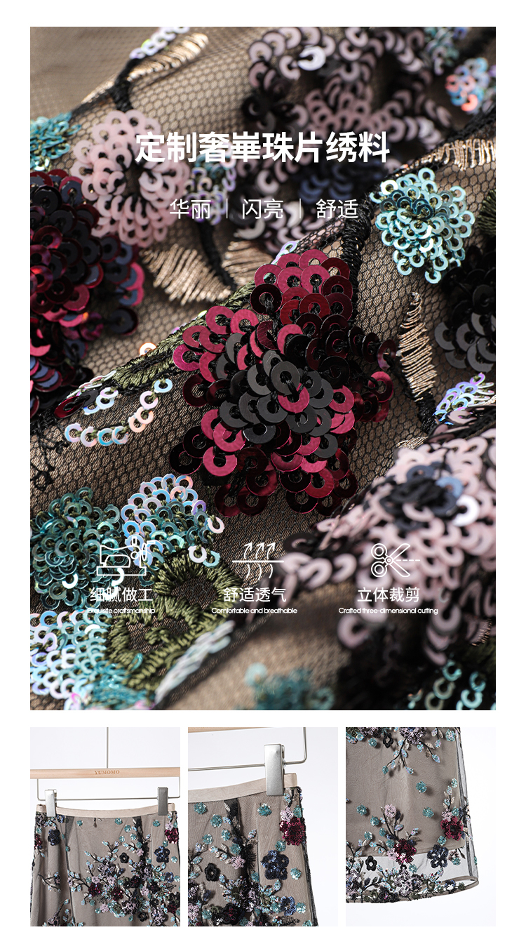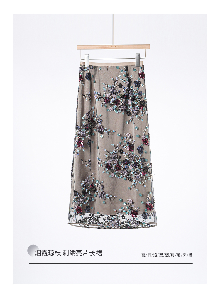 *o-ha-you*【FMQQ2041030】煙霞瓊枝重工手作優雅奢崋氛圍感半裙刺繡亮片碎花網紗長裙
