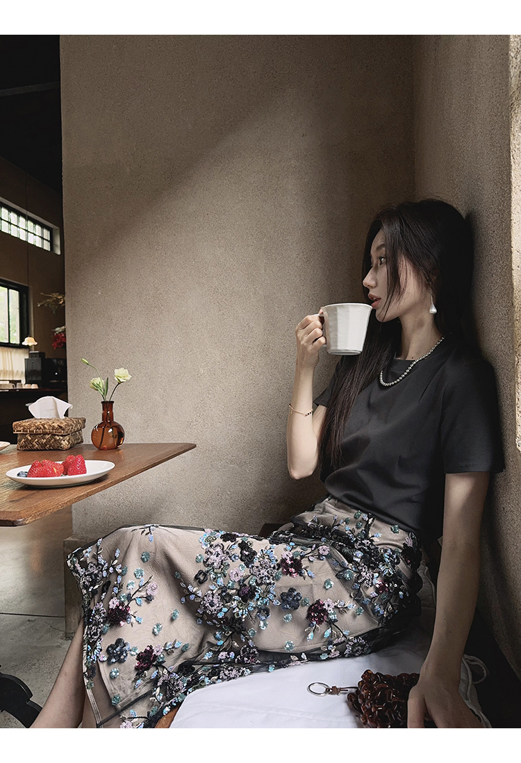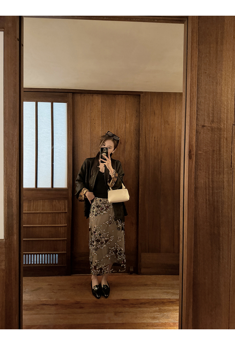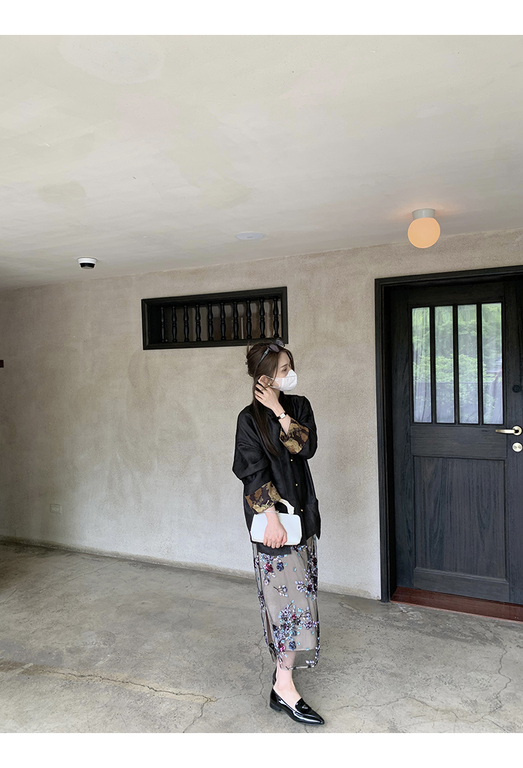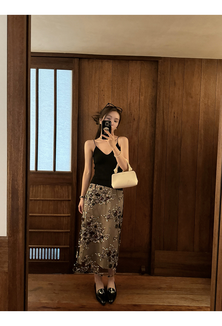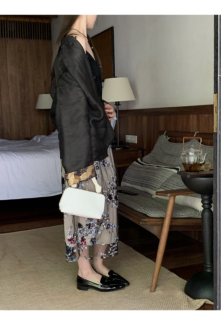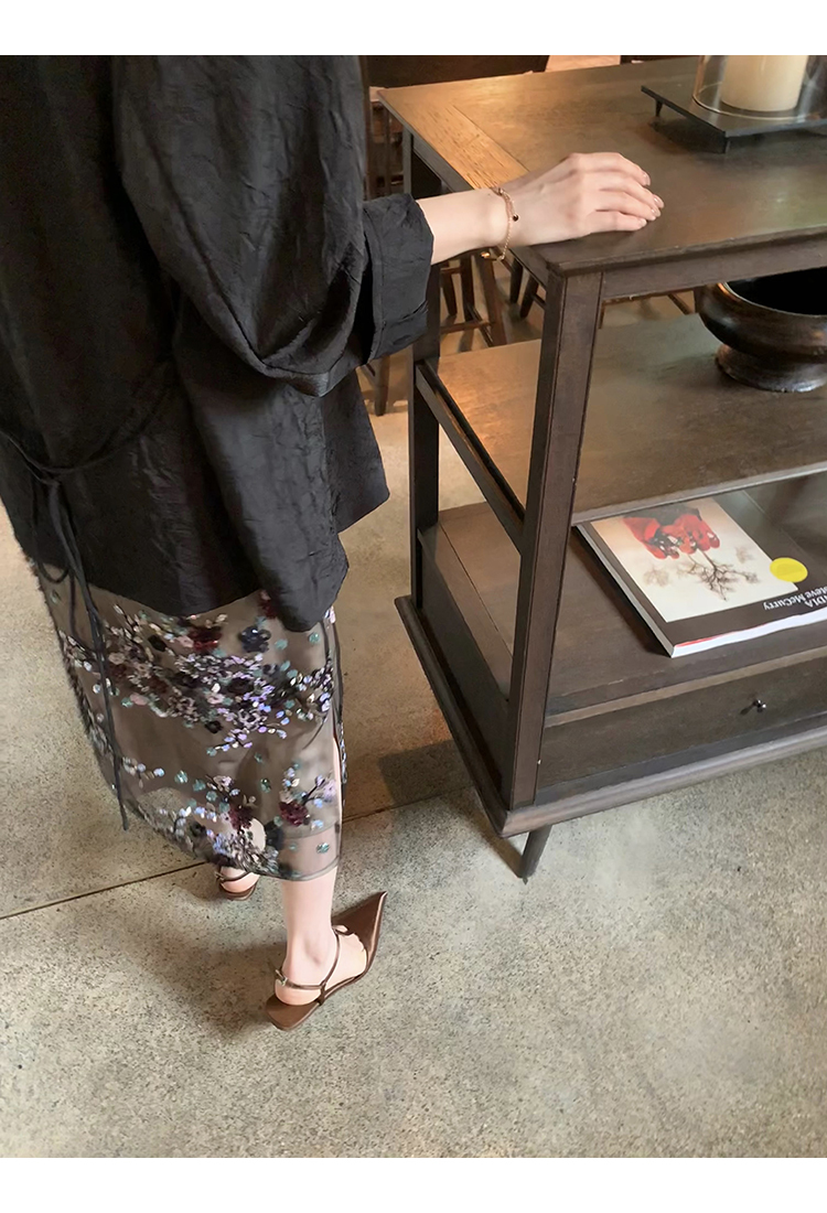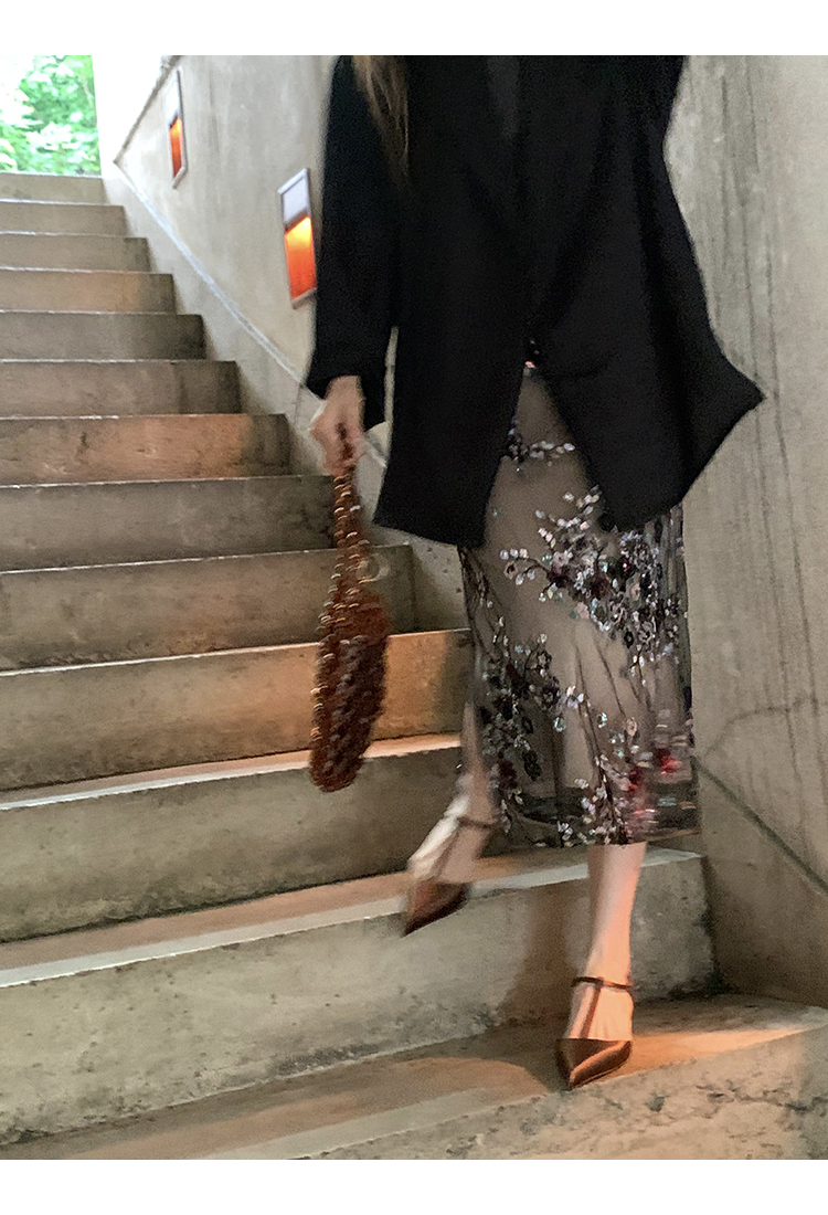 *o-ha-you*【FMQQ2041030】煙霞瓊枝重工手作優雅奢崋氛圍感半裙刺繡亮片碎花網紗長裙