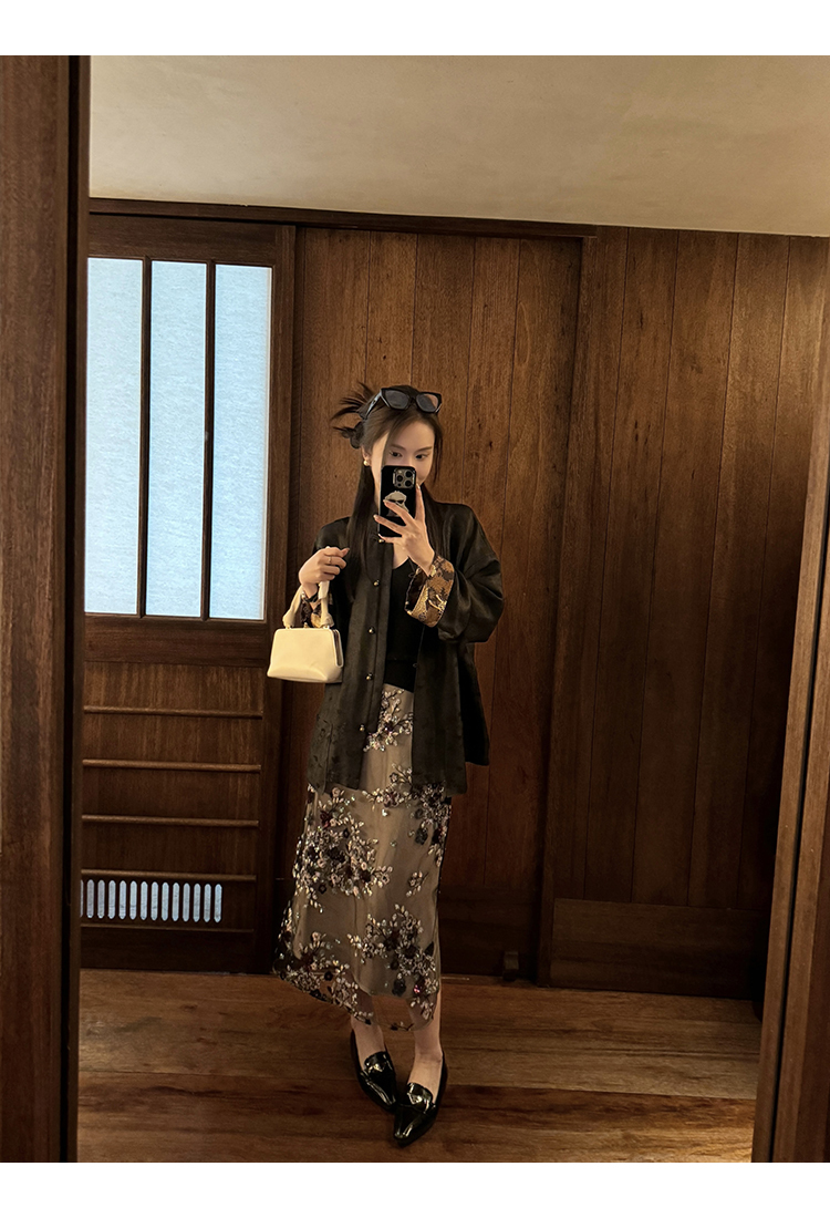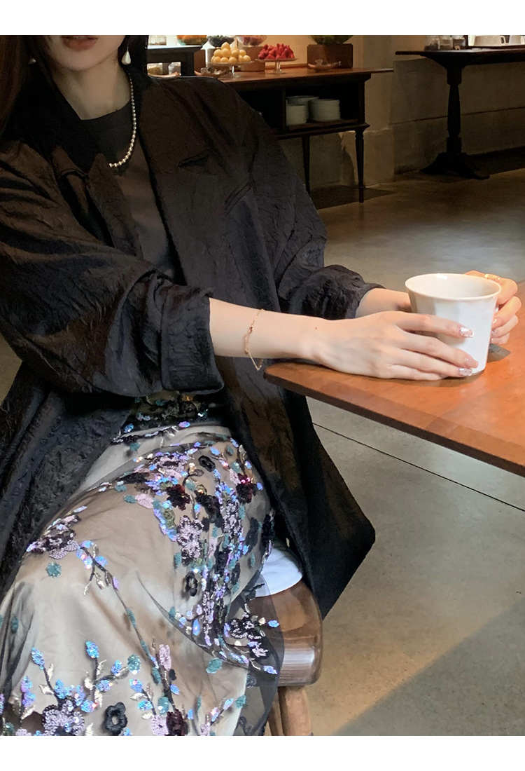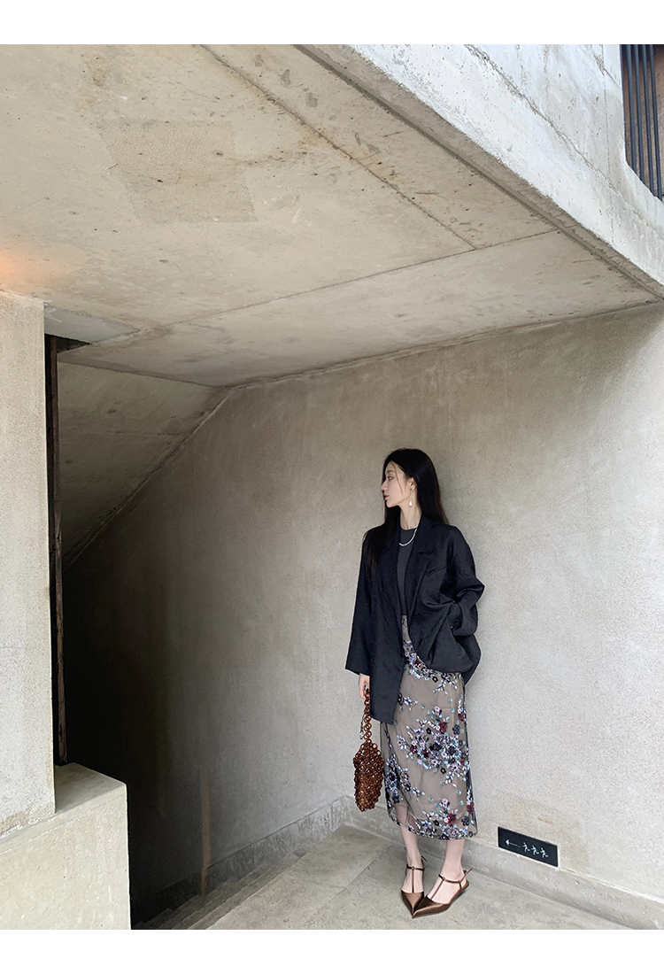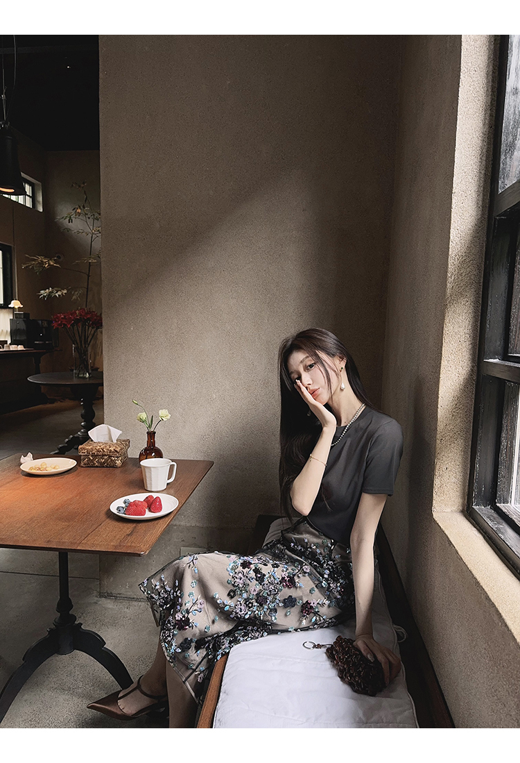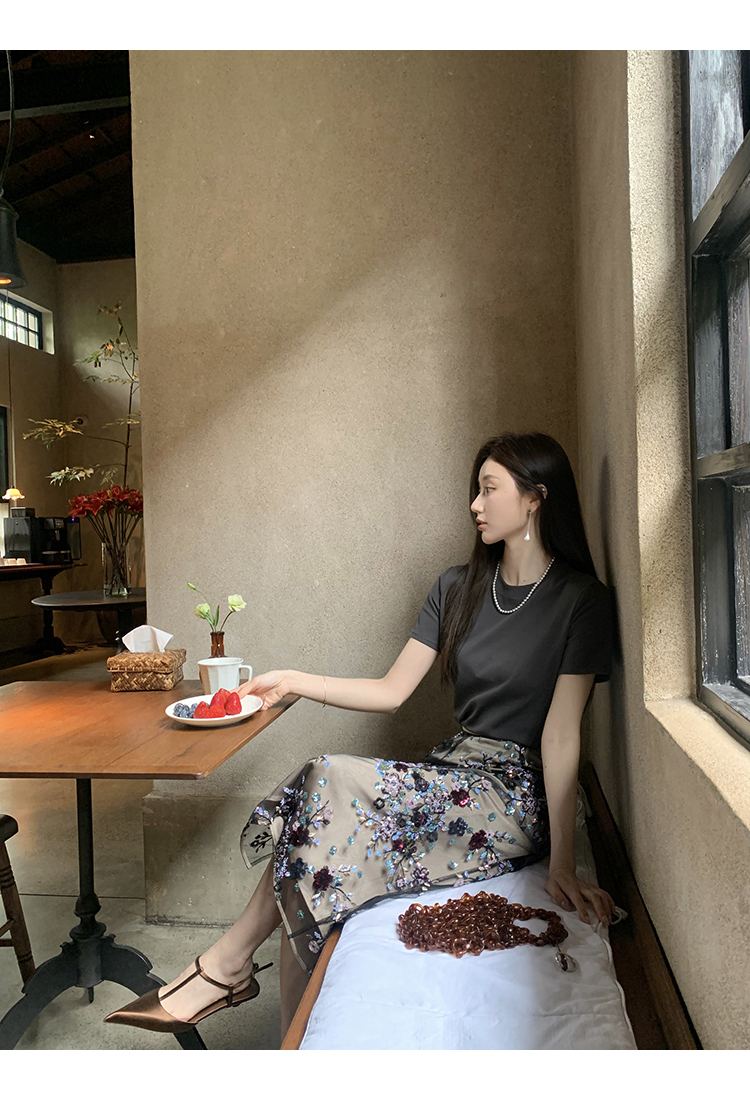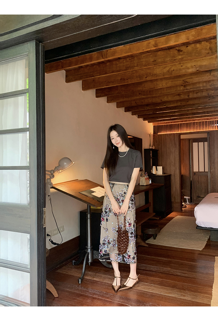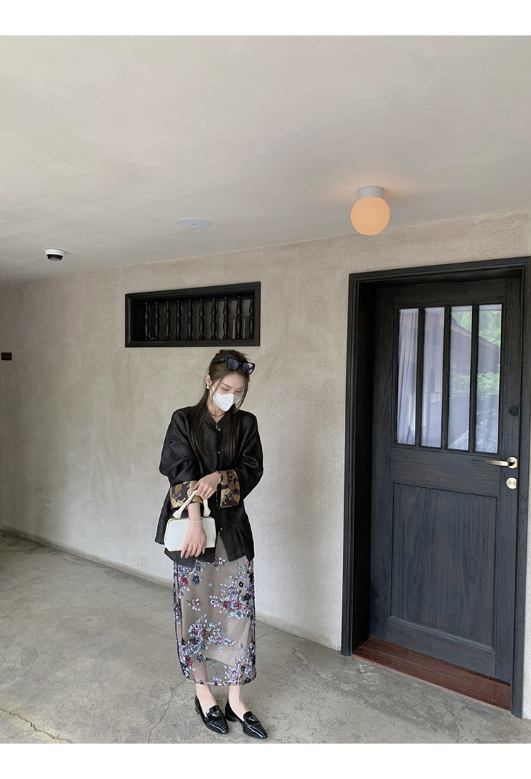 *o-ha-you*【FMQQ2041030】煙霞瓊枝重工手作優雅奢崋氛圍感半裙刺繡亮片碎花網紗長裙