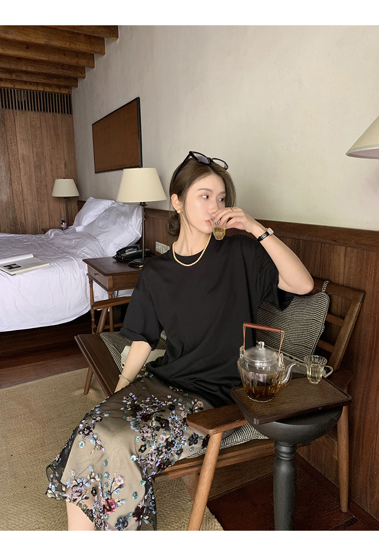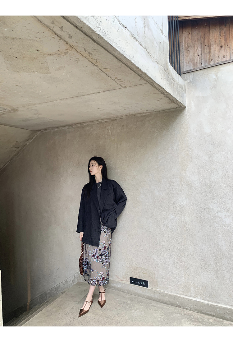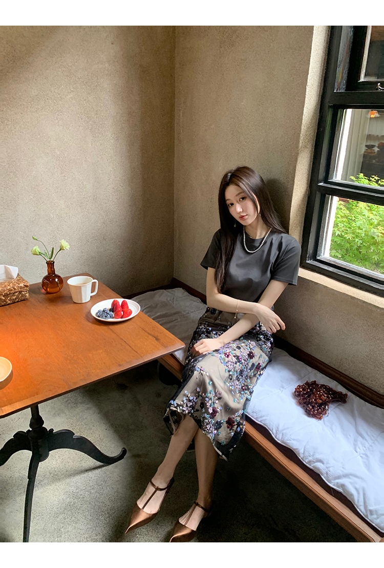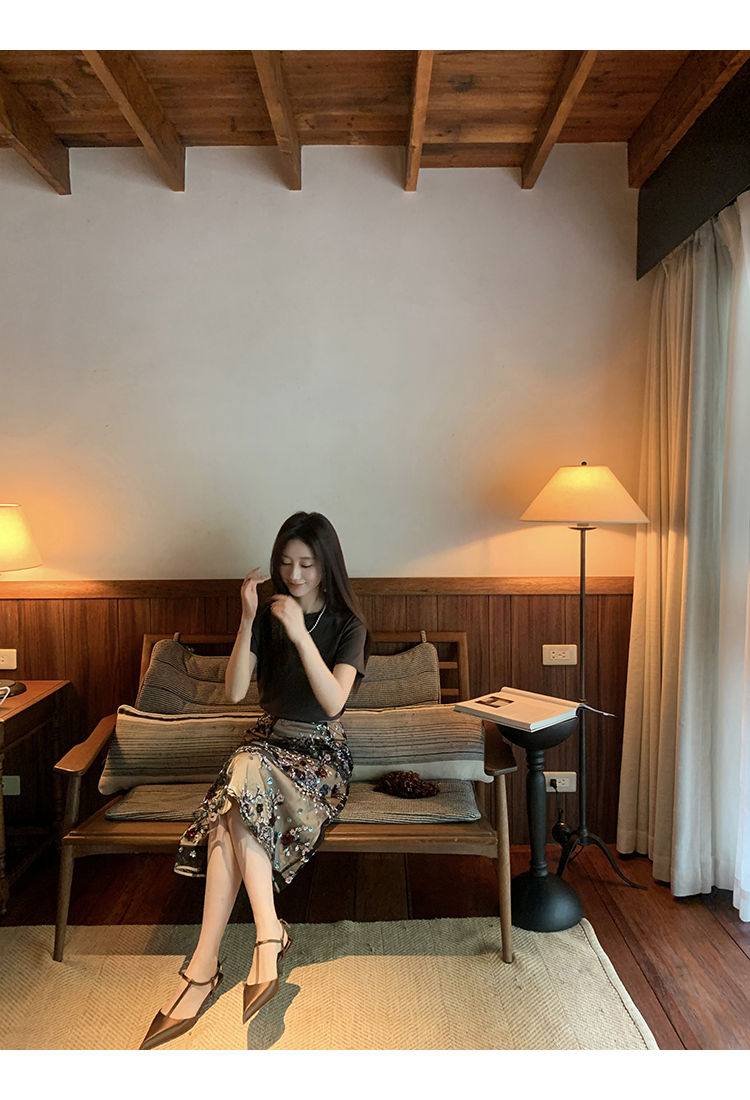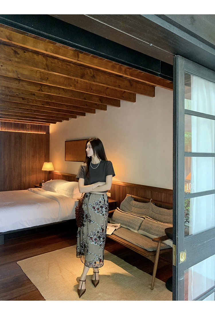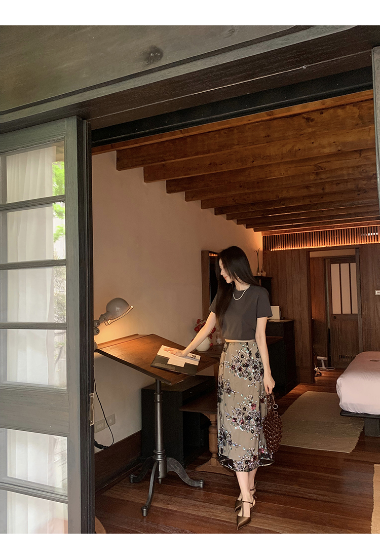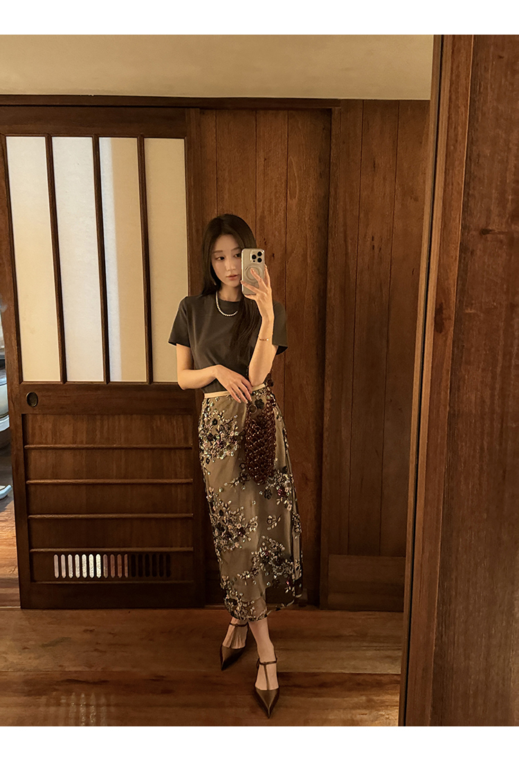 *o-ha-you*【FMQQ2041030】煙霞瓊枝重工手作優雅奢崋氛圍感半裙刺繡亮片碎花網紗長裙