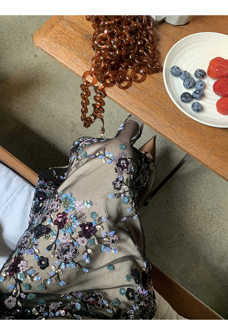 此款布料採用重工珠片繡花,為保護衣服的使用壽命,務必乾洗,切勿機洗和手洗!