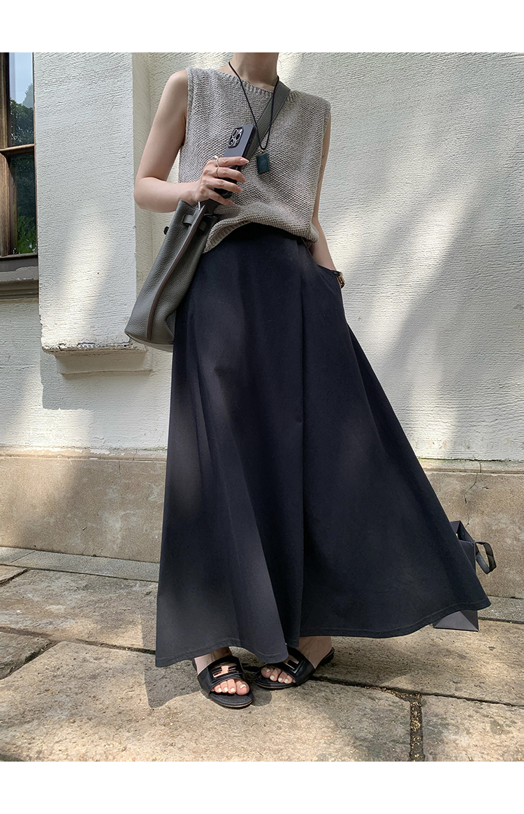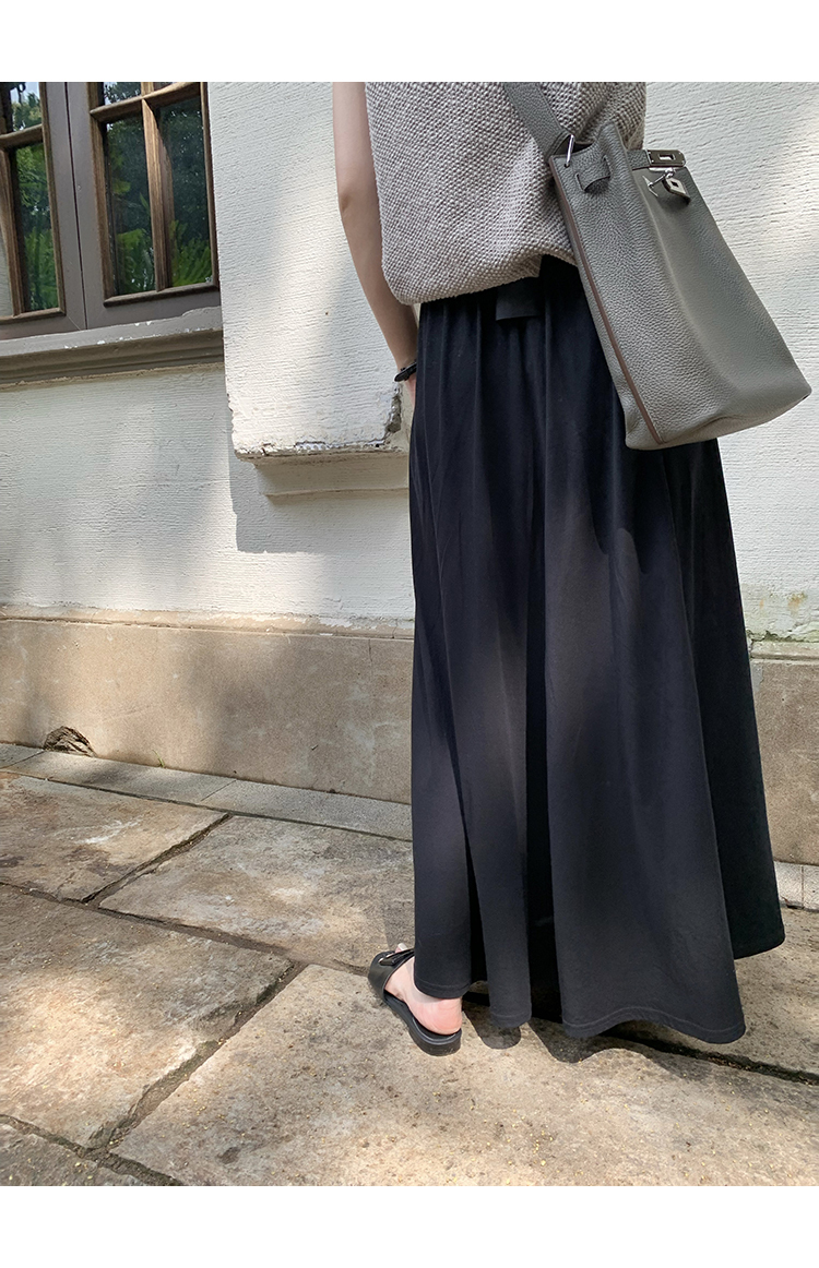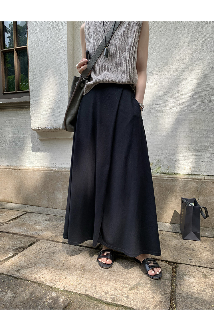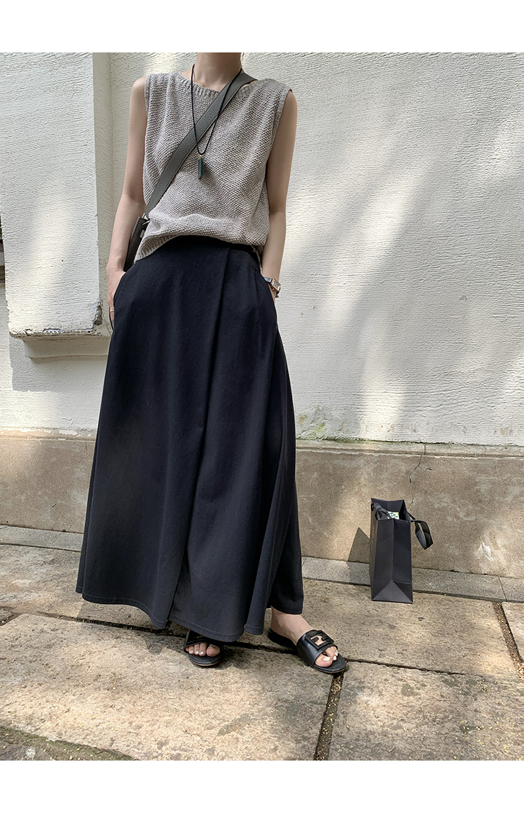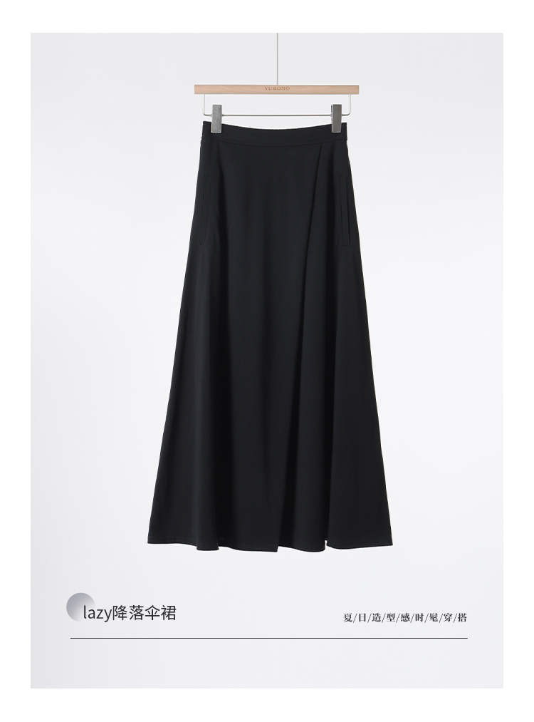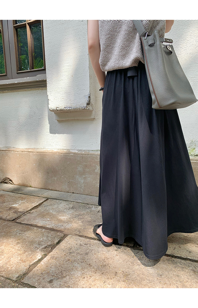 *o-ha-you*【FMQQ2042028】lazy降落傘裙訂製32支天然高支棉針織 鬆緊腰顯瘦A字休閒長半裙