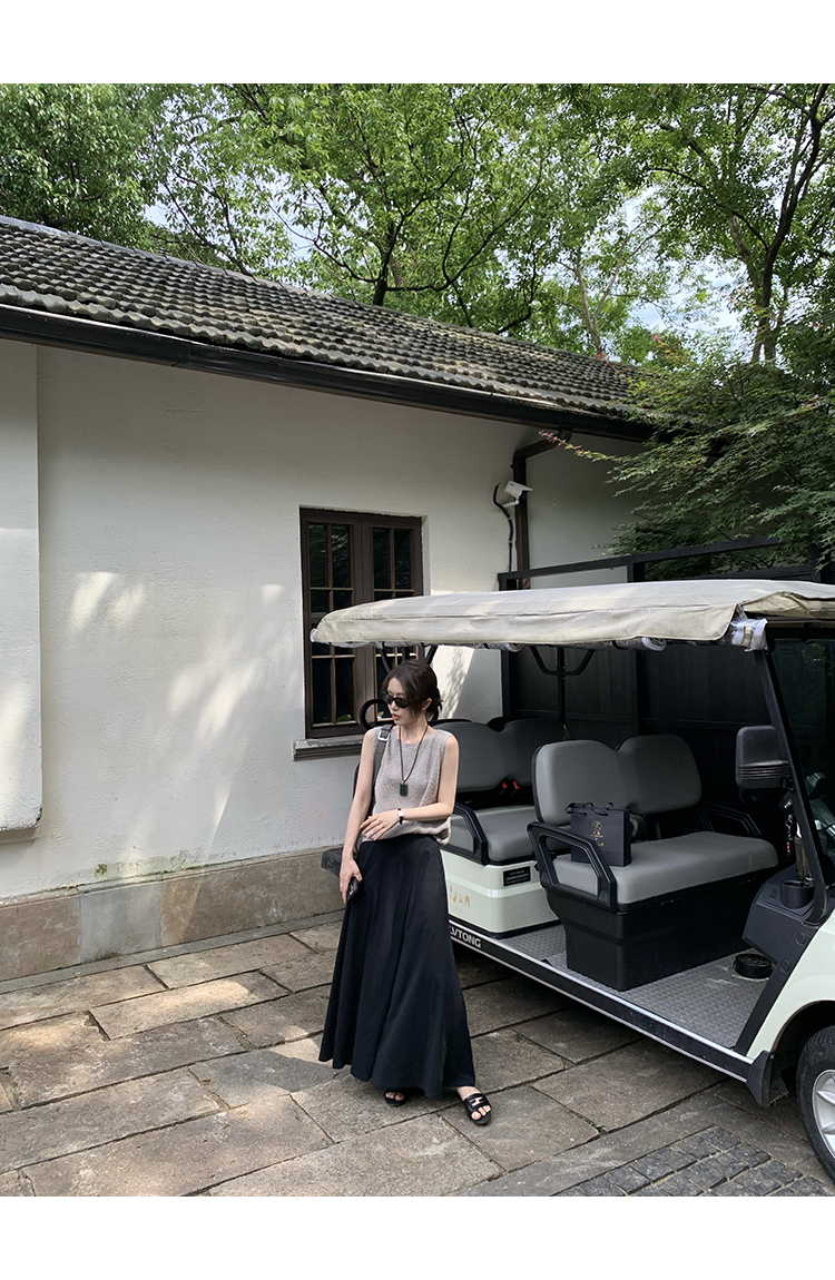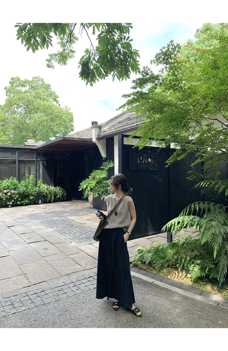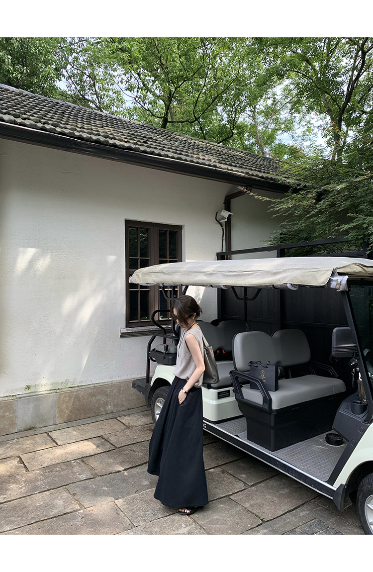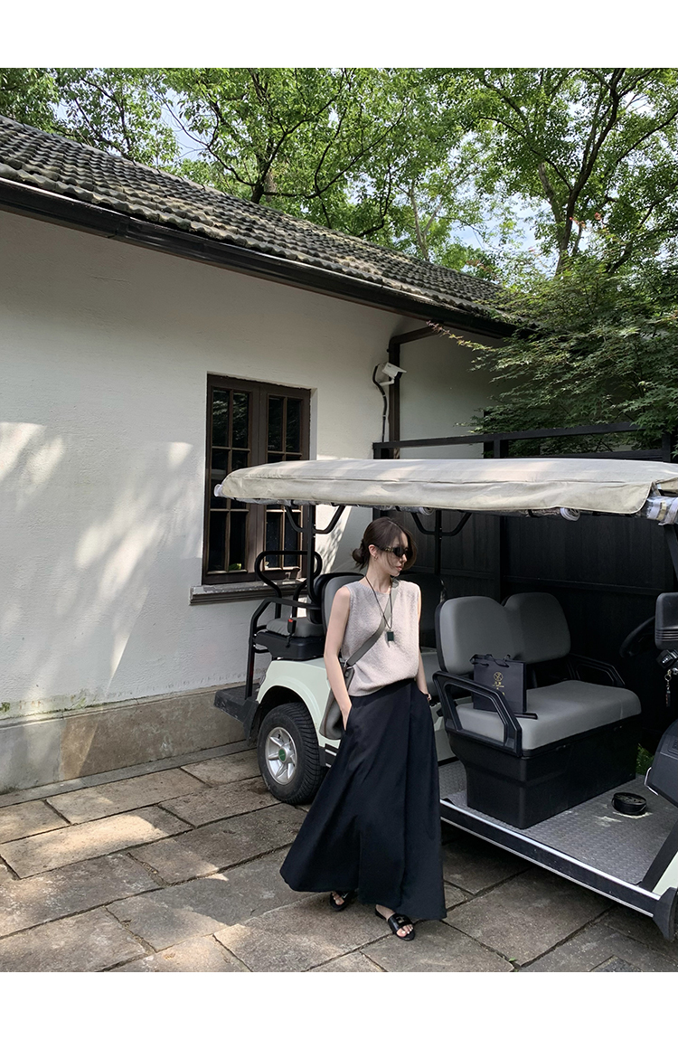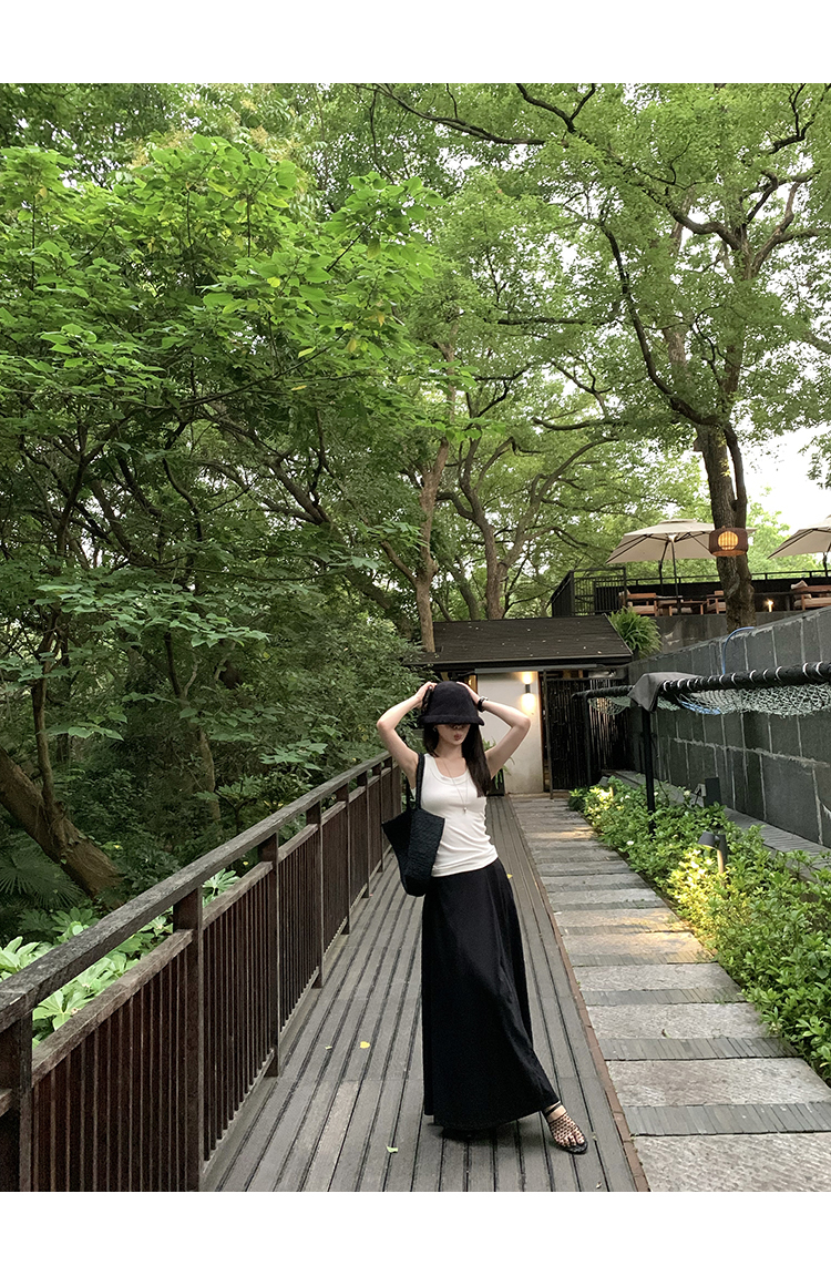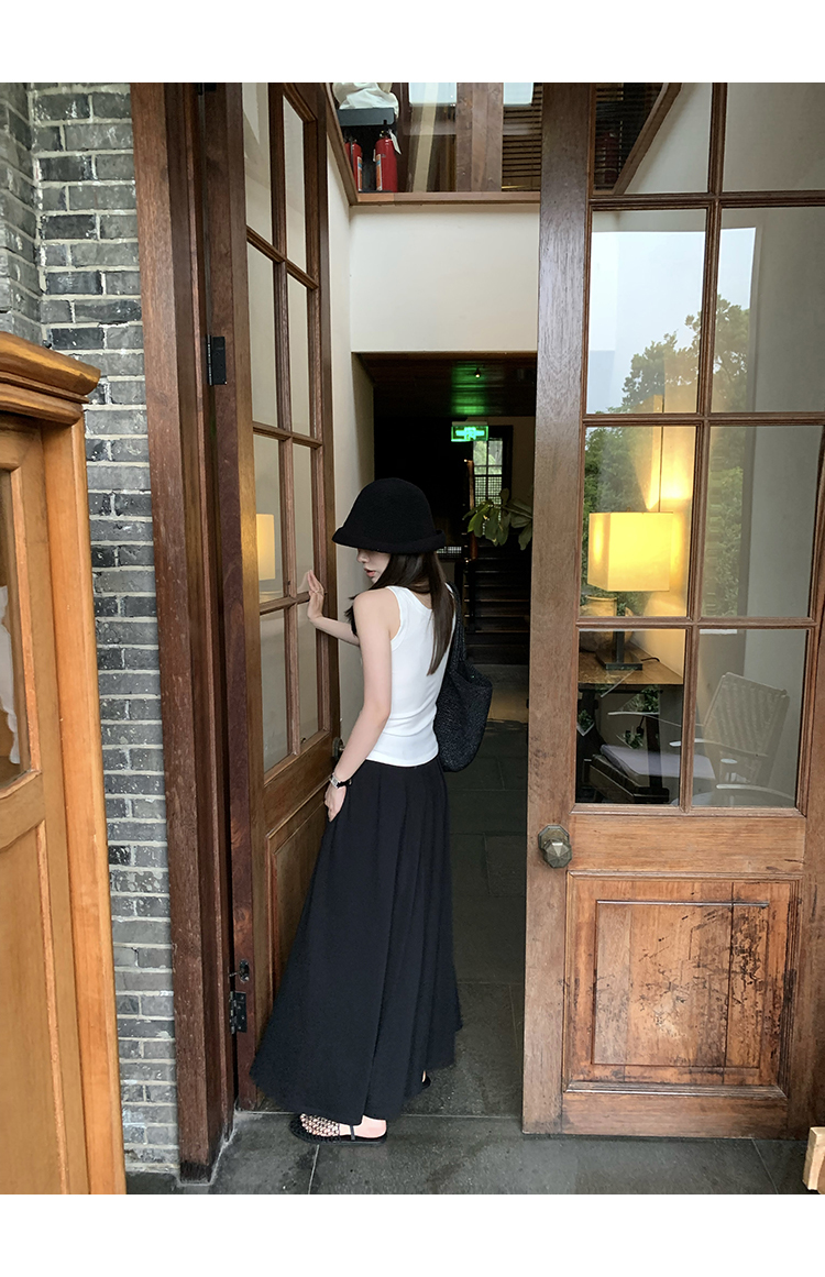 *o-ha-you*【FMQQ2042028】lazy降落傘裙訂製32支天然高支棉針織 鬆緊腰顯瘦A字休閒長半裙
