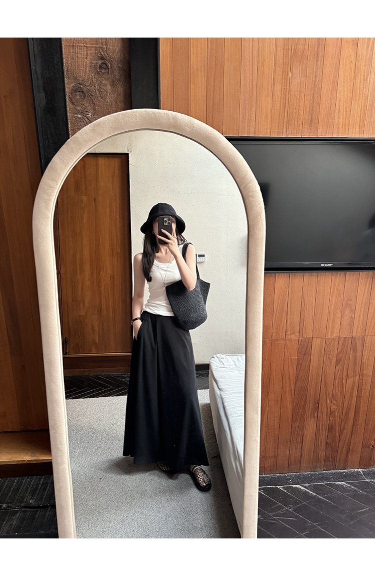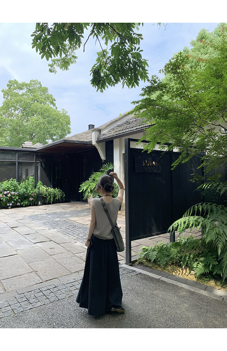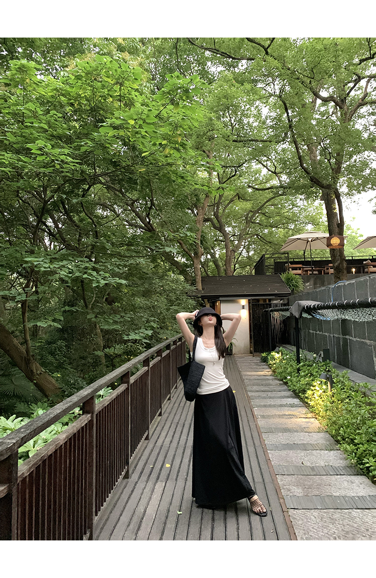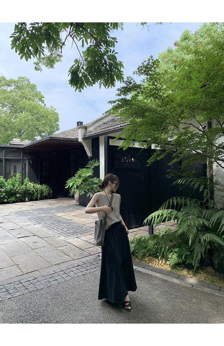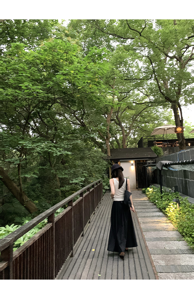 *o-ha-you*【FMQQ2042028】lazy降落傘裙訂製32支天然高支棉針織 鬆緊腰顯瘦A字休閒長半裙