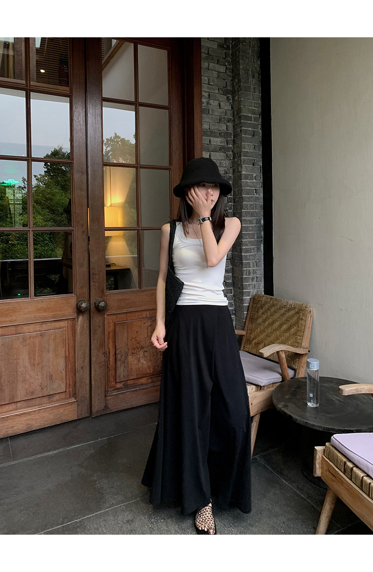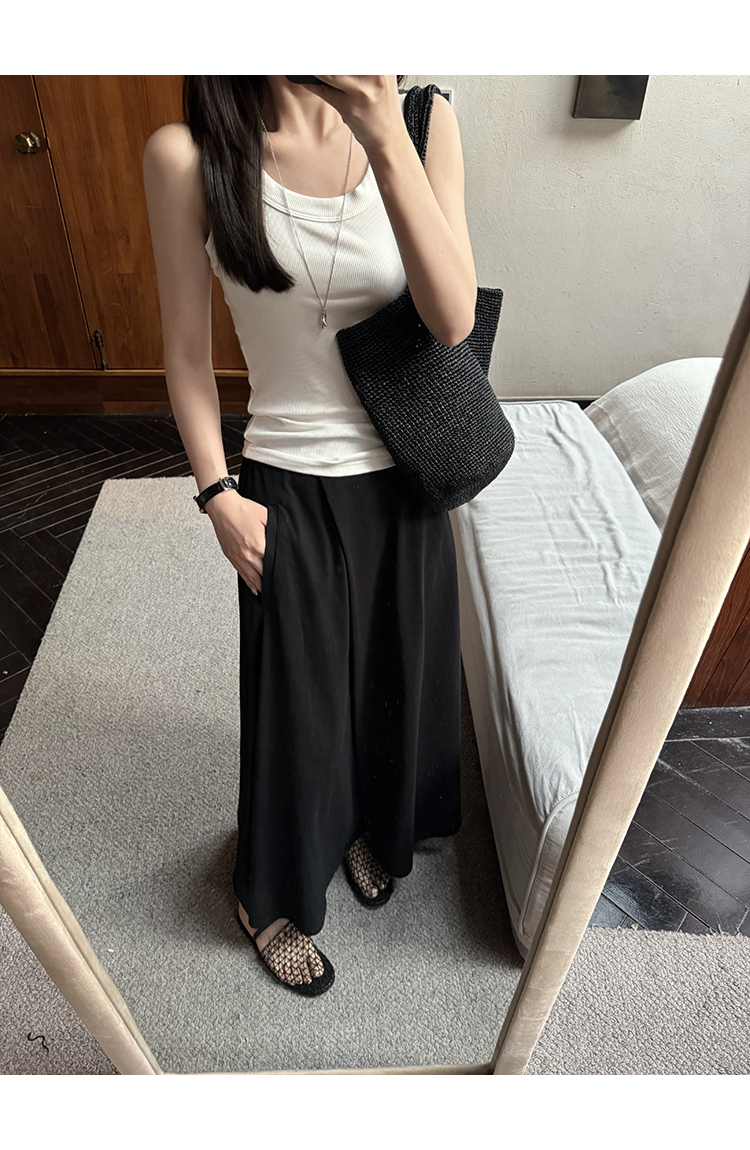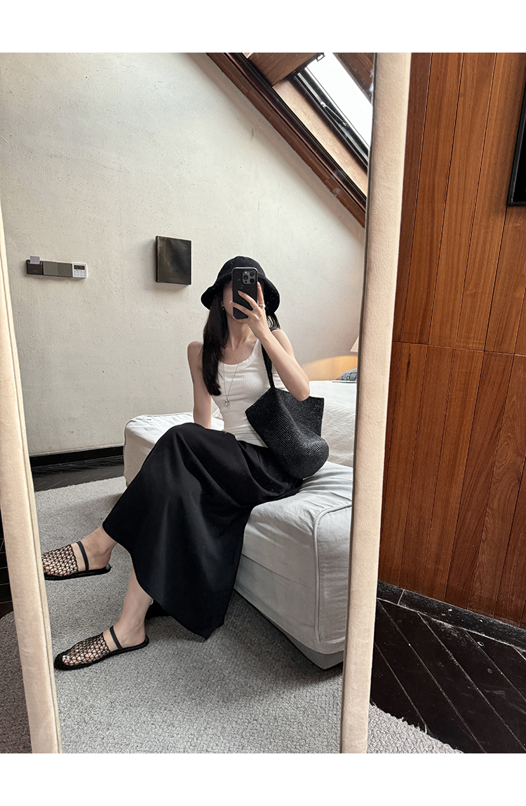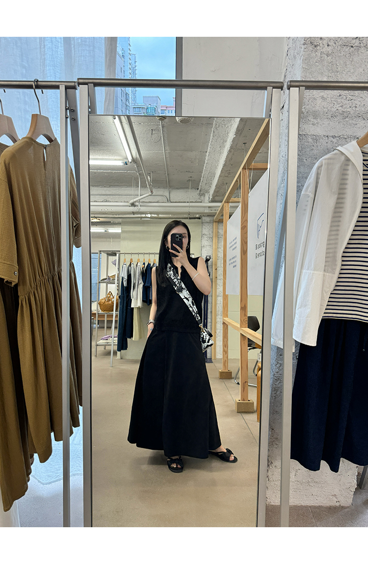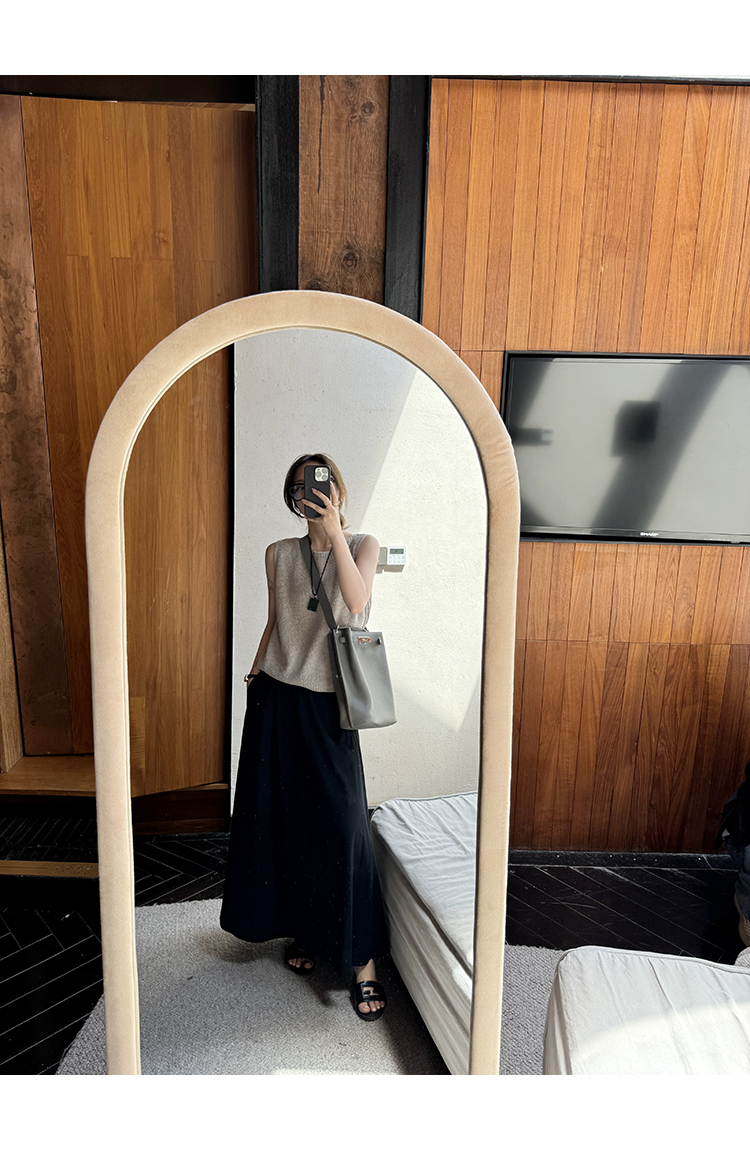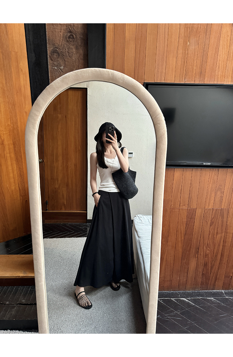 *o-ha-you*【FMQQ2042028】lazy降落傘裙訂製32支天然高支棉針織 鬆緊腰顯瘦A字休閒長半裙