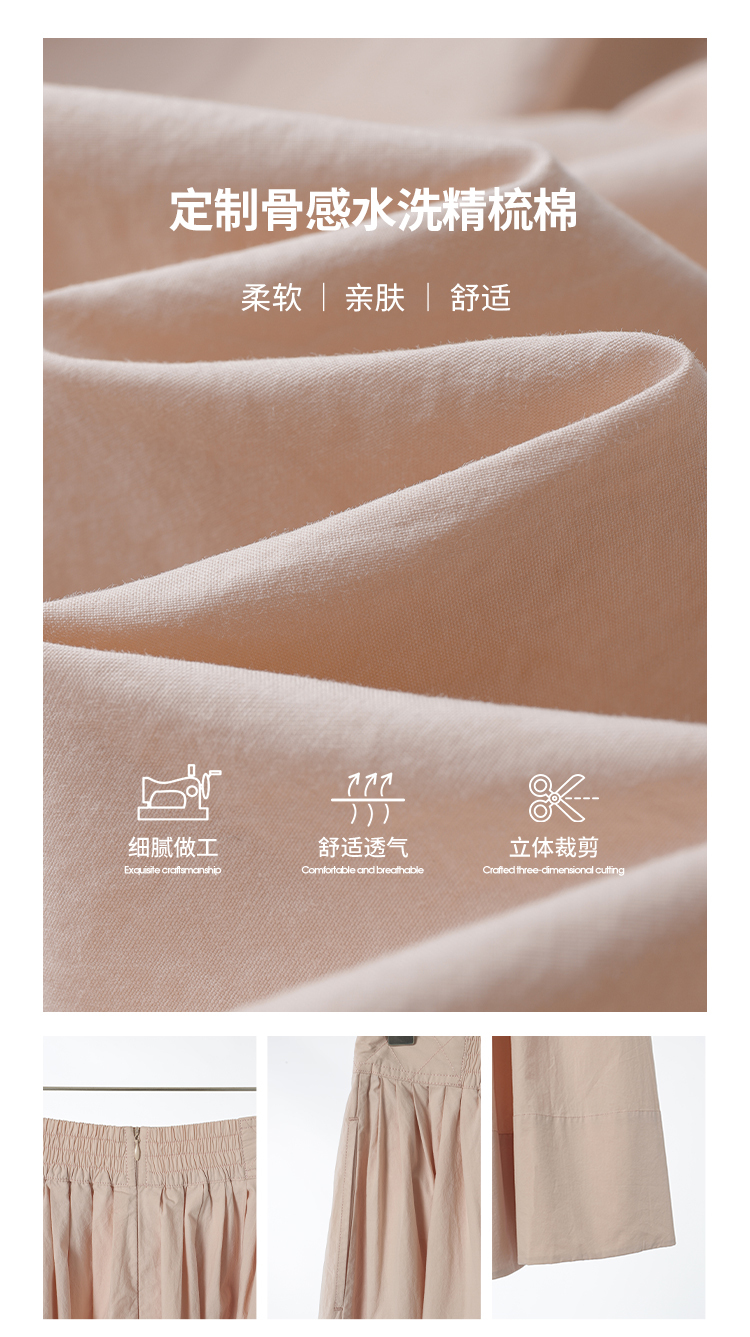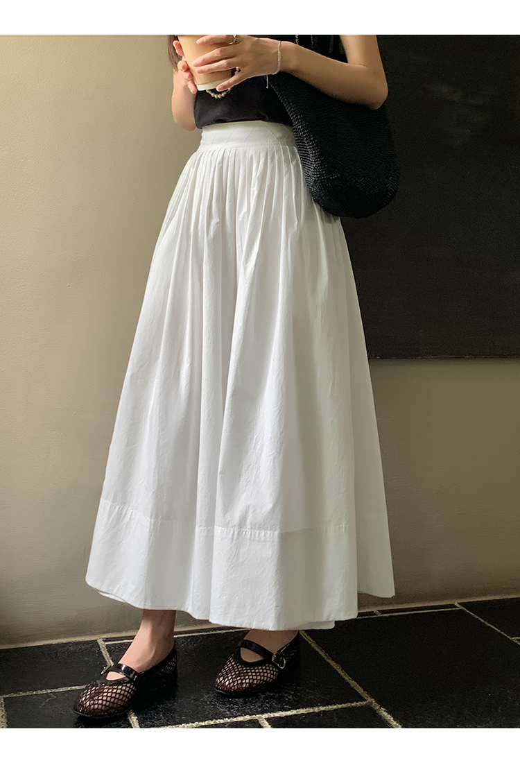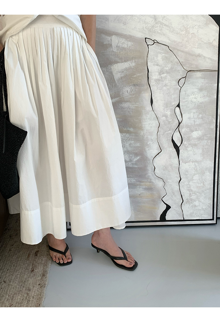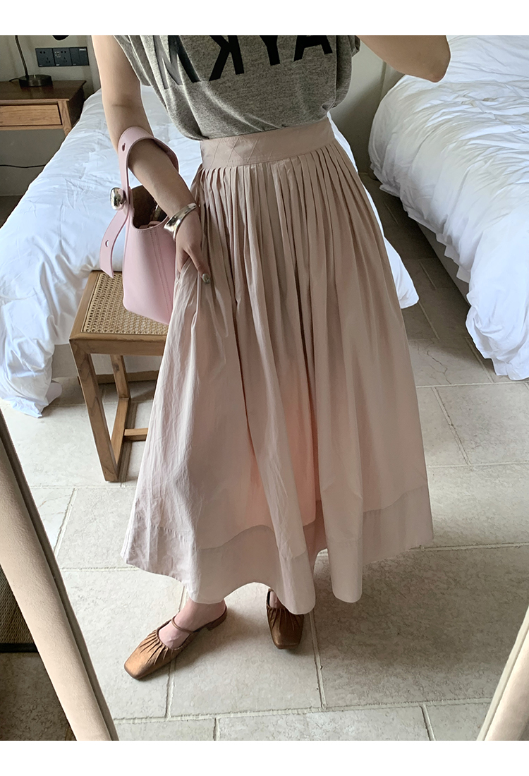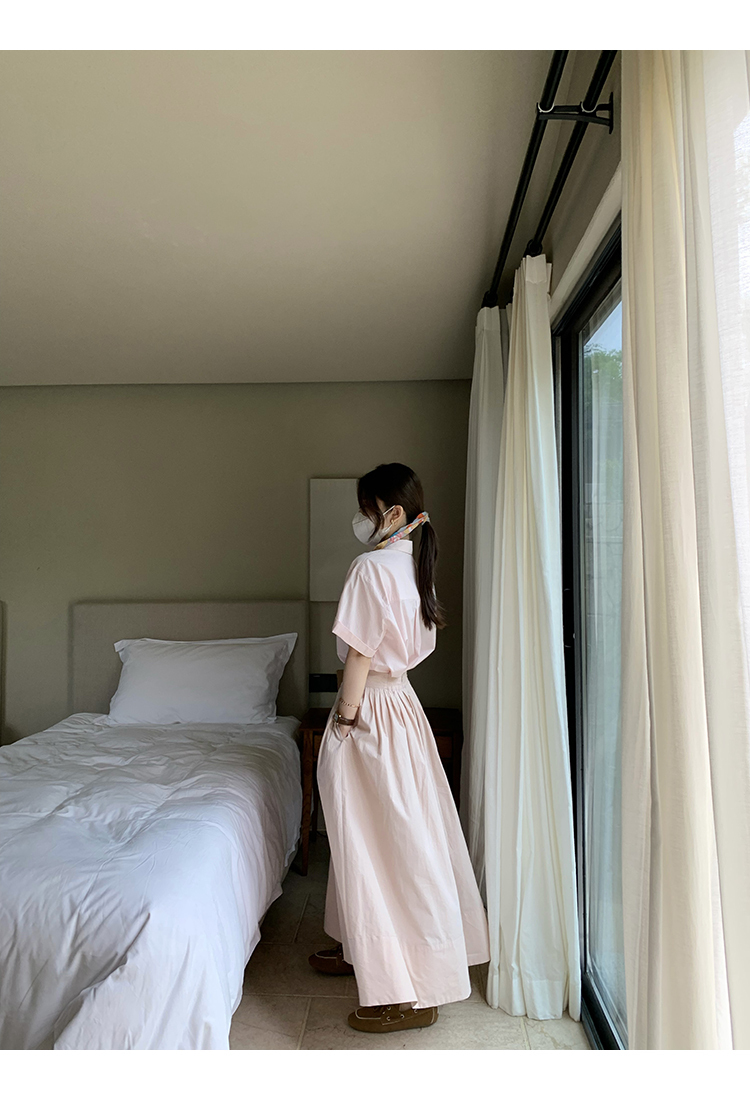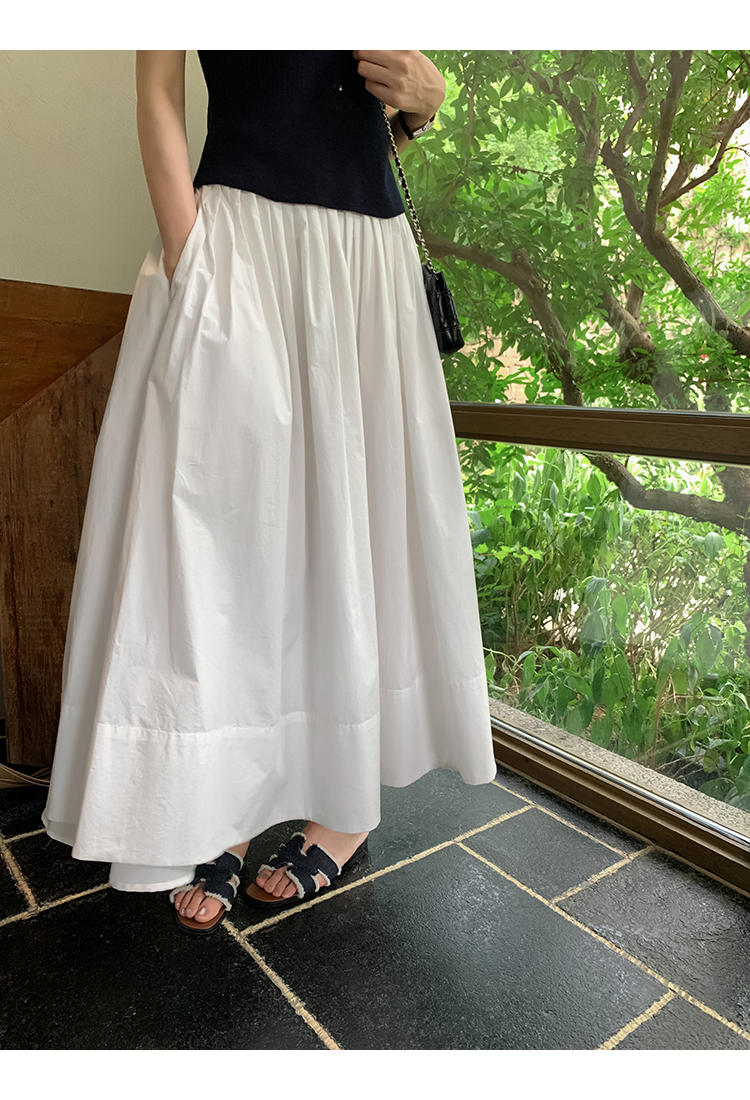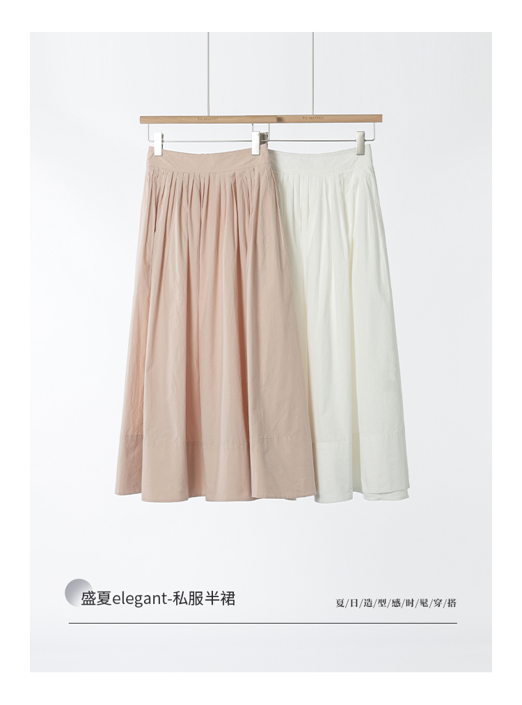 *o-ha-you*【FMQQ2042057】盛夏elegant-私服半裙骨感水洗精梳棉重工抽皺鬆緊腰大擺半身裙