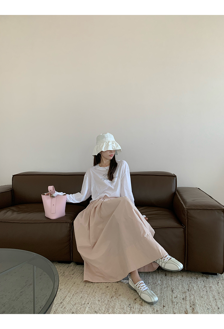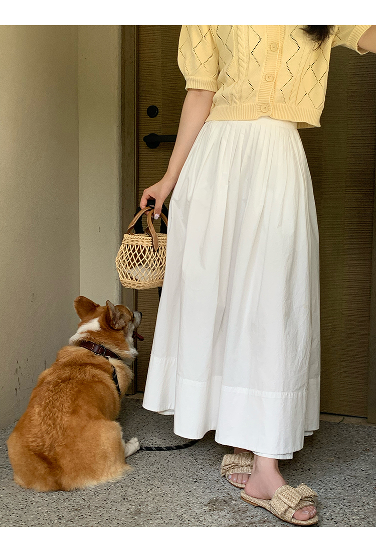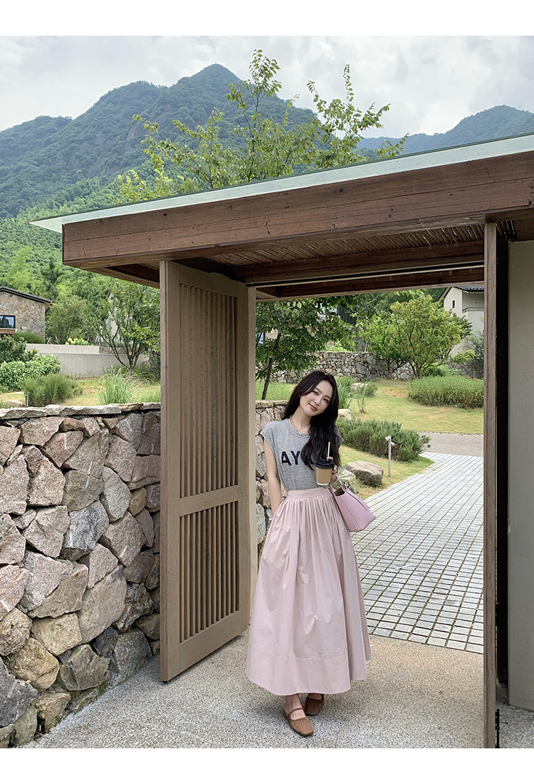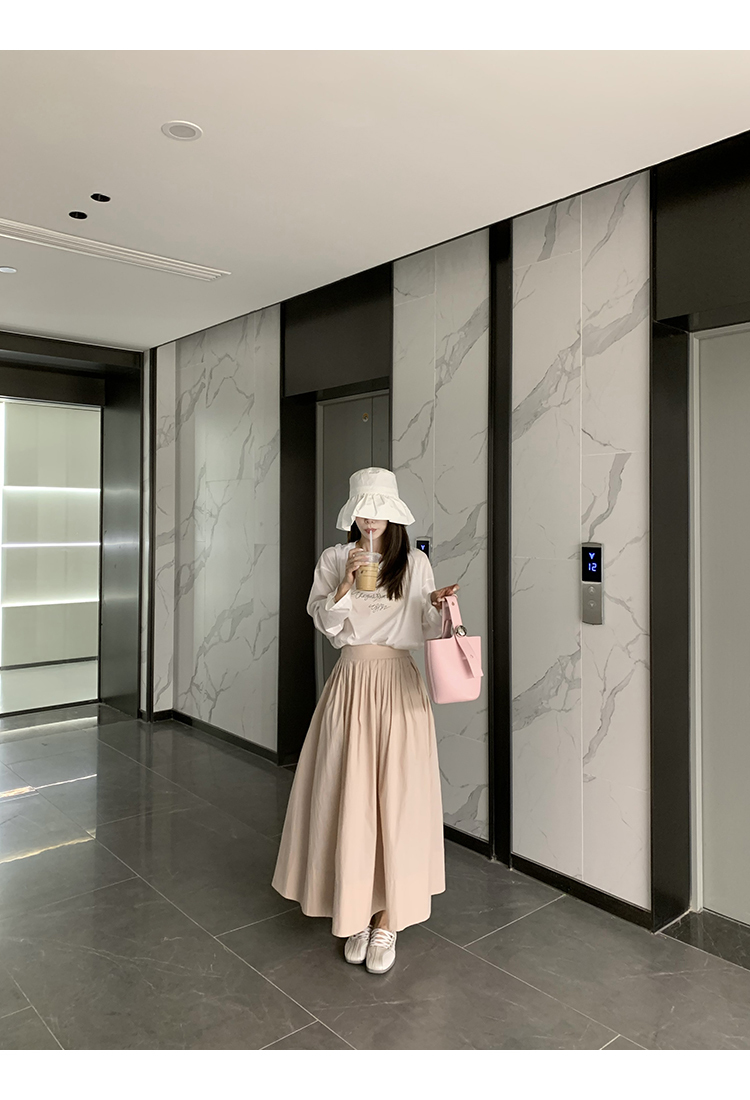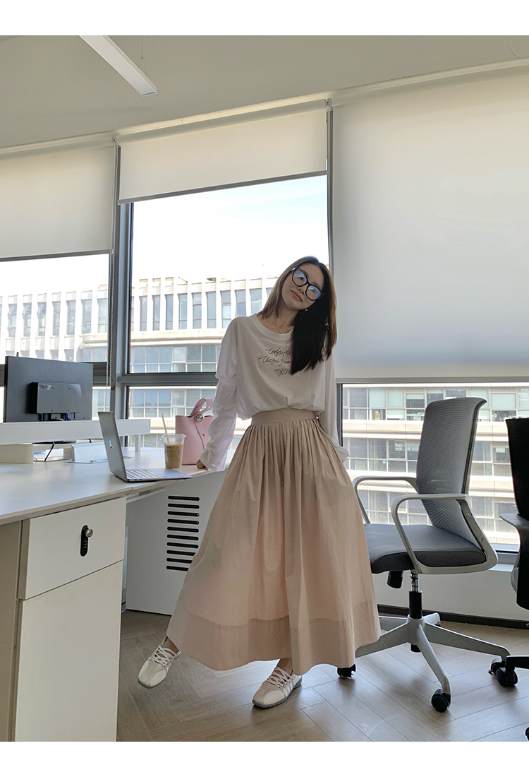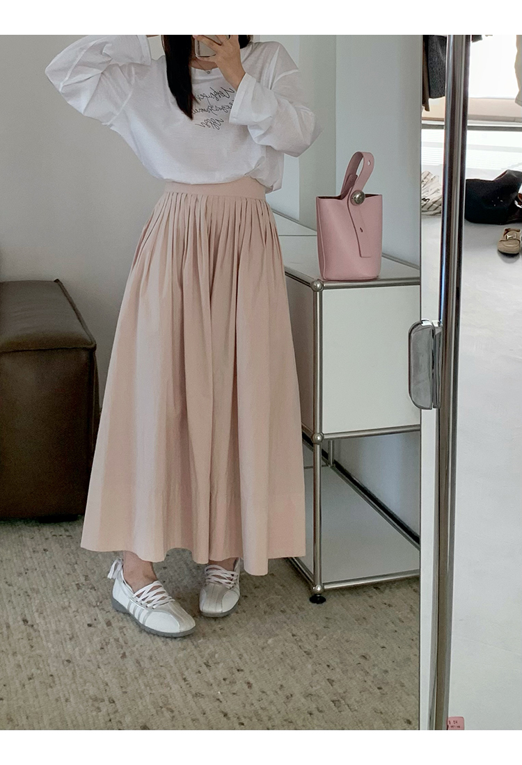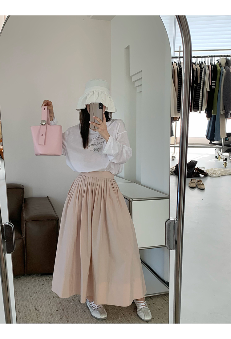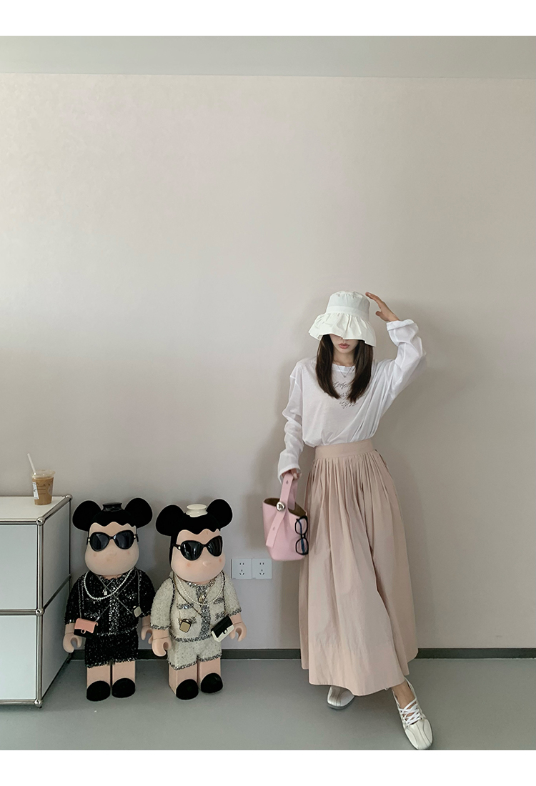 *o-ha-you*【FMQQ2042057】盛夏elegant-私服半裙骨感水洗精梳棉重工抽皺鬆緊腰大擺半身裙