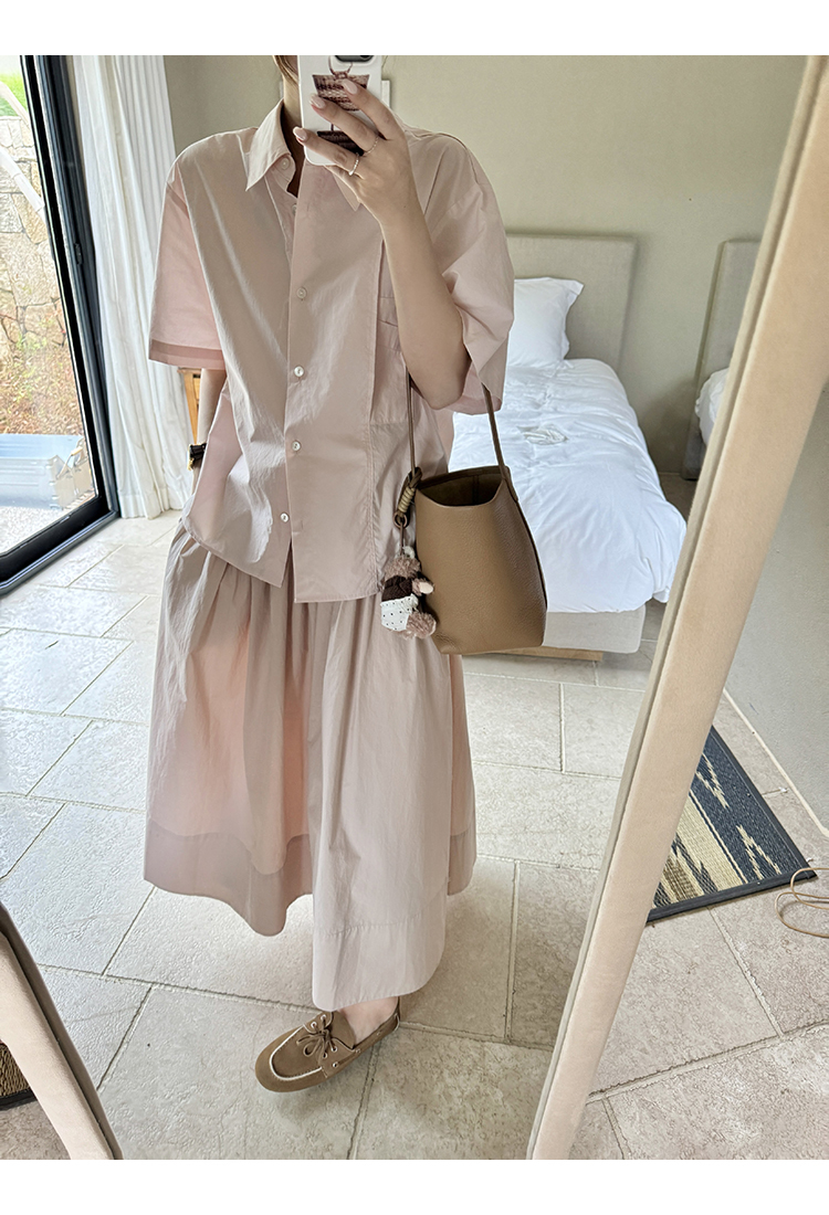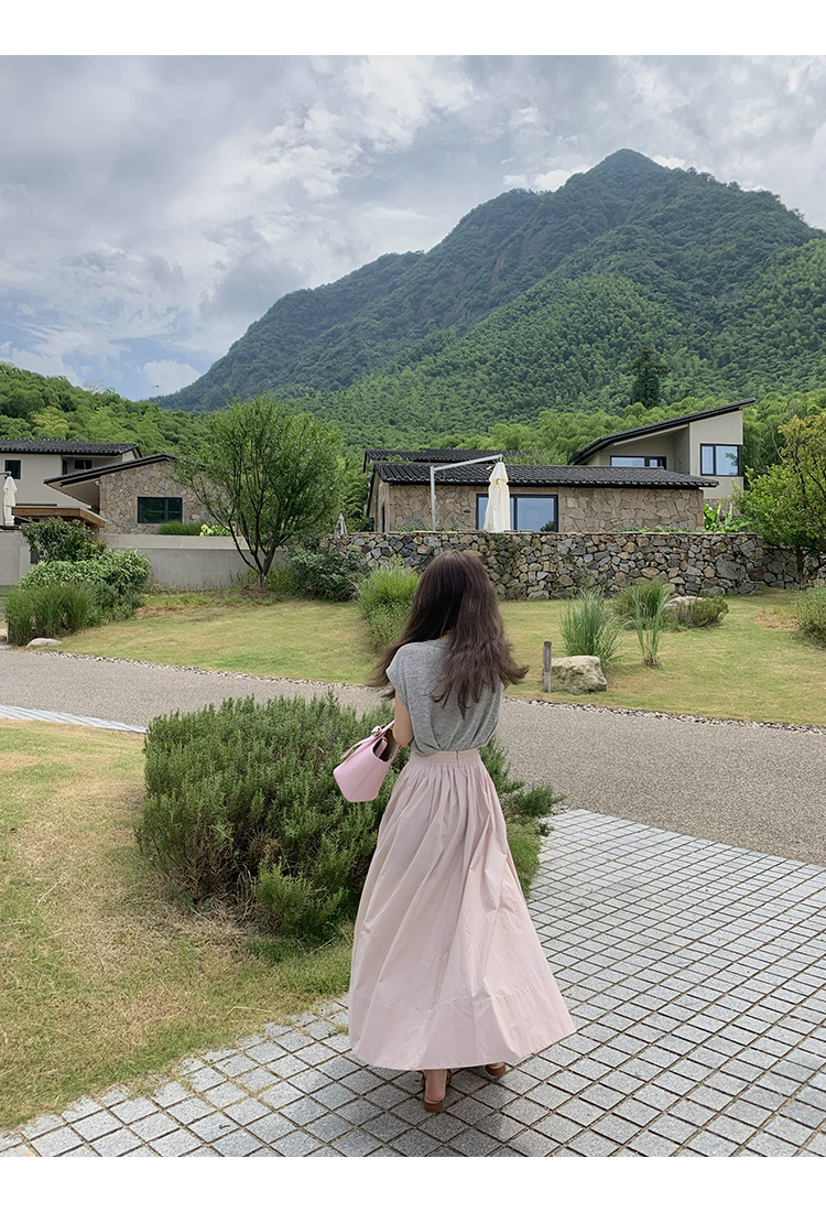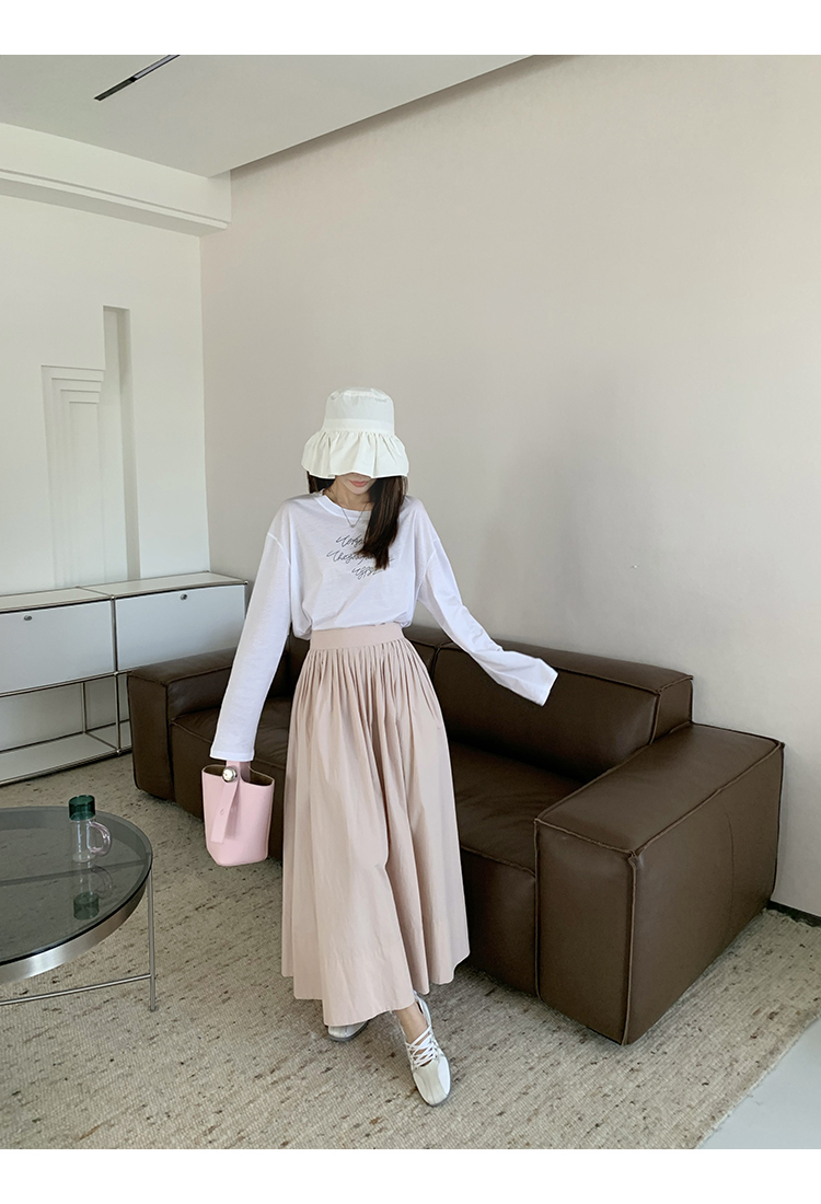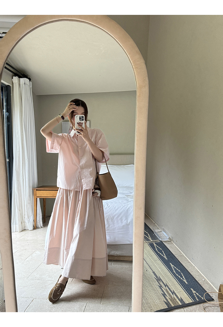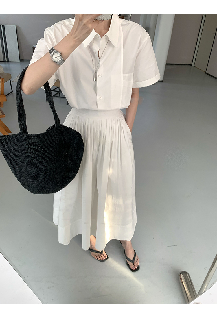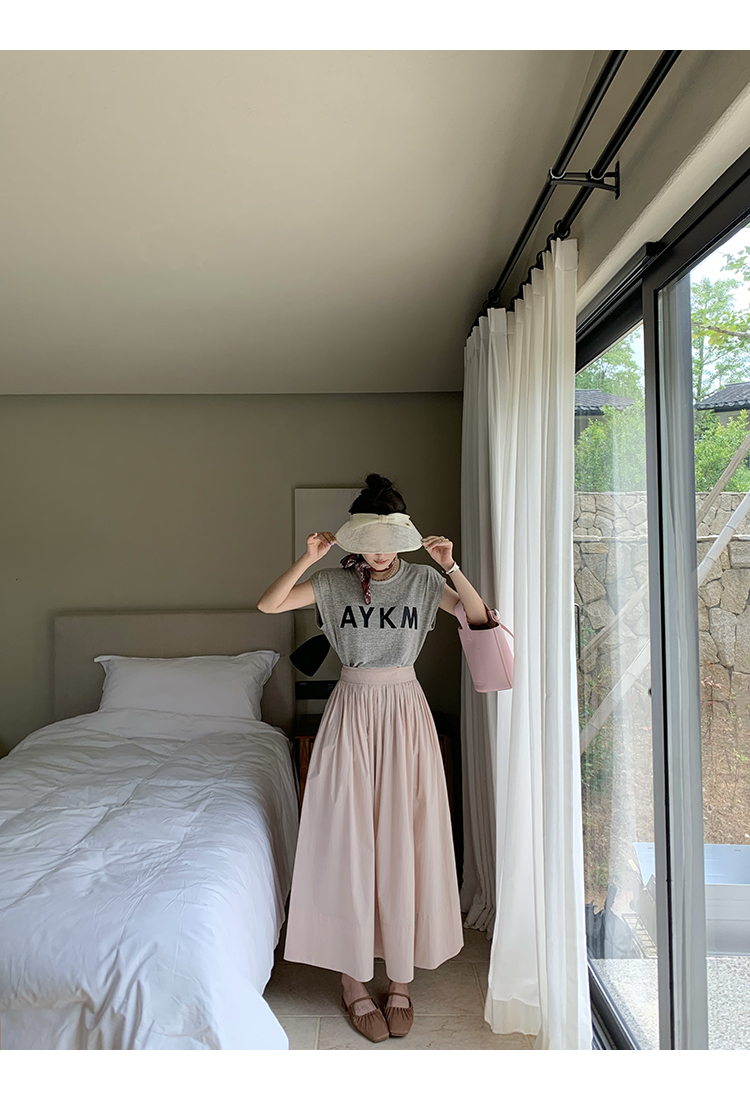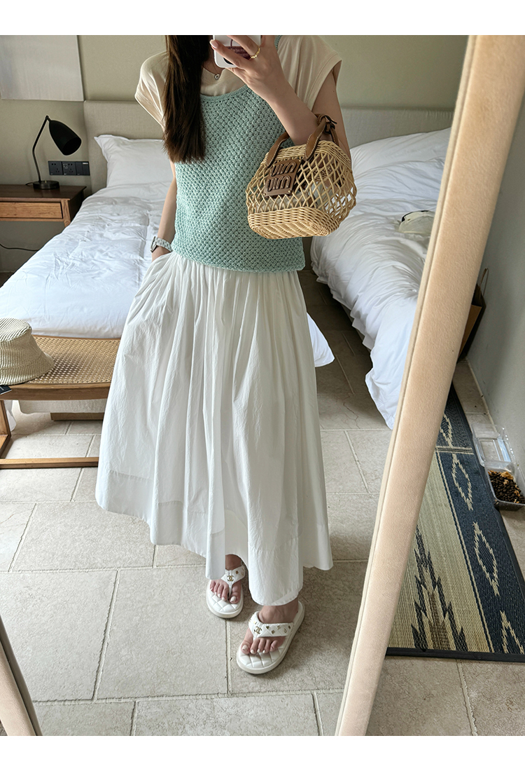 *o-ha-you*【FMQQ2042057】盛夏elegant-私服半裙骨感水洗精梳棉重工抽皺鬆緊腰大擺半身裙