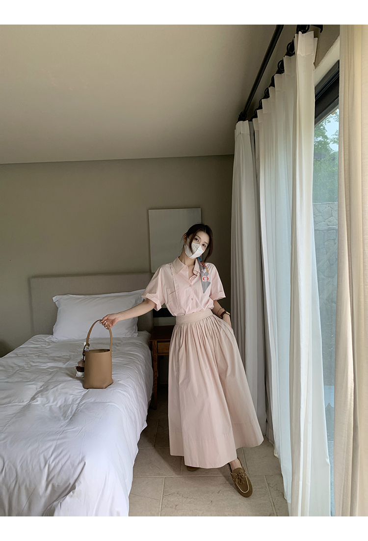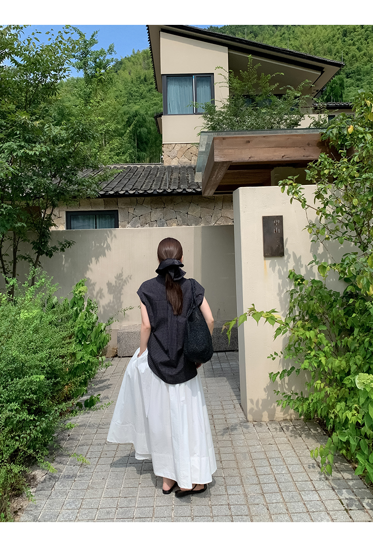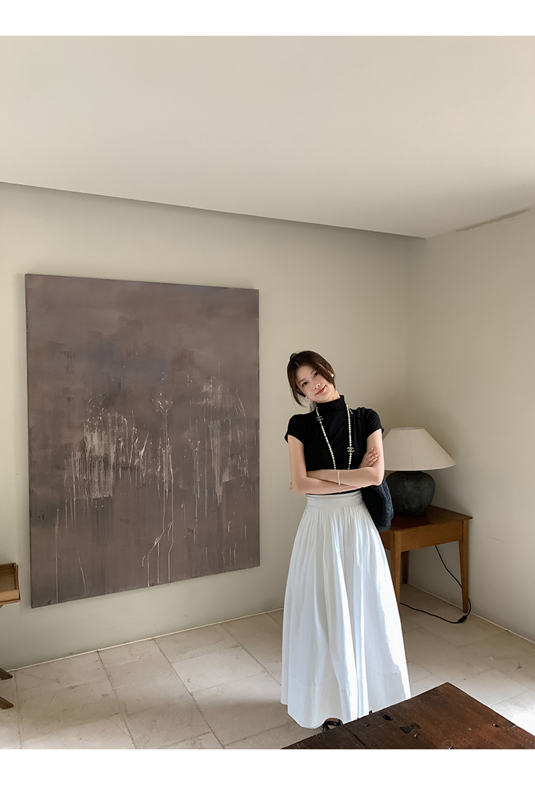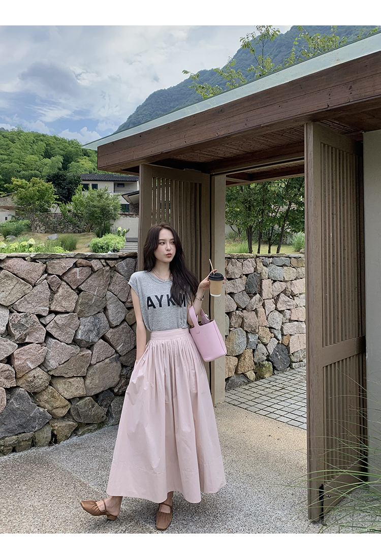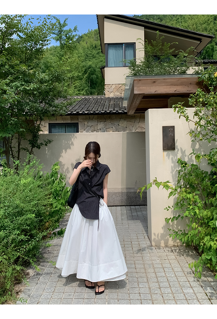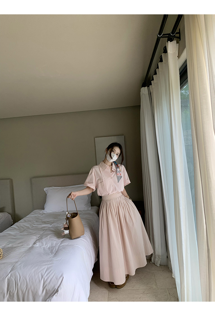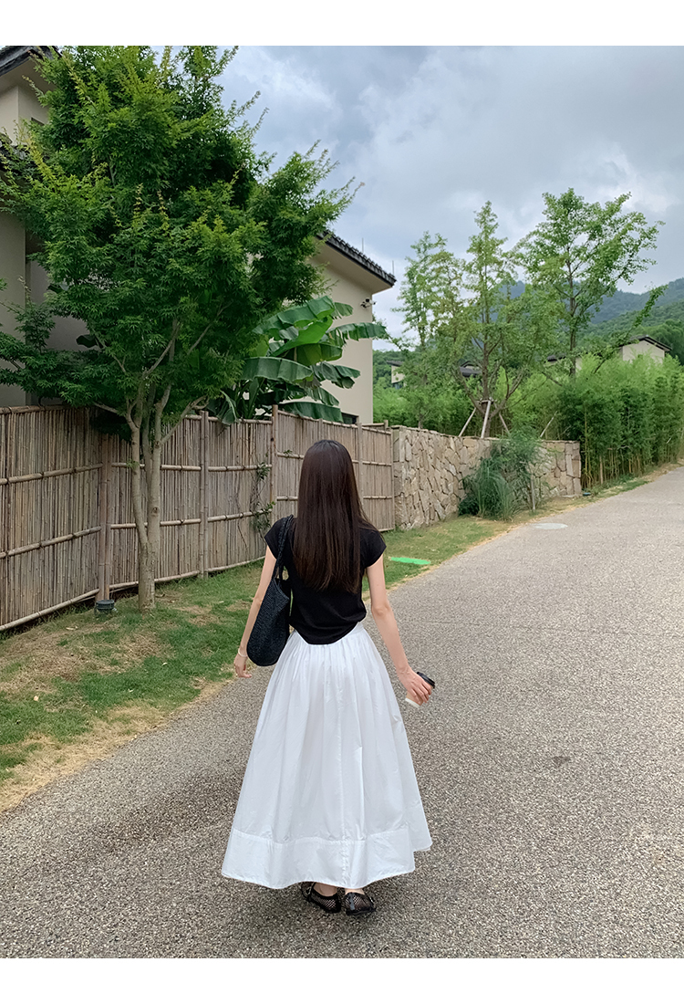 *o-ha-you*【FMQQ2042057】盛夏elegant-私服半裙骨感水洗精梳棉重工抽皺鬆緊腰大擺半身裙