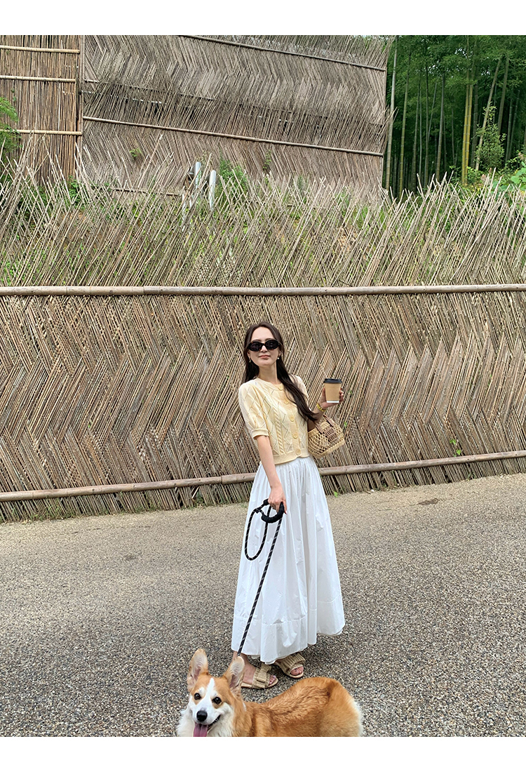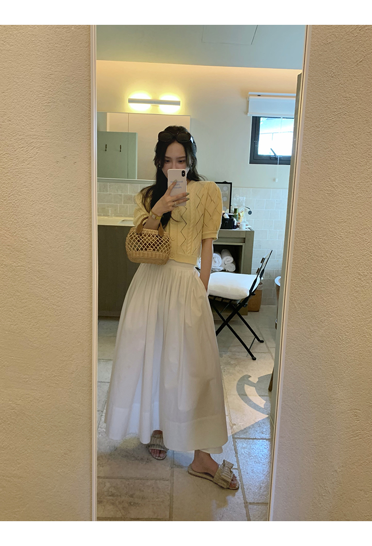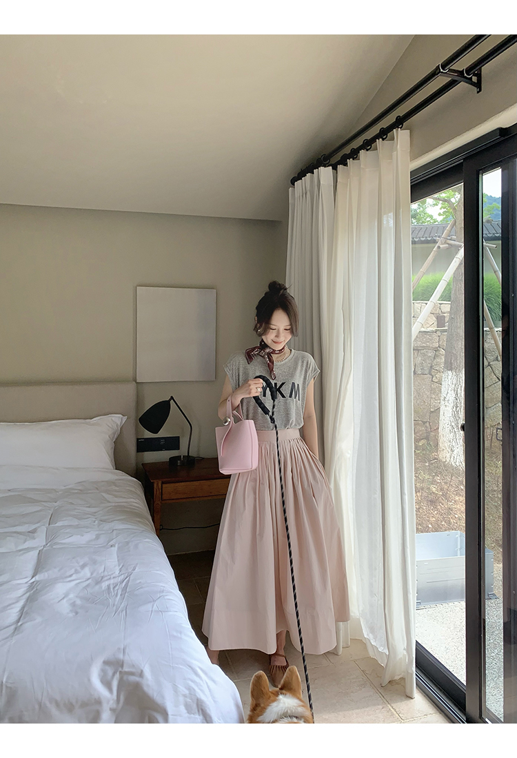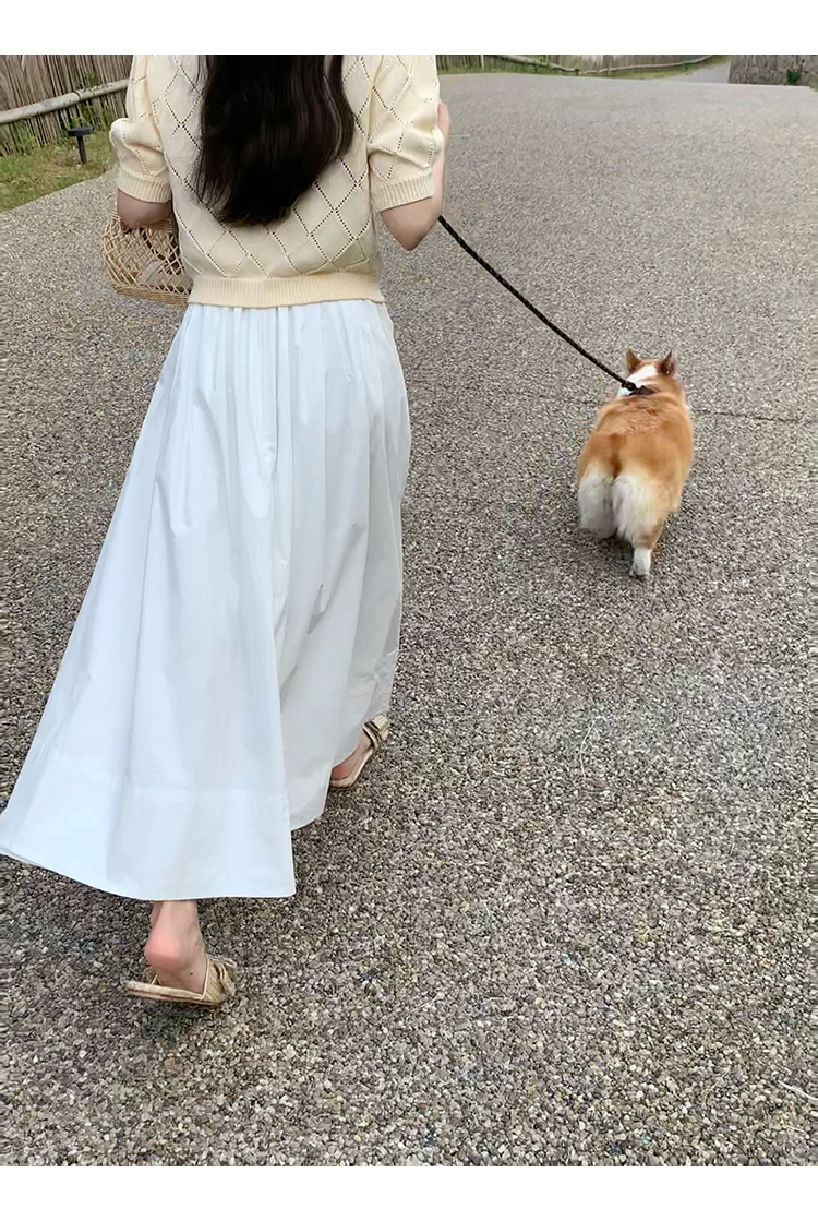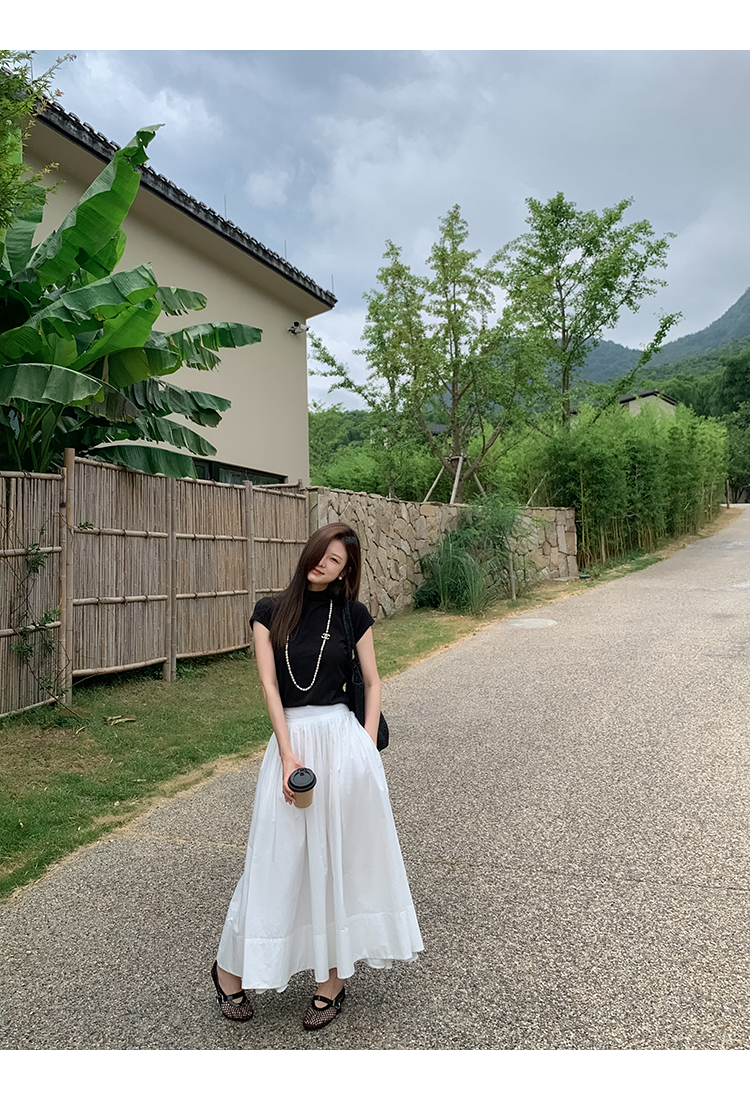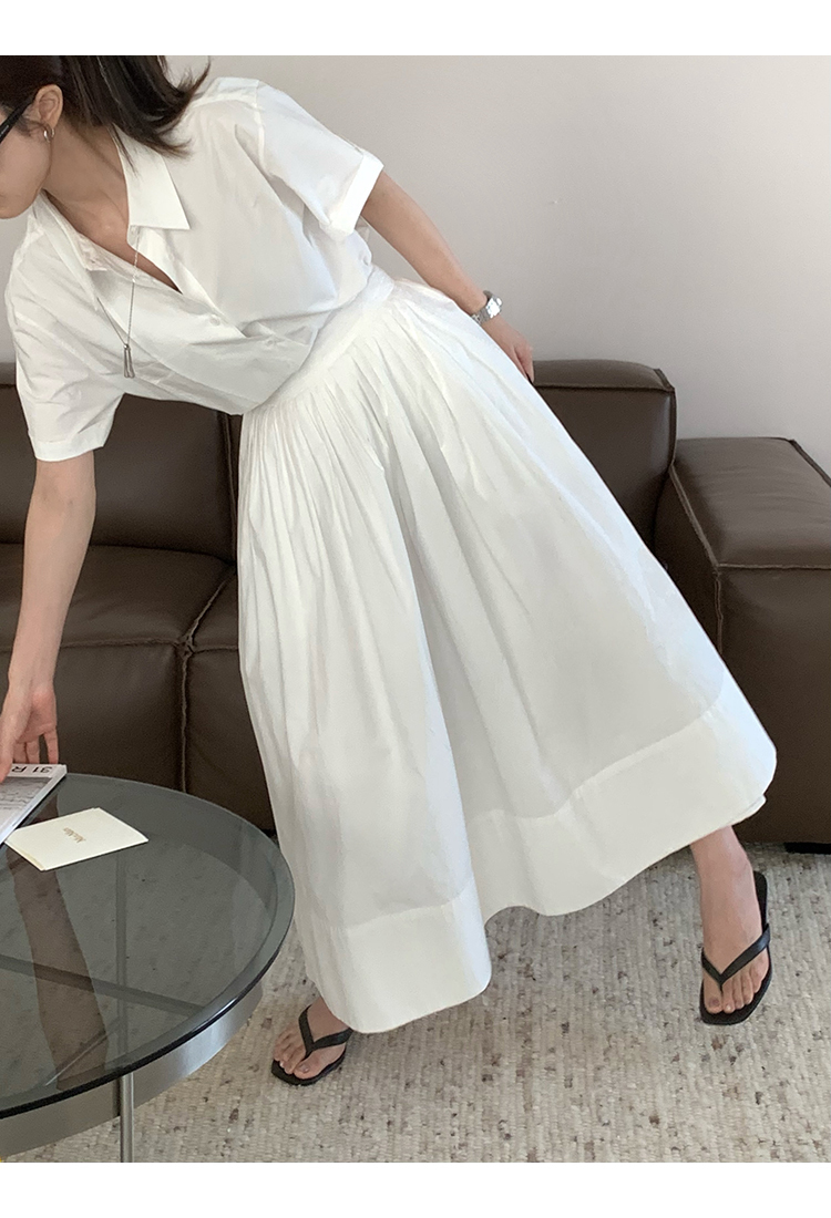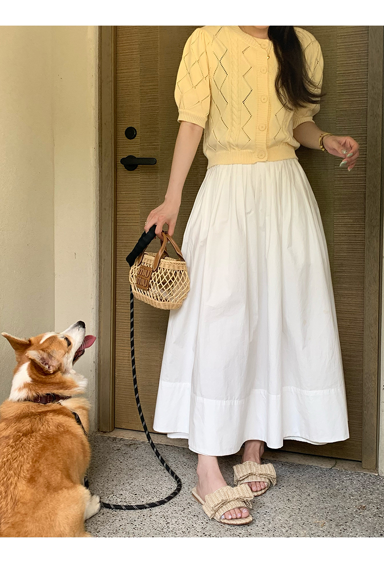 *o-ha-you*【FMQQ2042057】盛夏elegant-私服半裙骨感水洗精梳棉重工抽皺鬆緊腰大擺半身裙