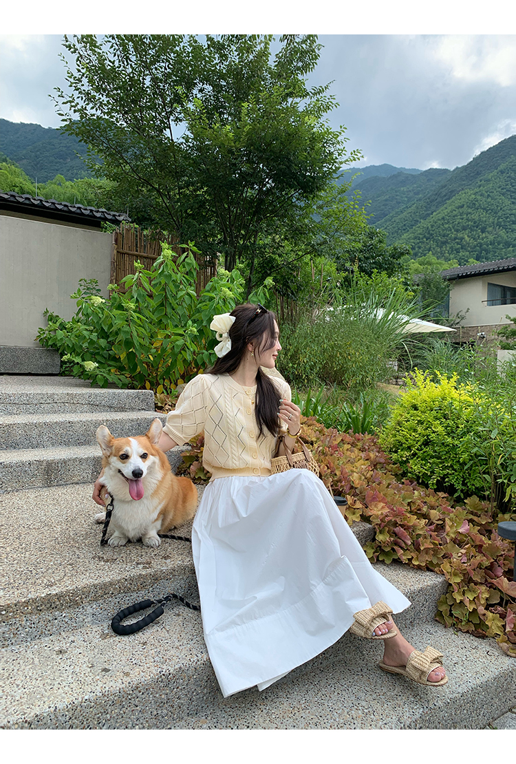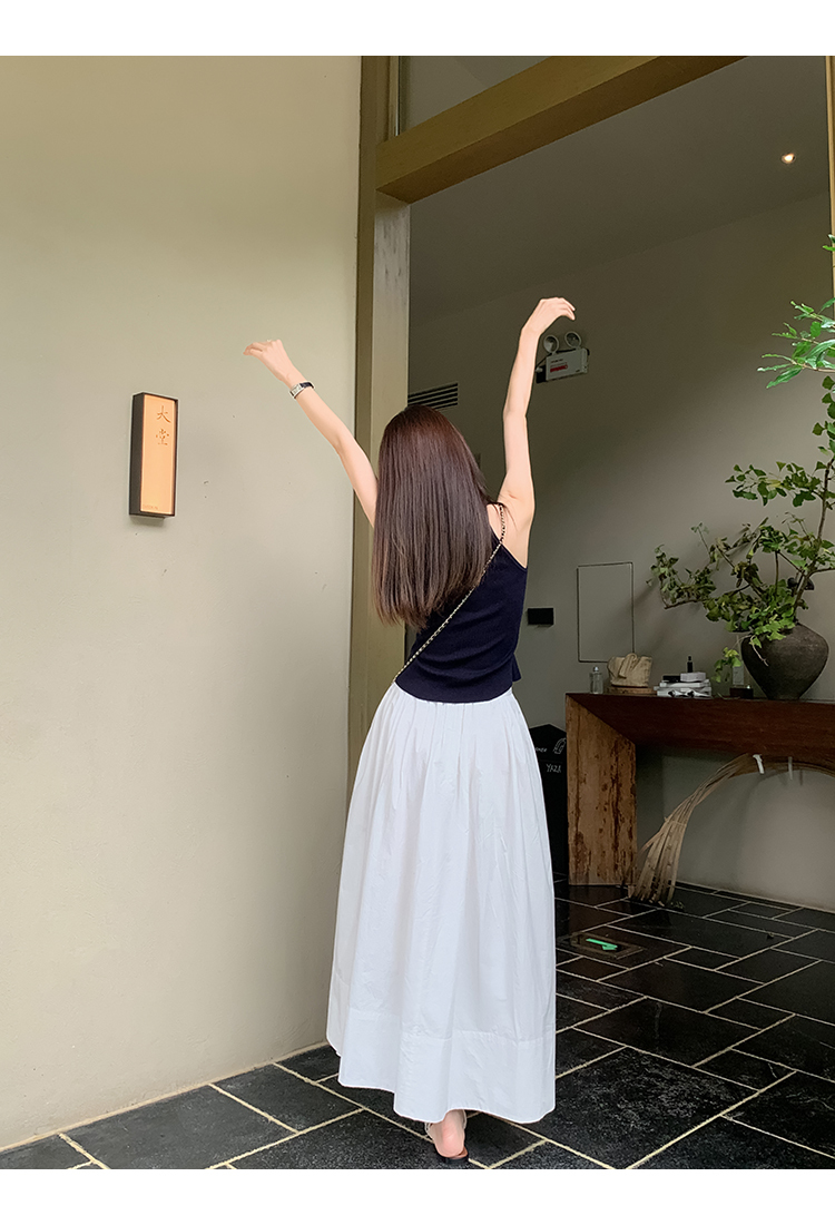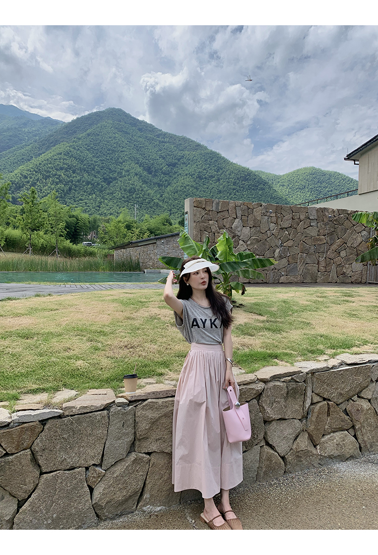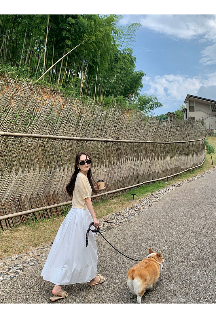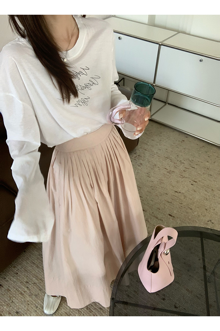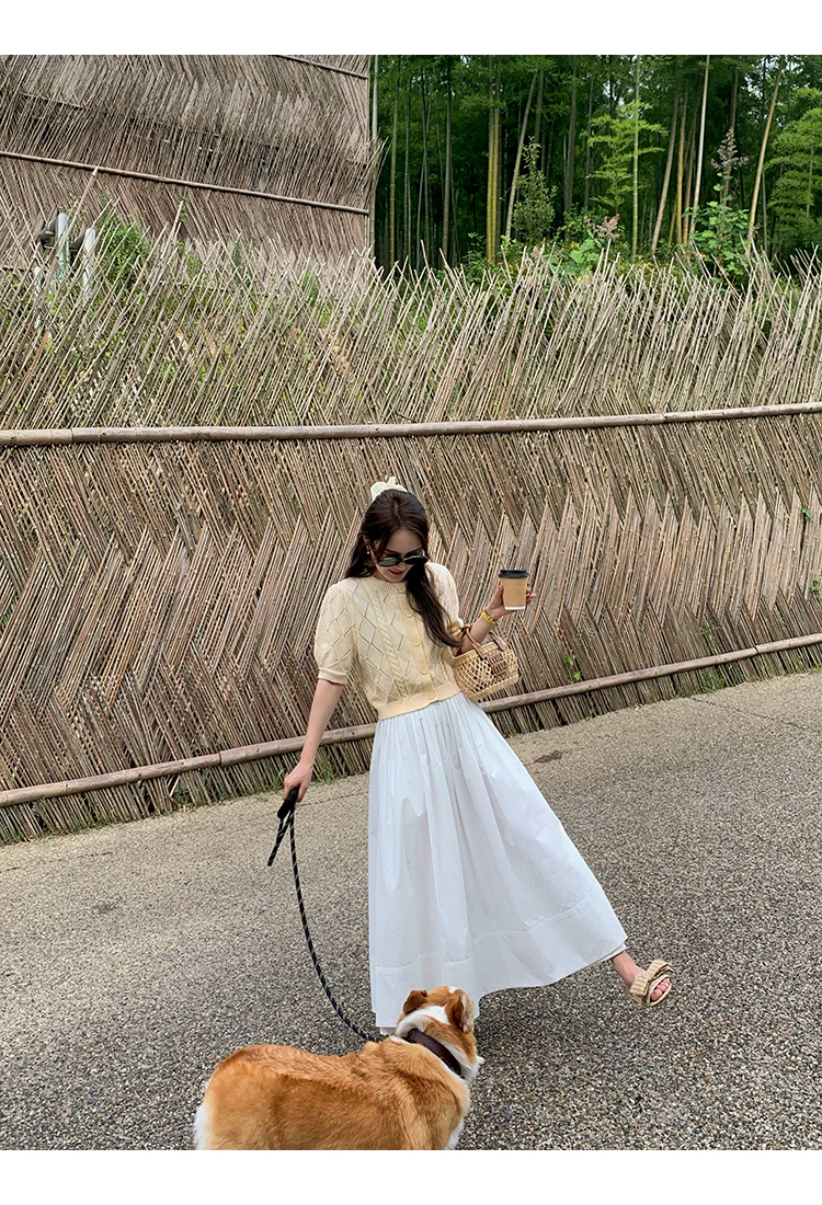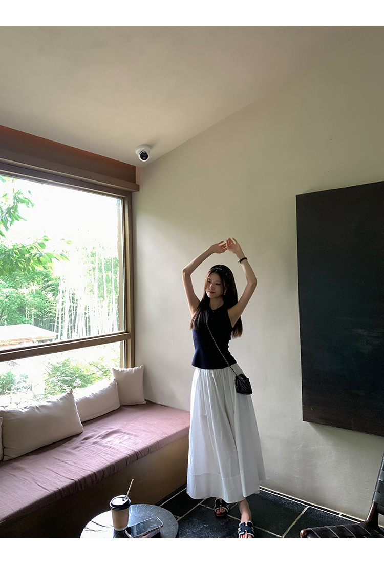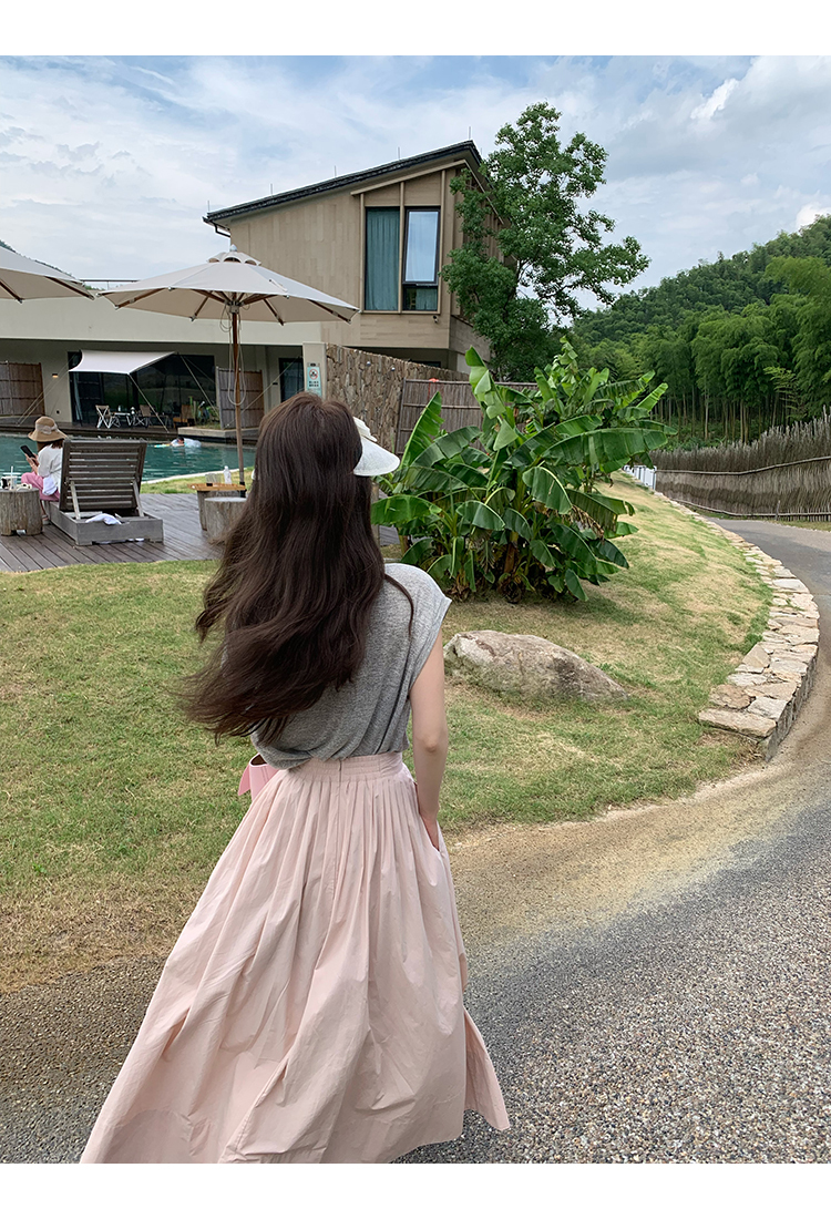 *o-ha-you*【FMQQ2042057】盛夏elegant-私服半裙骨感水洗精梳棉重工抽皺鬆緊腰大擺半身裙