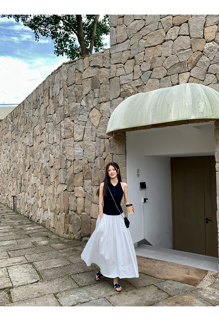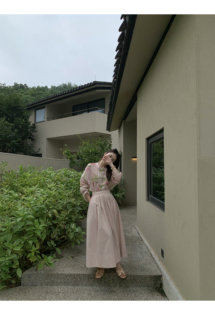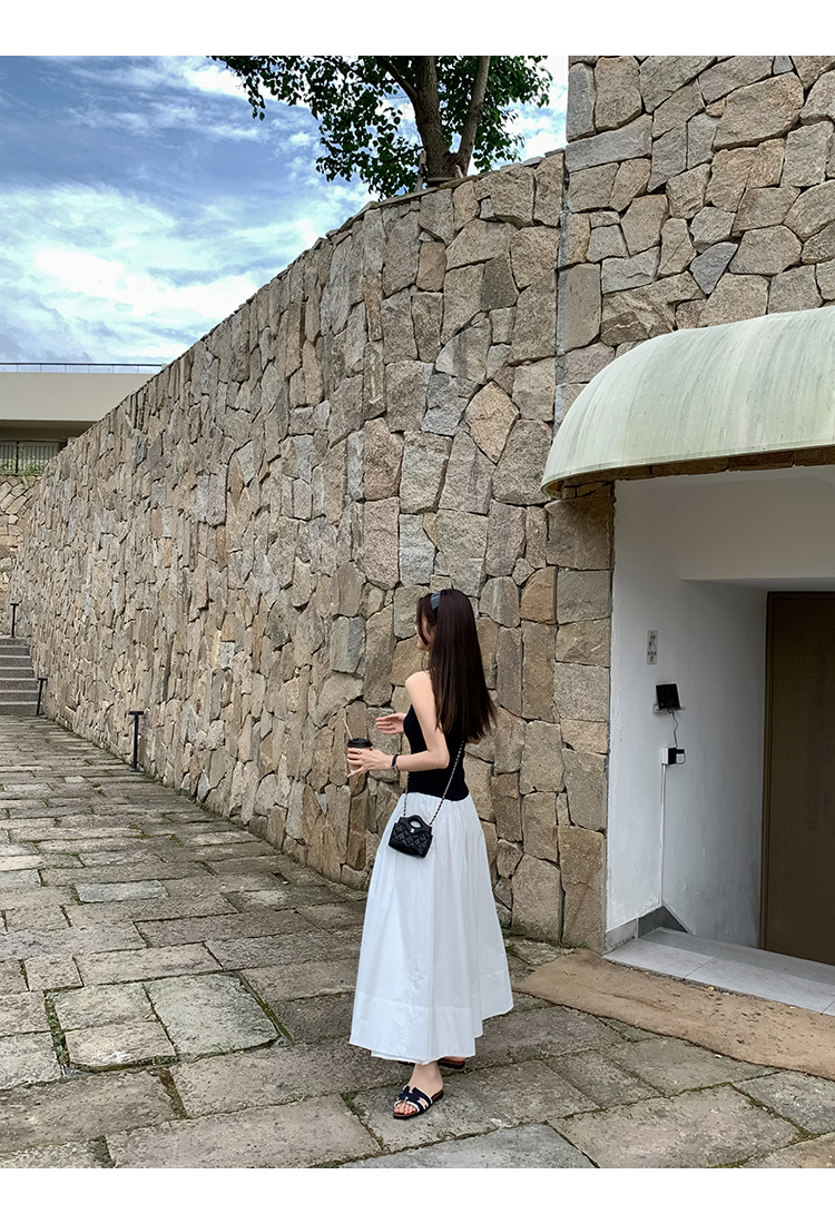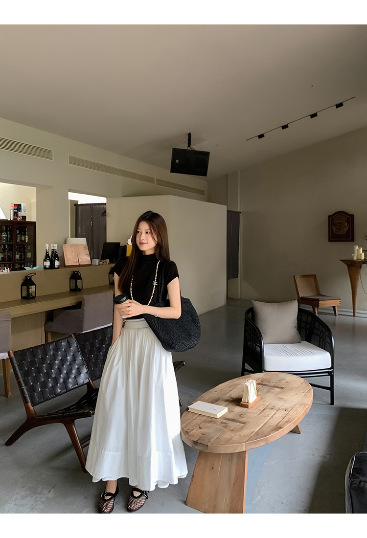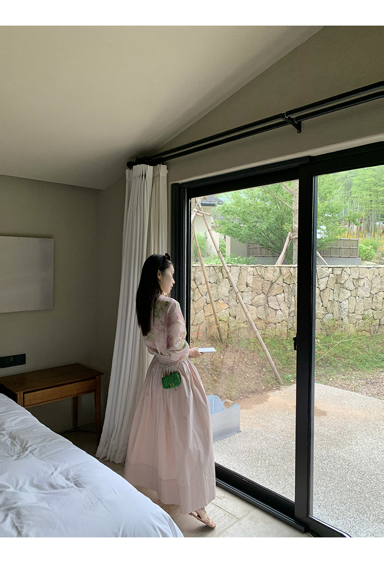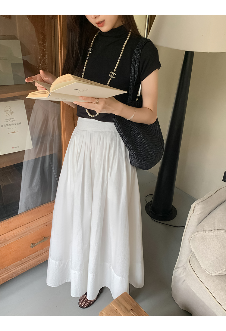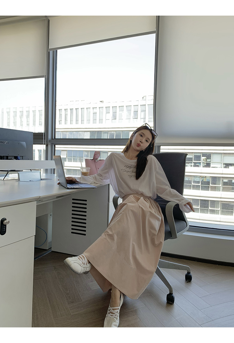 *o-ha-you*【FMQQ2042057】盛夏elegant-私服半裙骨感水洗精梳棉重工抽皺鬆緊腰大擺半身裙