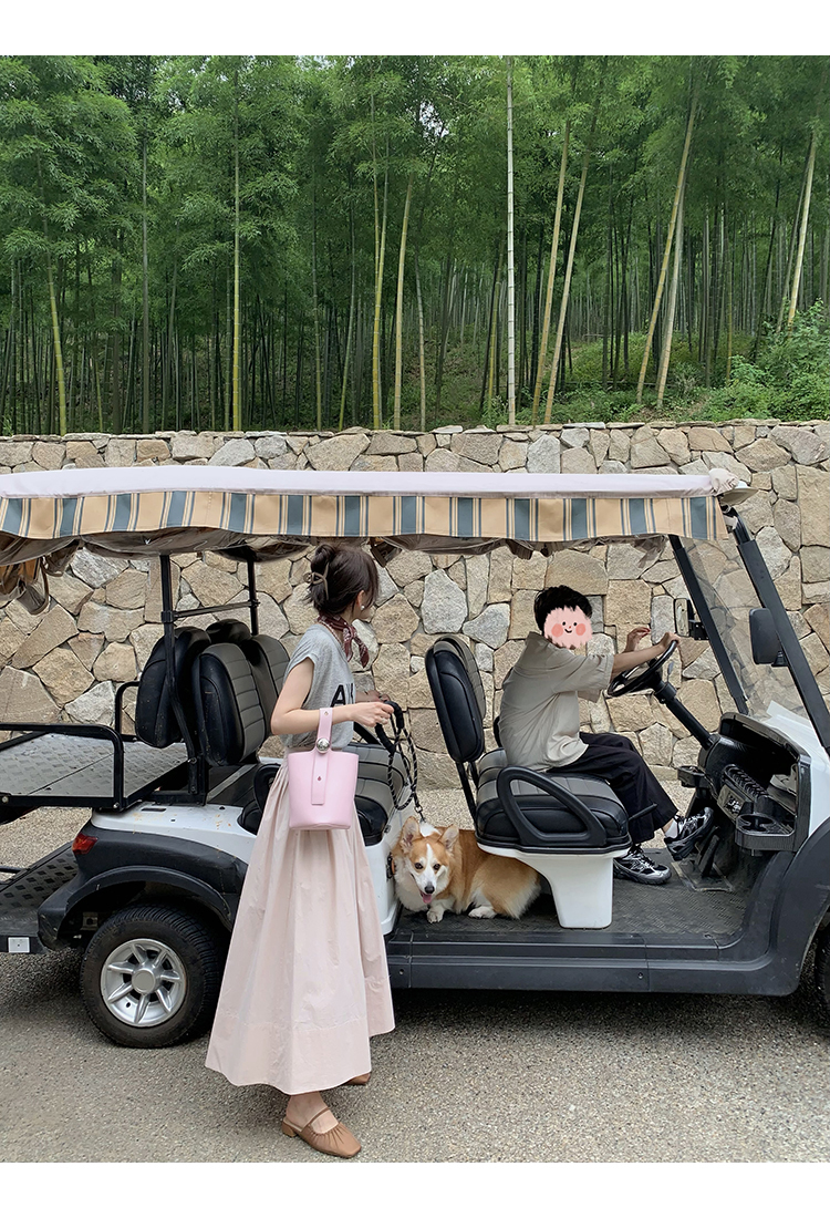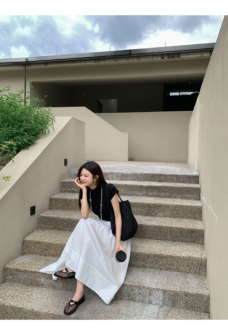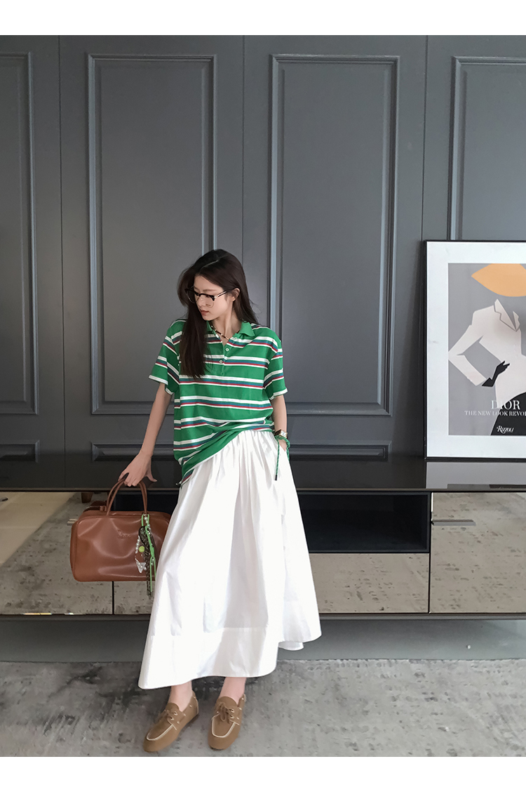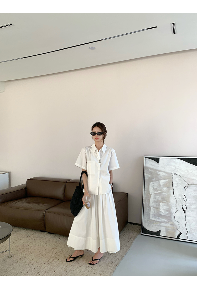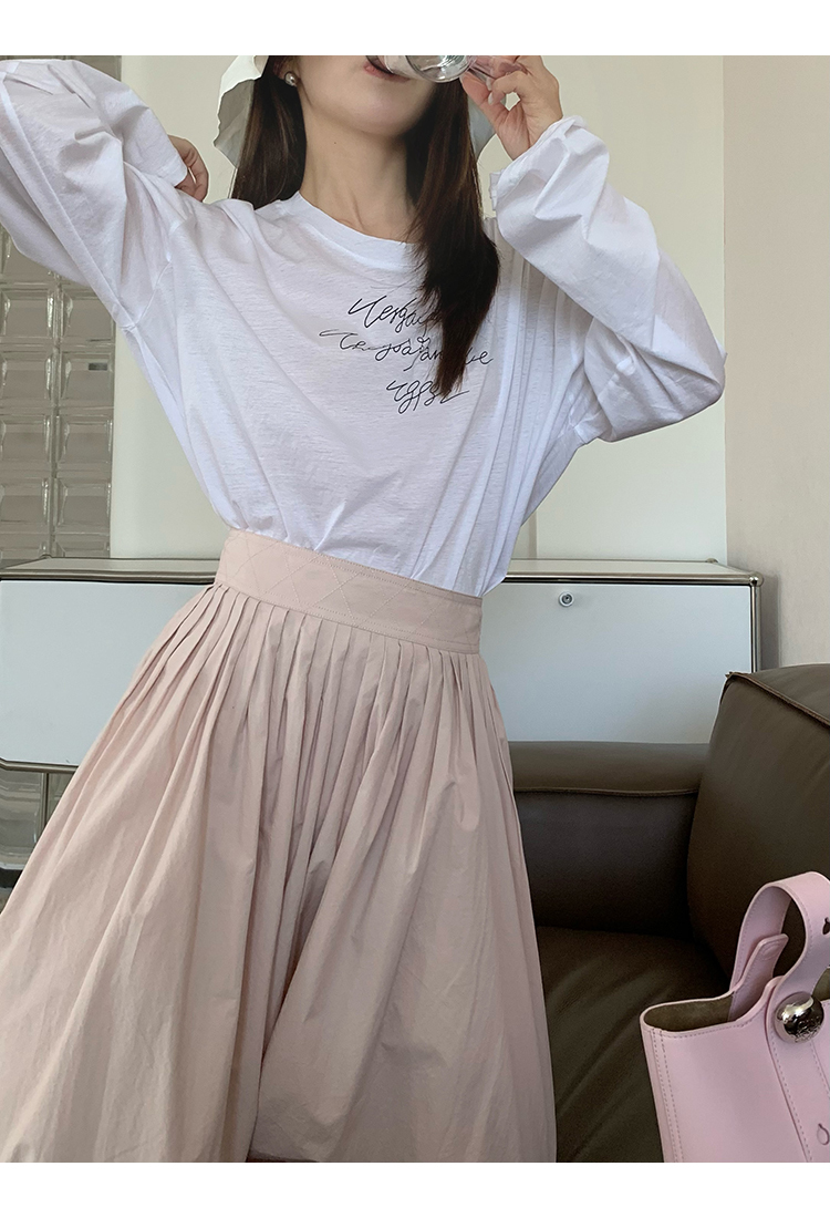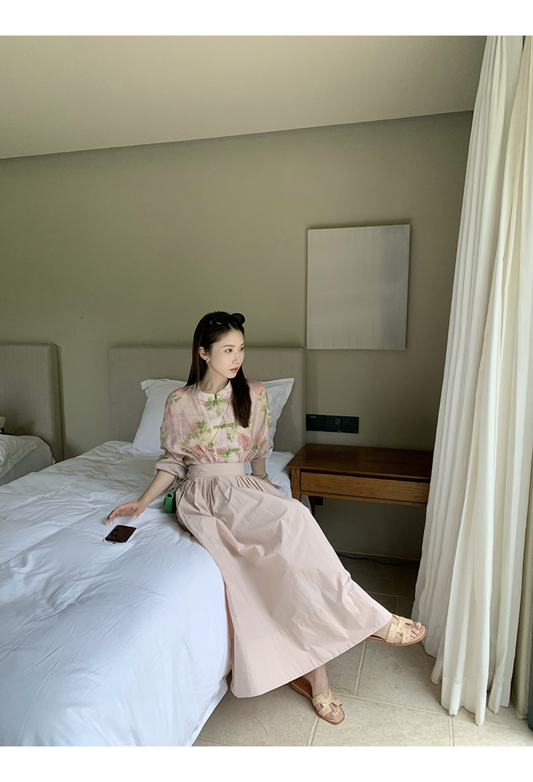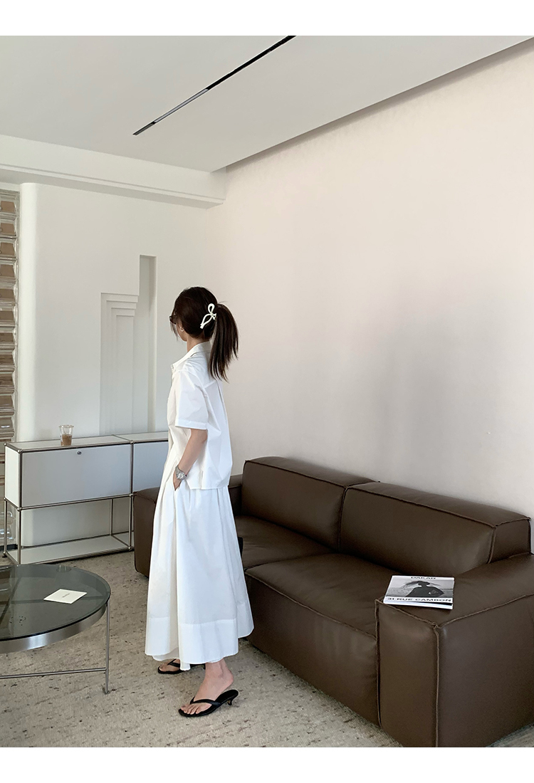 *o-ha-you*【FMQQ2042057】盛夏elegant-私服半裙骨感水洗精梳棉重工抽皺鬆緊腰大擺半身裙