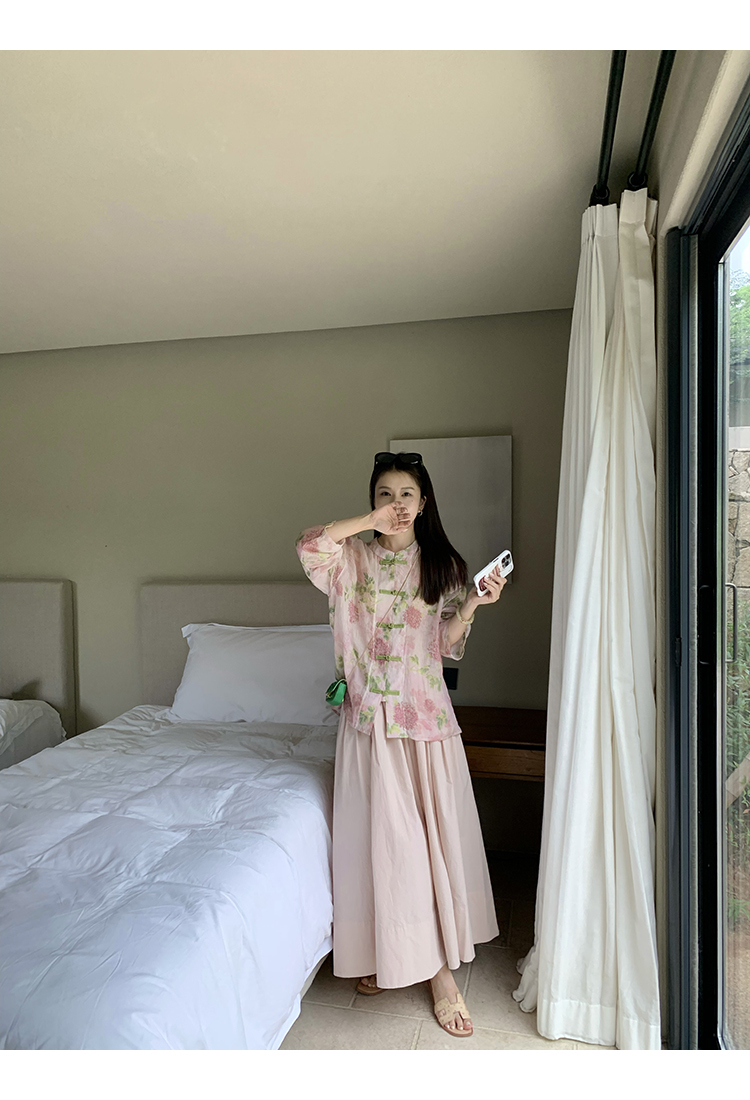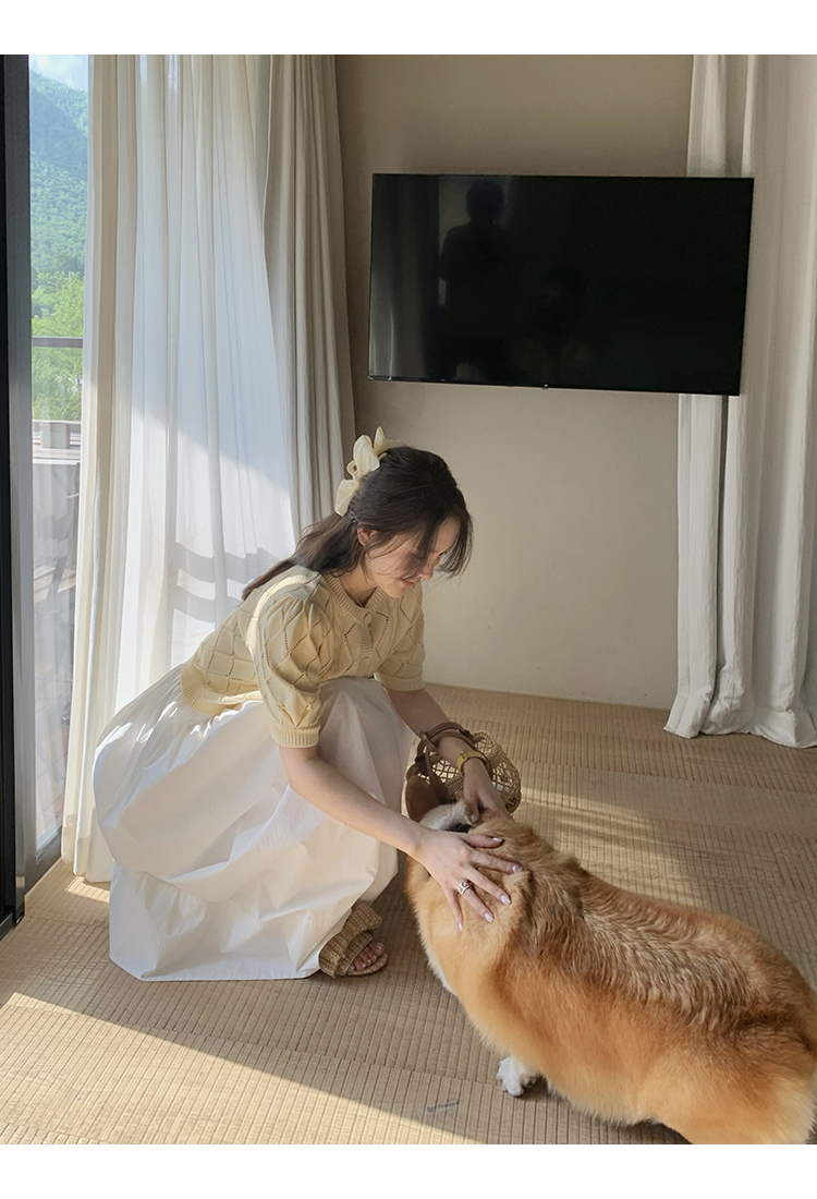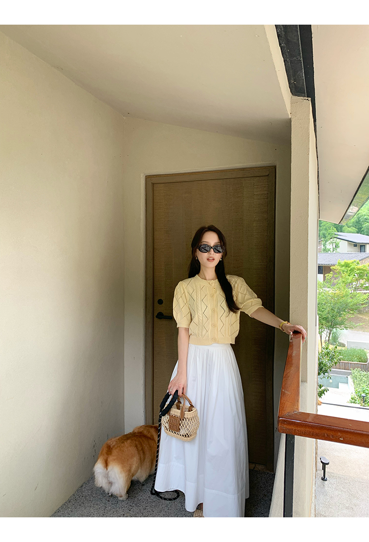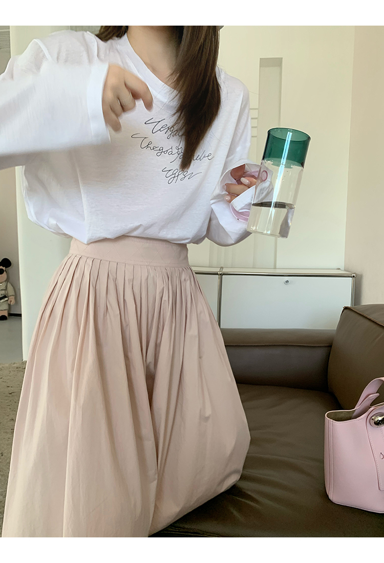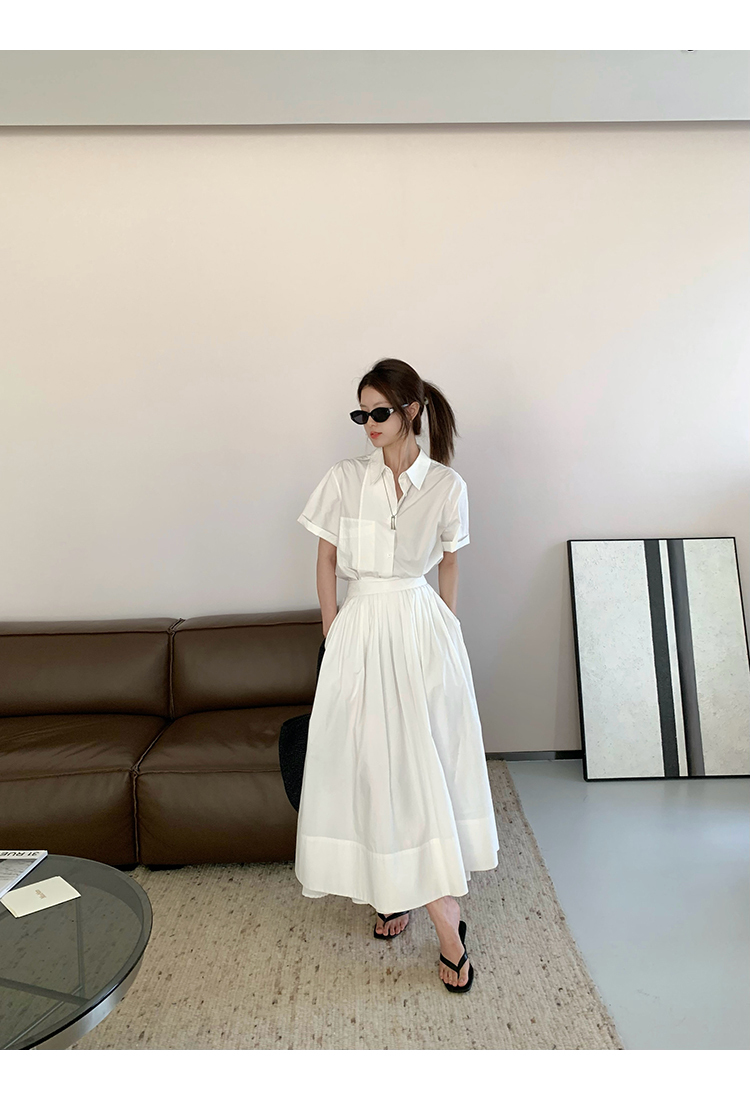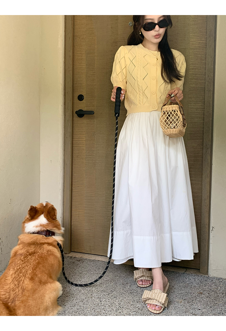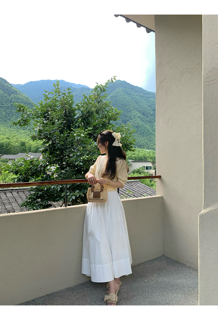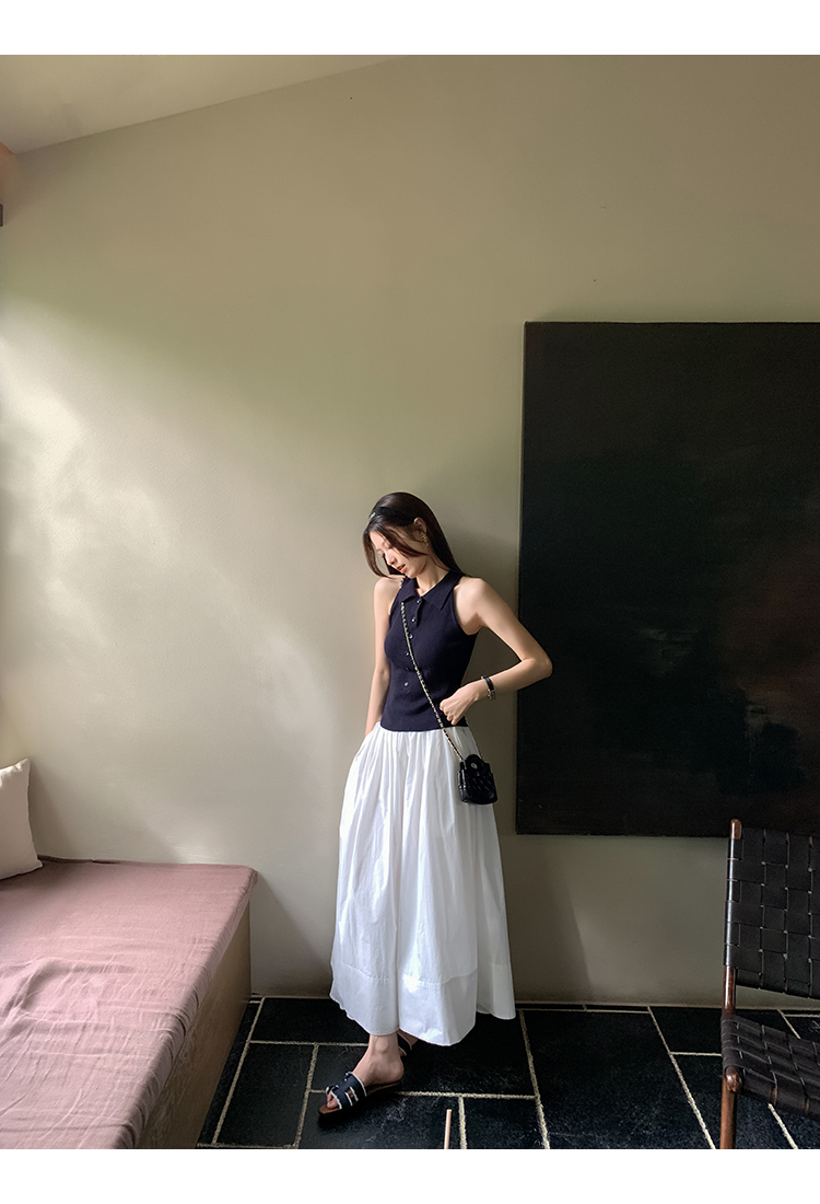 *o-ha-you*【FMQQ2042057】盛夏elegant-私服半裙骨感水洗精梳棉重工抽皺鬆緊腰大擺半身裙