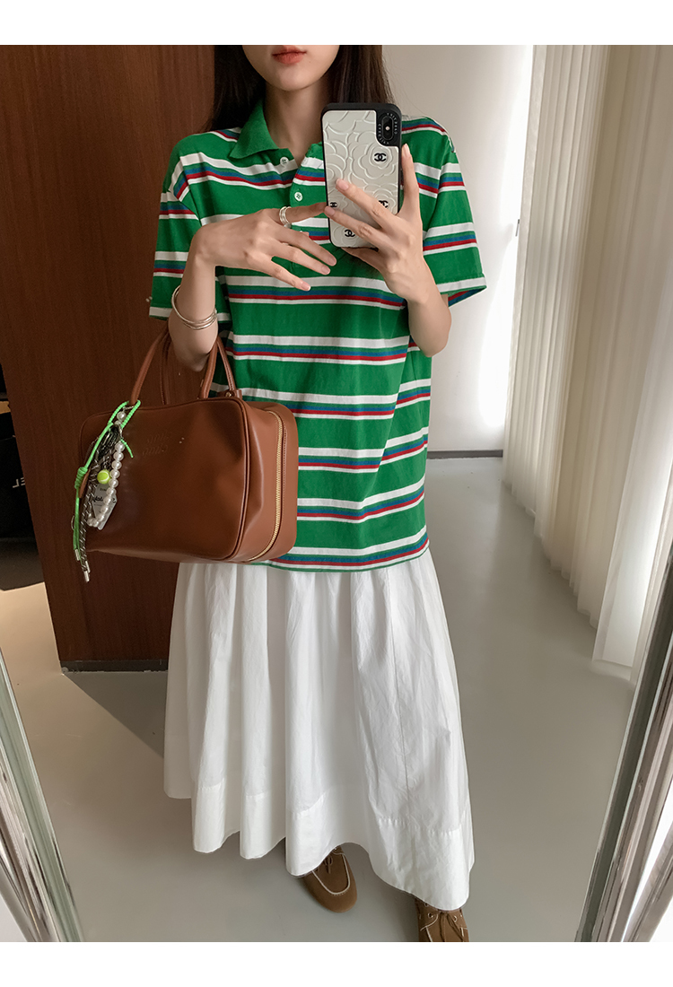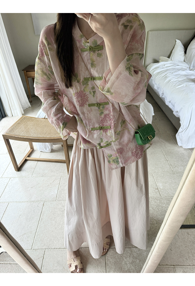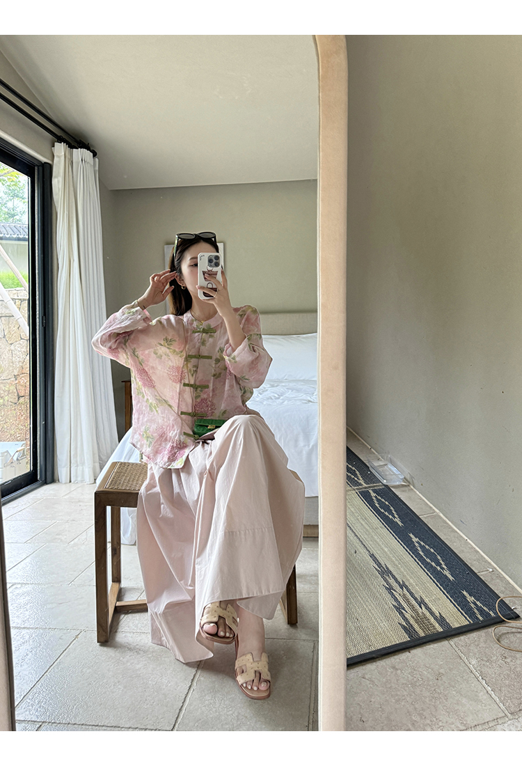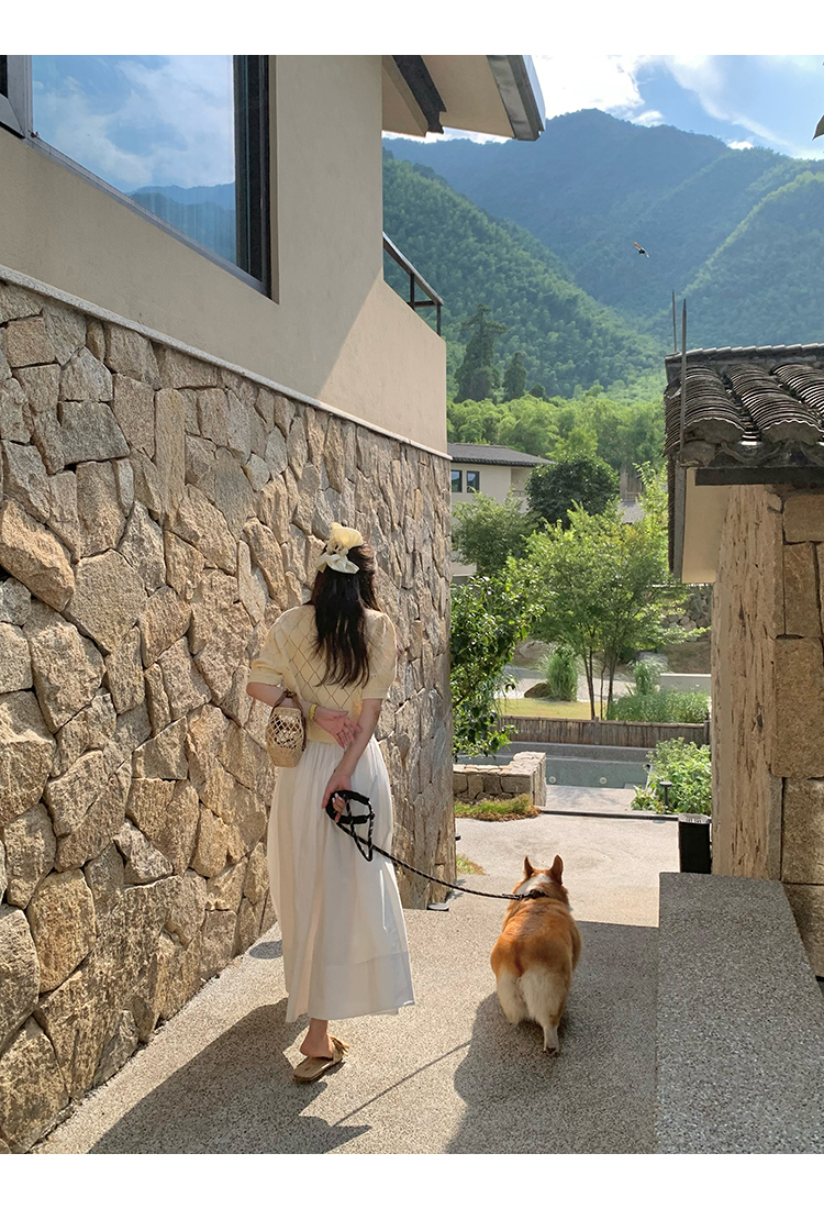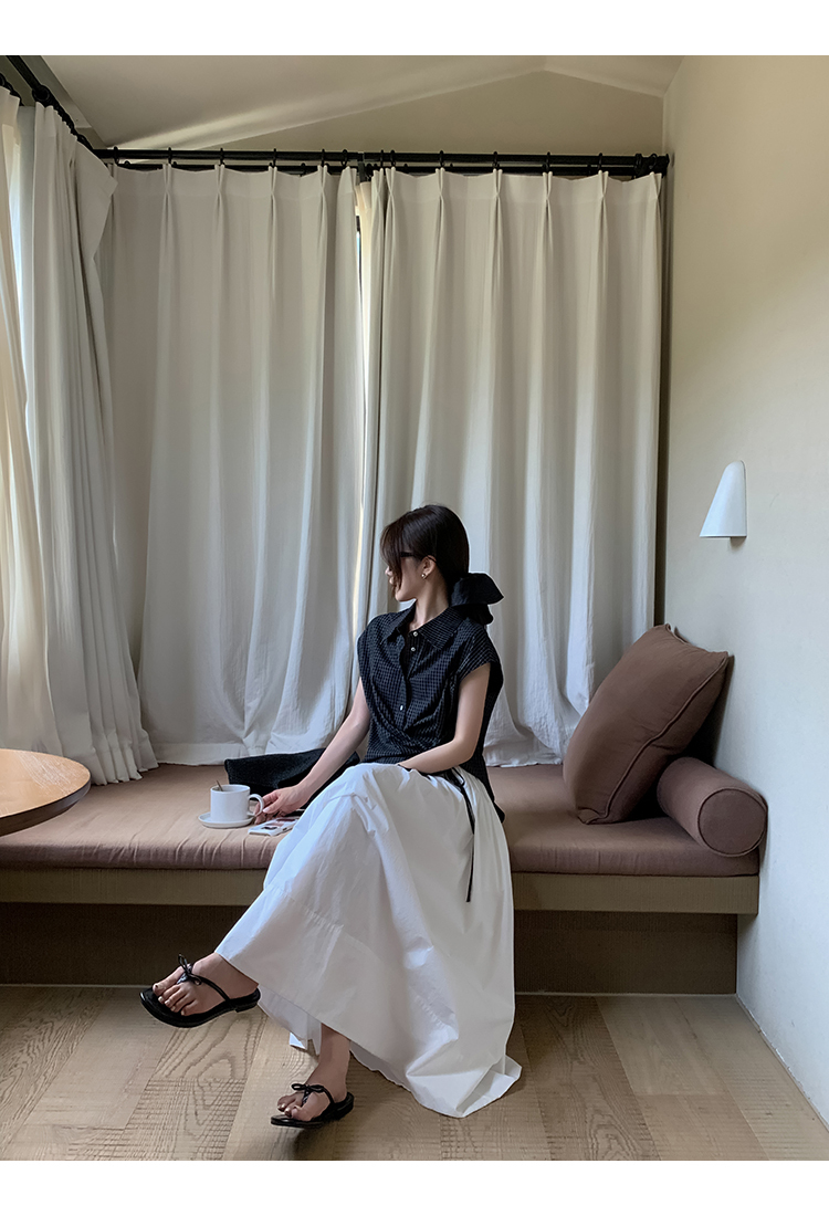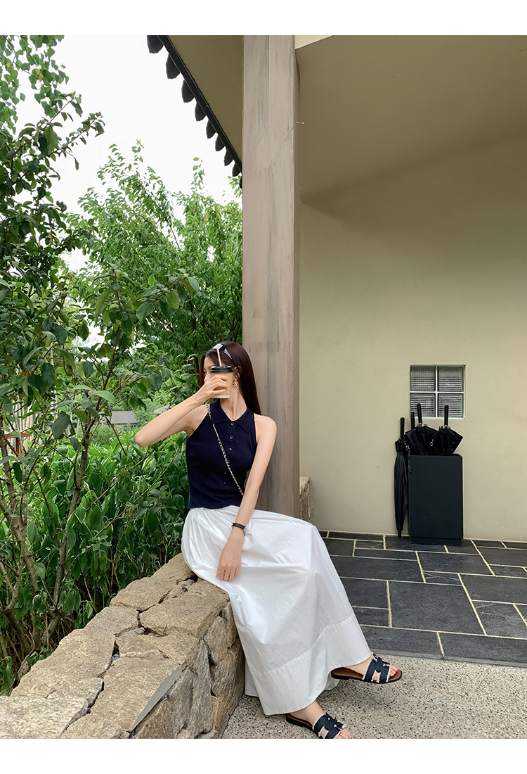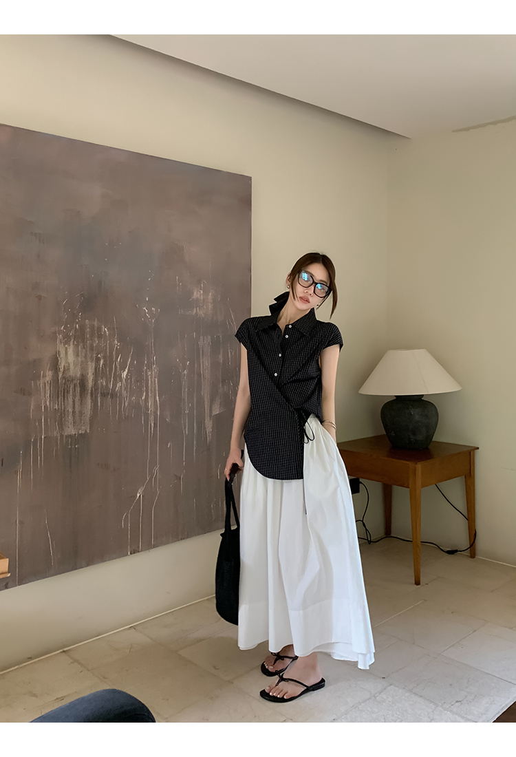 *o-ha-you*【FMQQ2042057】盛夏elegant-私服半裙骨感水洗精梳棉重工抽皺鬆緊腰大擺半身裙