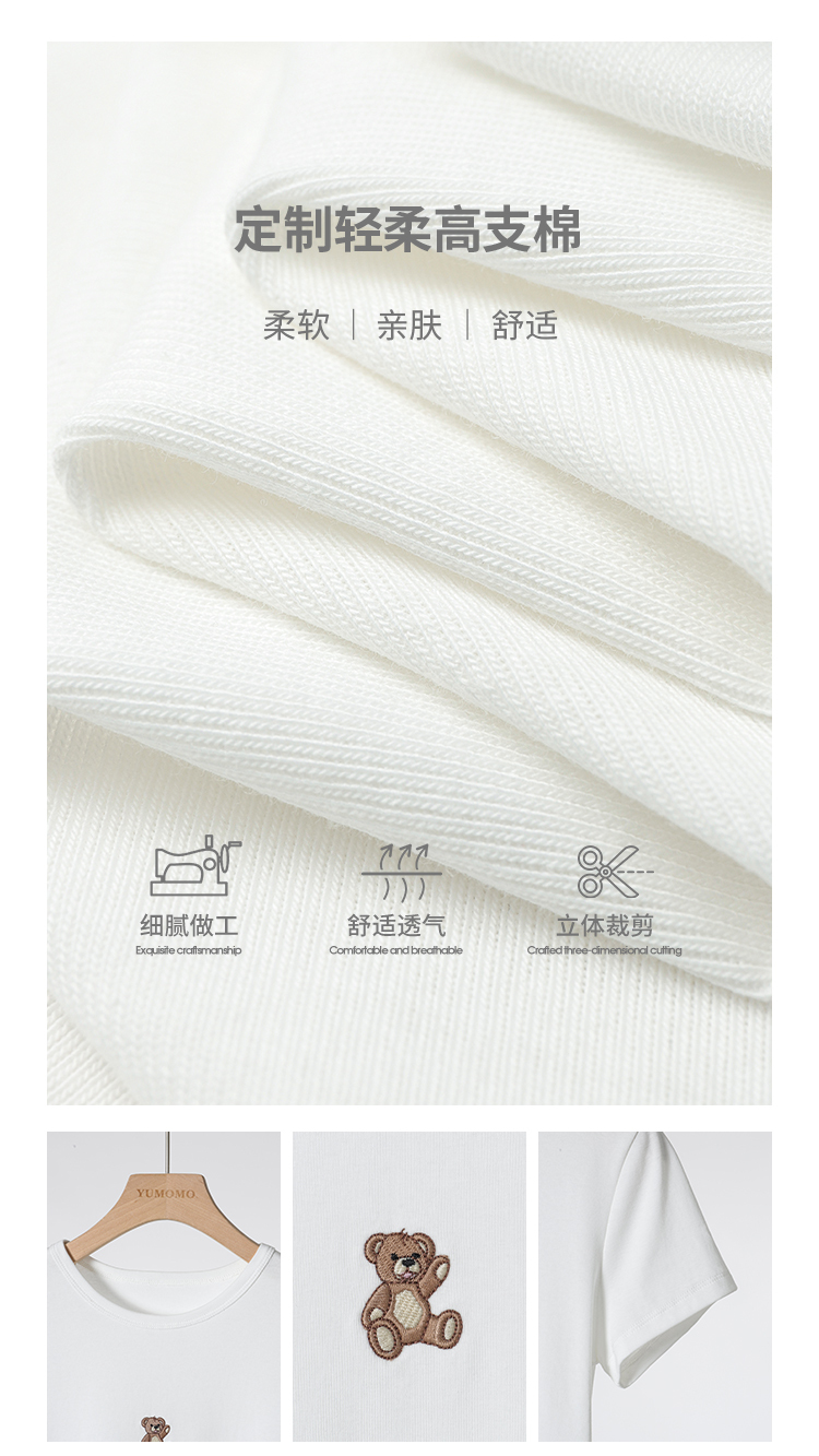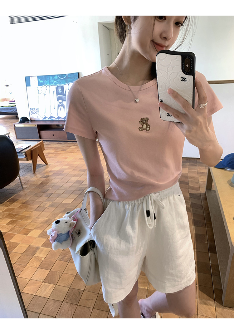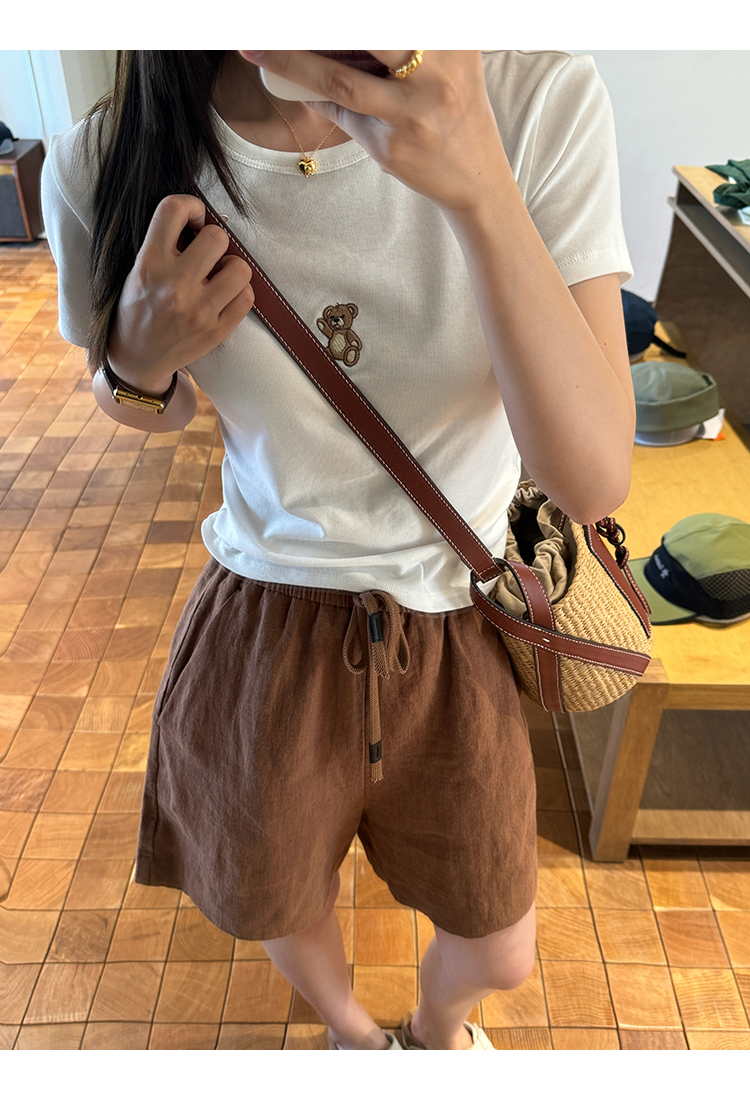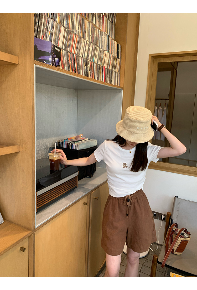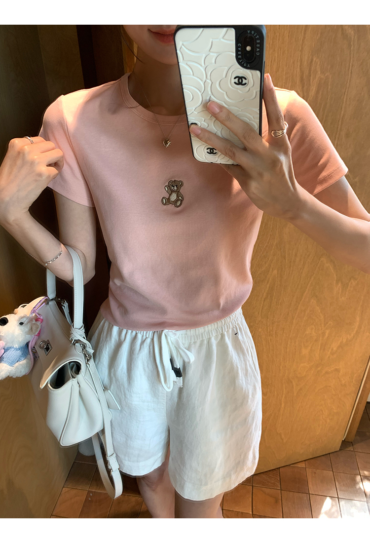 *o-ha-you*【FMQT2041059】小熊T休閒套裝天然高支棉刺繡T恤/【M系列】老錢亞麻短褲-如有需要請先諮詢