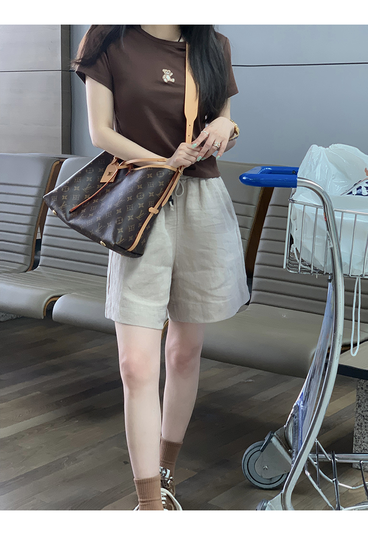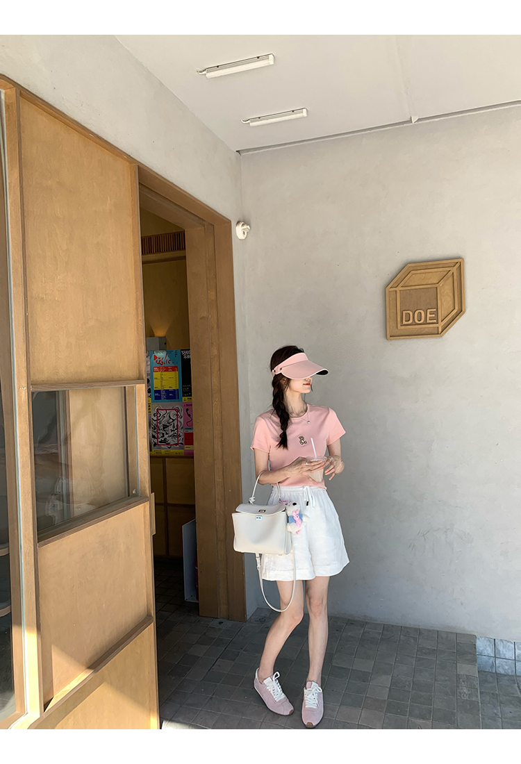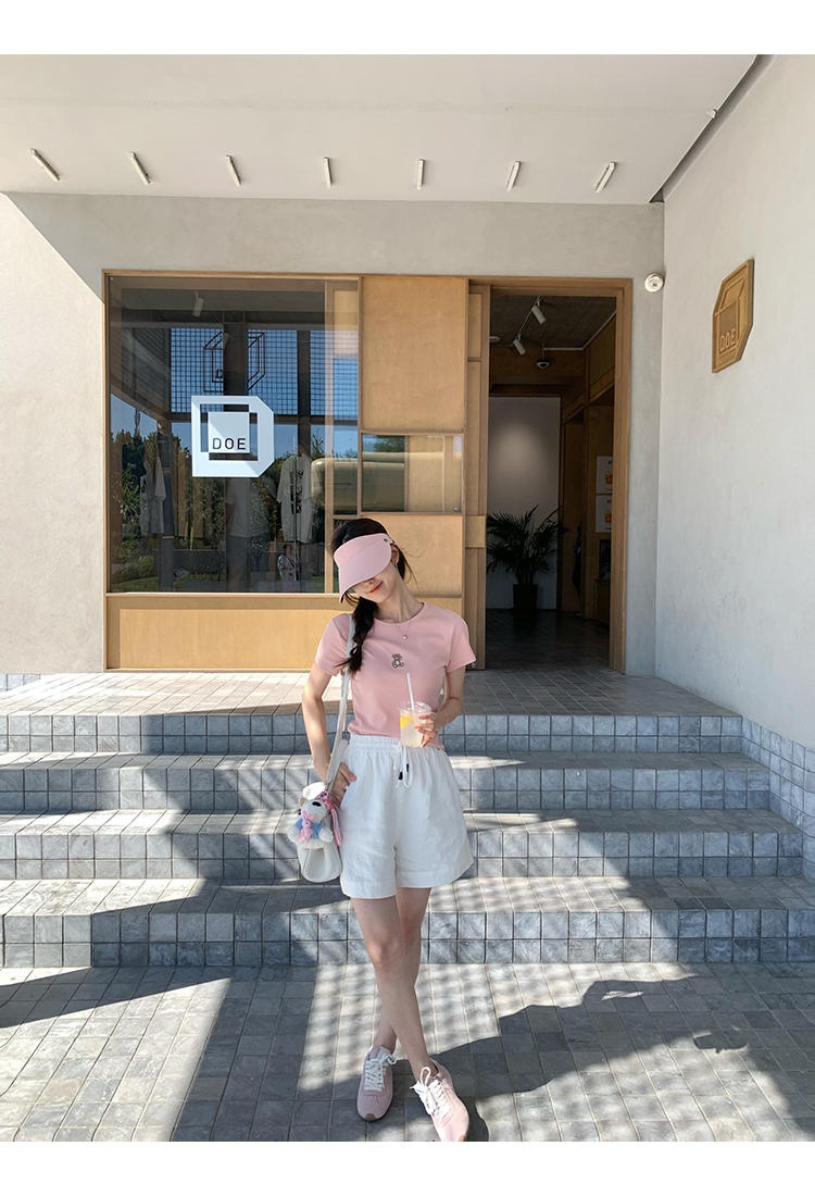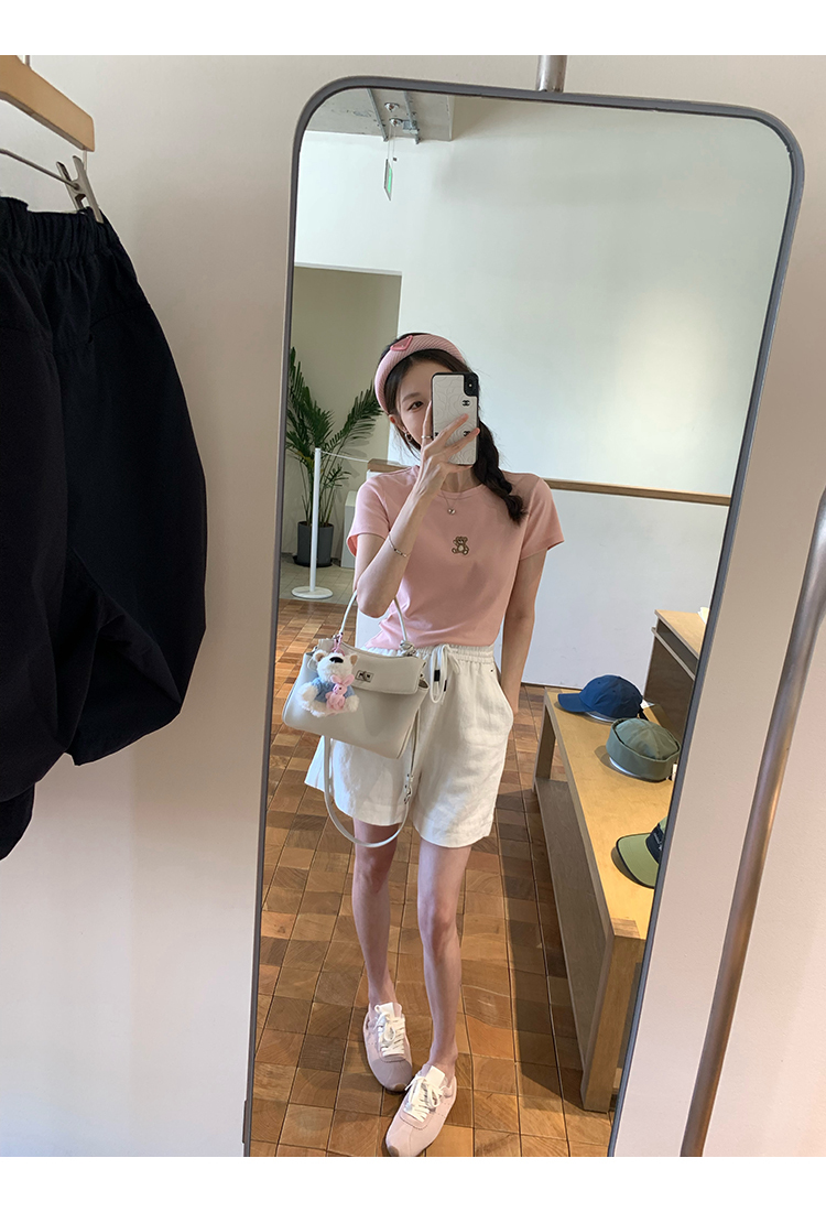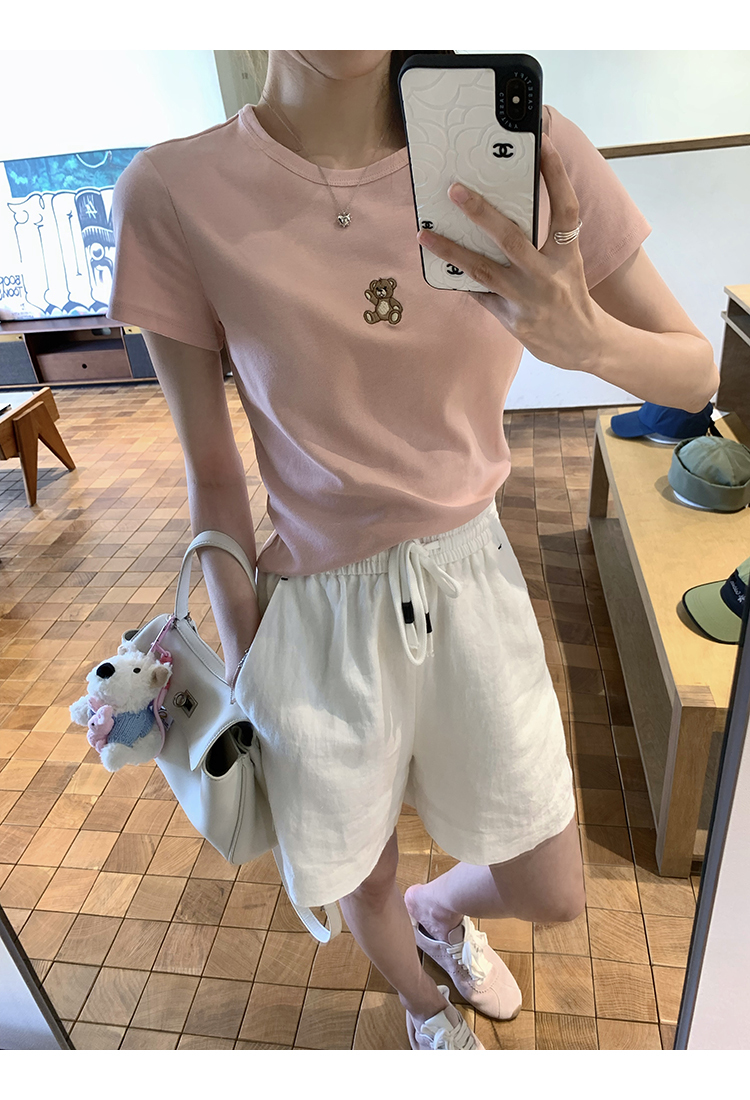 *o-ha-you*【FMQT2041059】小熊T休閒套裝天然高支棉刺繡T恤/【M系列】老錢亞麻短褲-如有需要請先諮詢