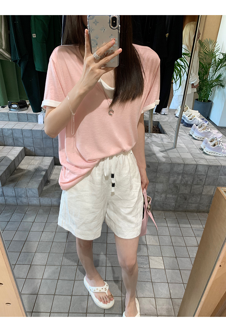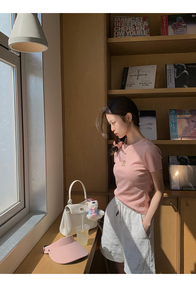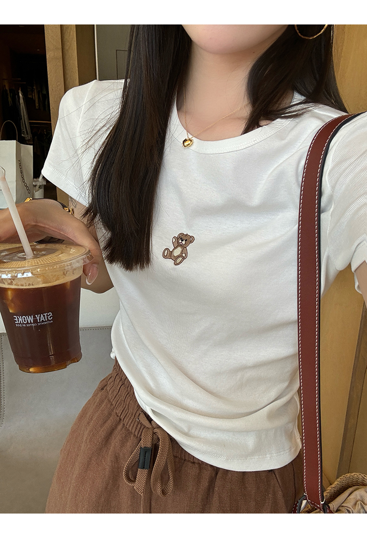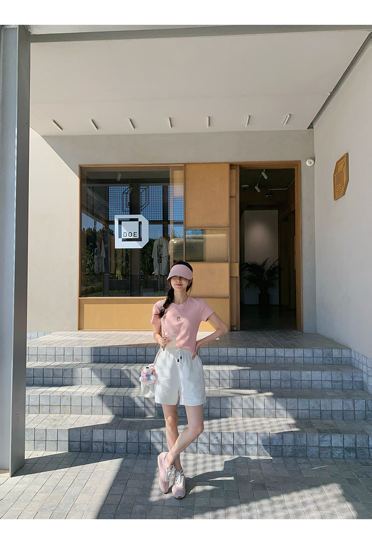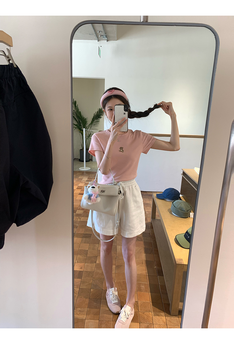 *o-ha-you*【FMQT2041059】小熊T休閒套裝天然高支棉刺繡T恤/【M系列】老錢亞麻短褲-如有需要請先諮詢