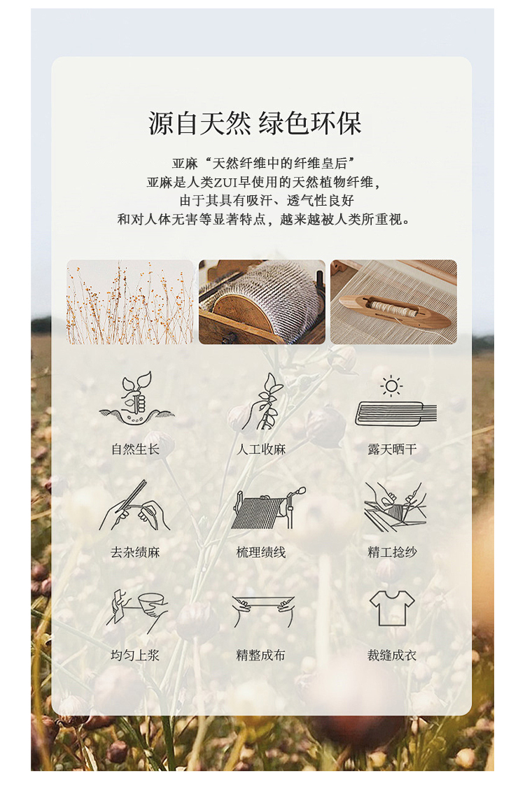 亞麻是一種天繎纖維,具有良好的透氣性和吸濕性,