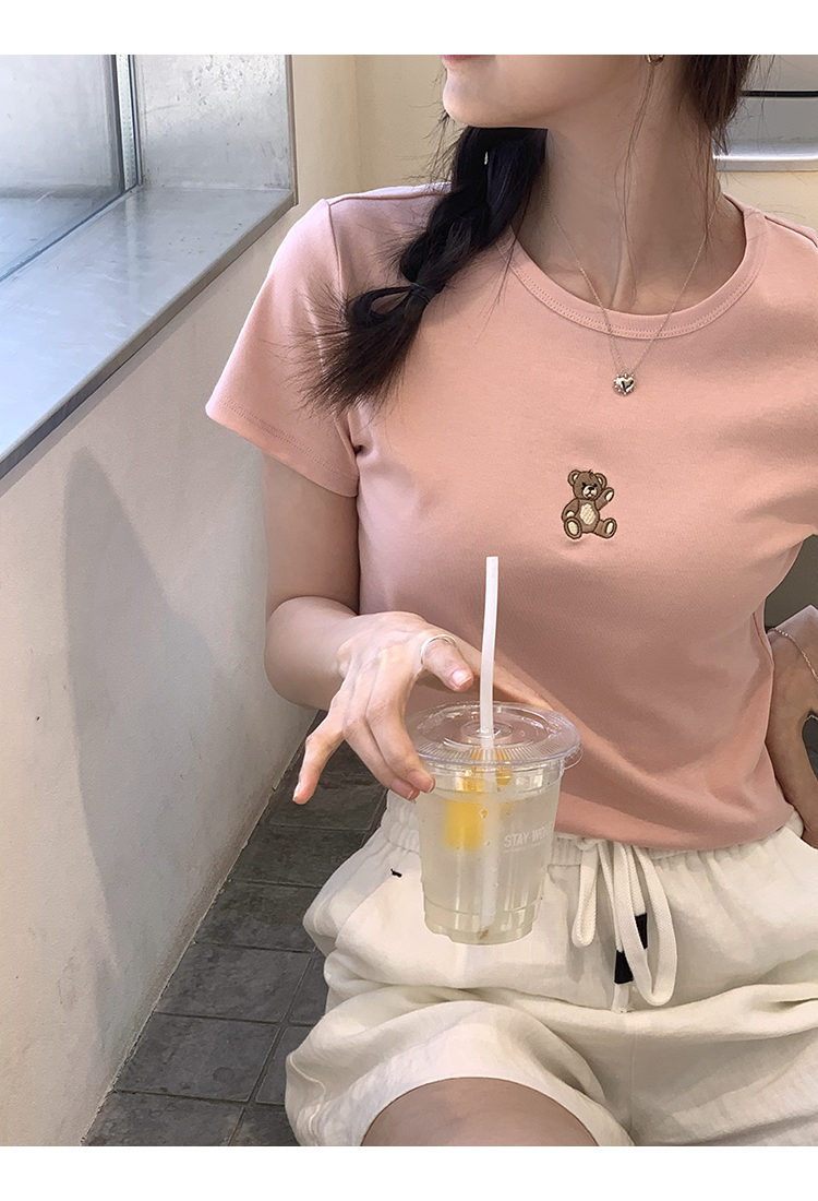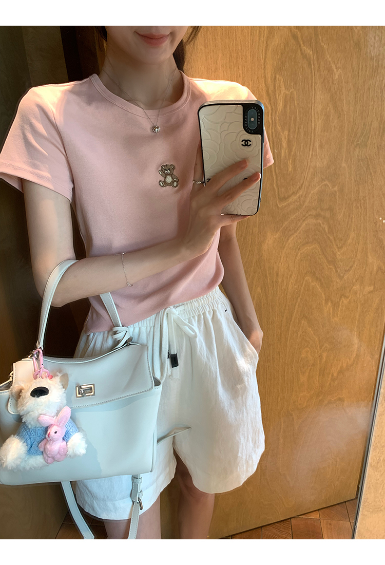 繡花設計前片胸口繡花小熊點綴,增添一份亮點