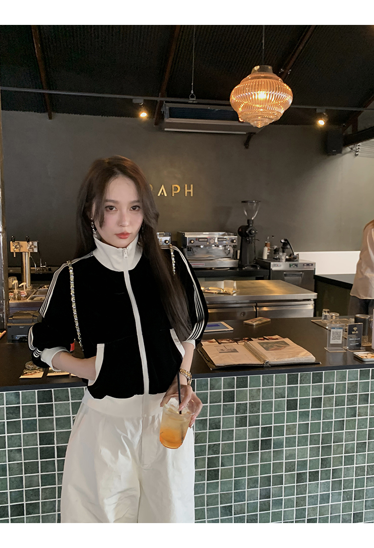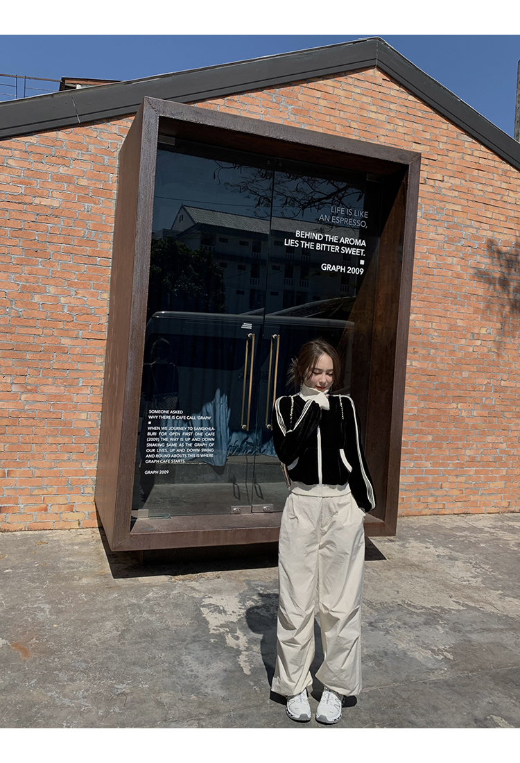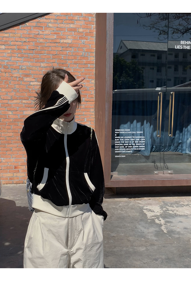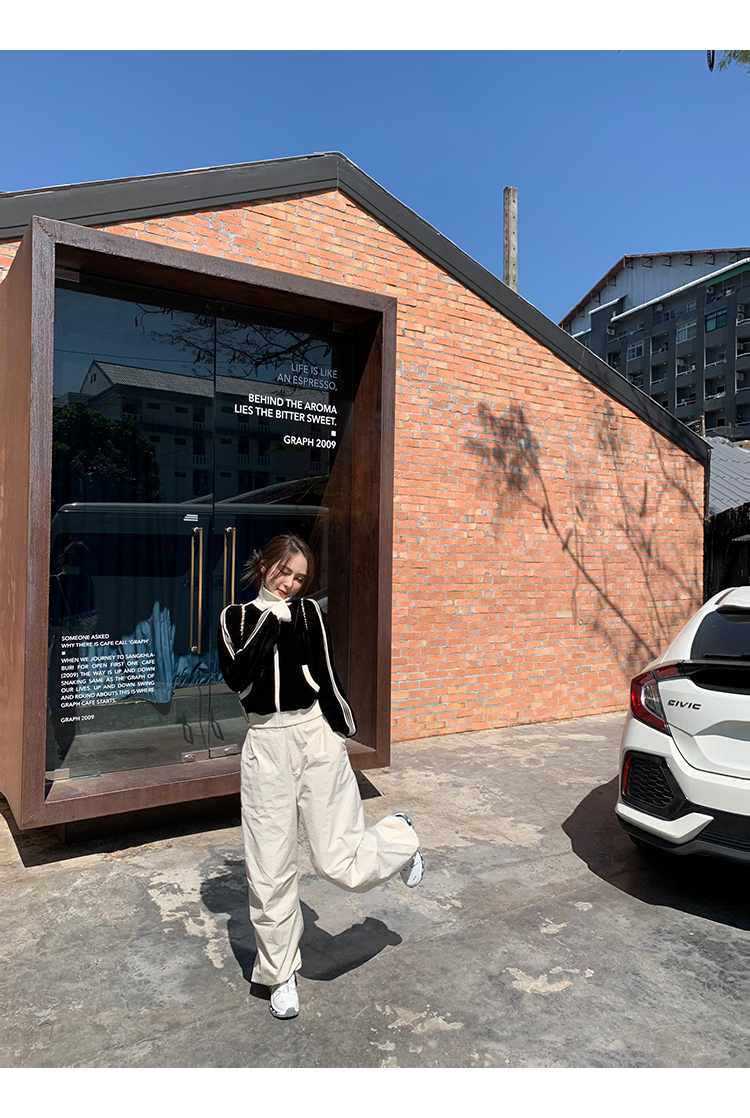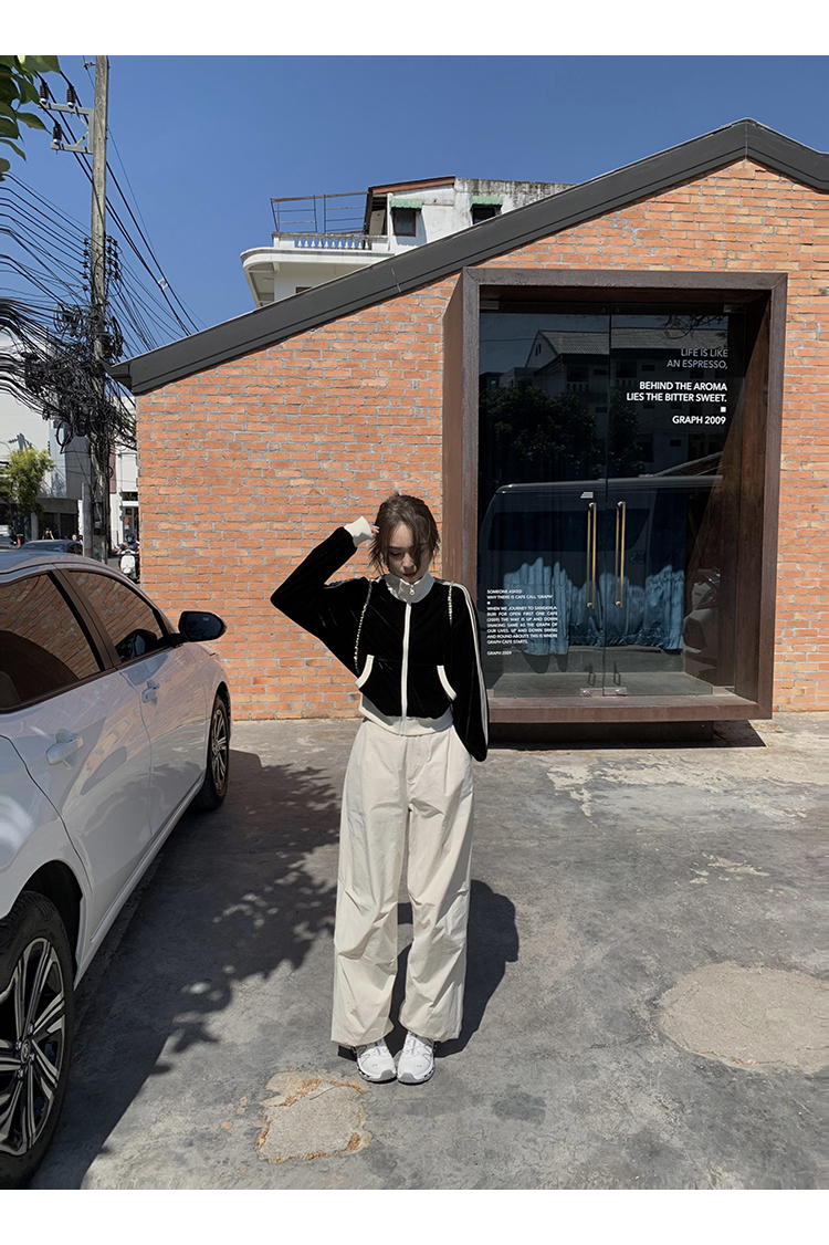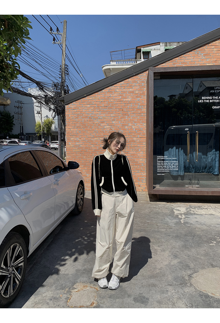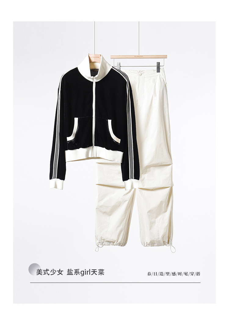 *o-ha-you*【FMQW2031068】美式少女鹽系girl天菜美式運動風絲絨撞色短外套/工裝褲