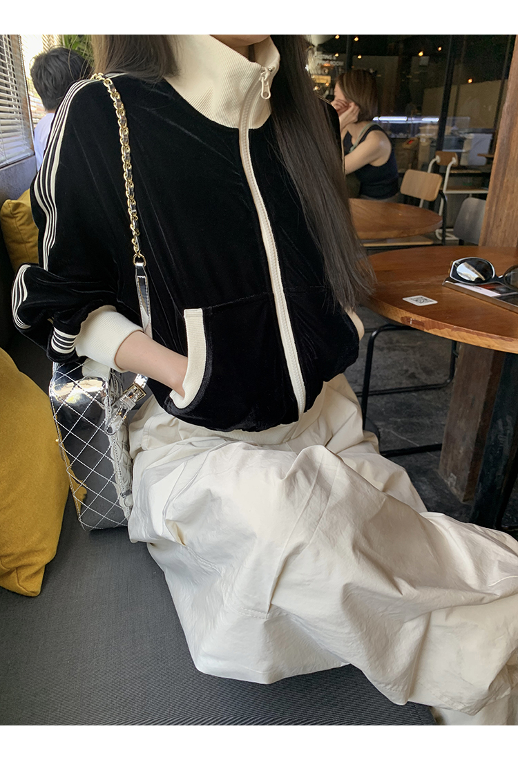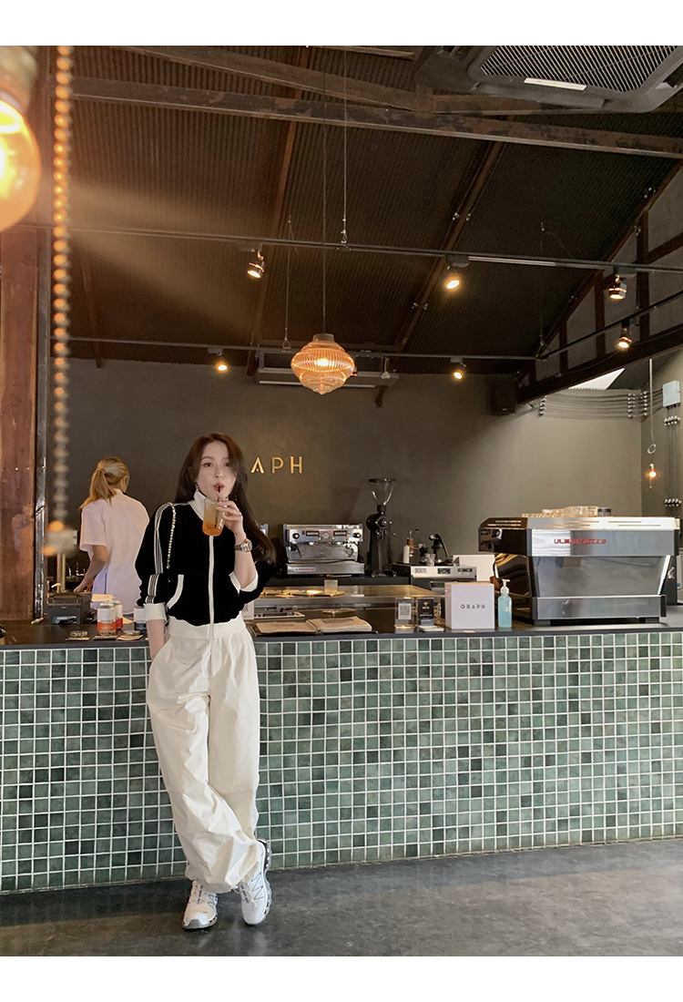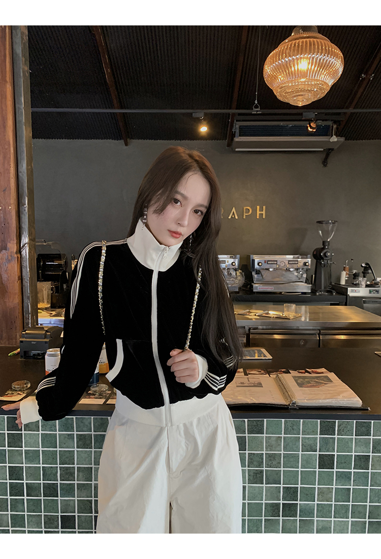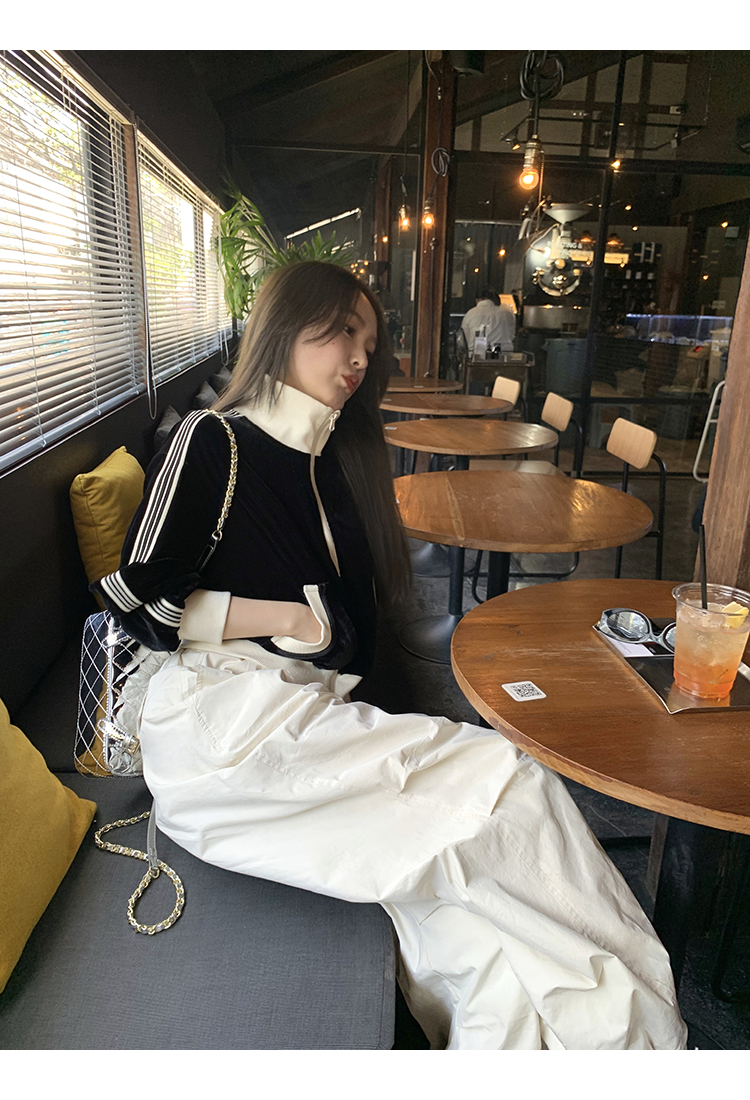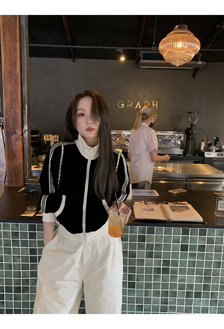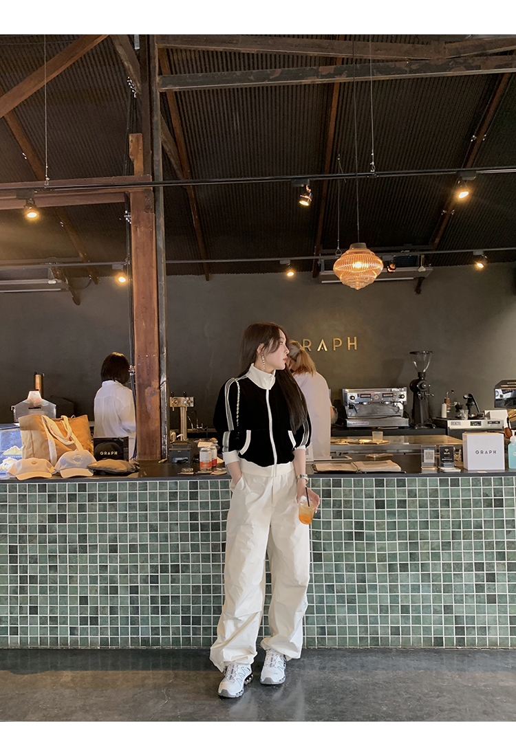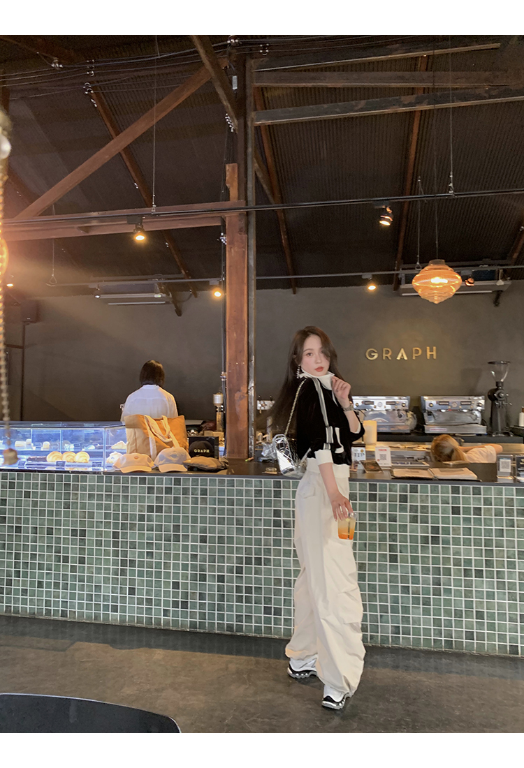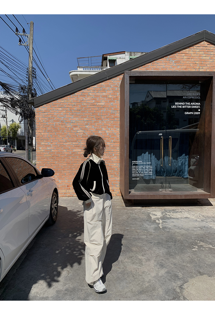 *o-ha-you*【FMQW2031068】美式少女鹽系girl天菜美式運動風絲絨撞色短外套/工裝褲