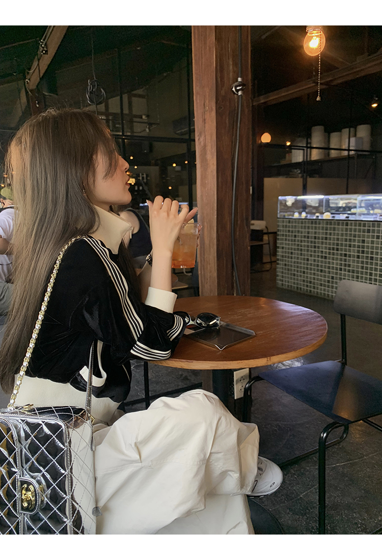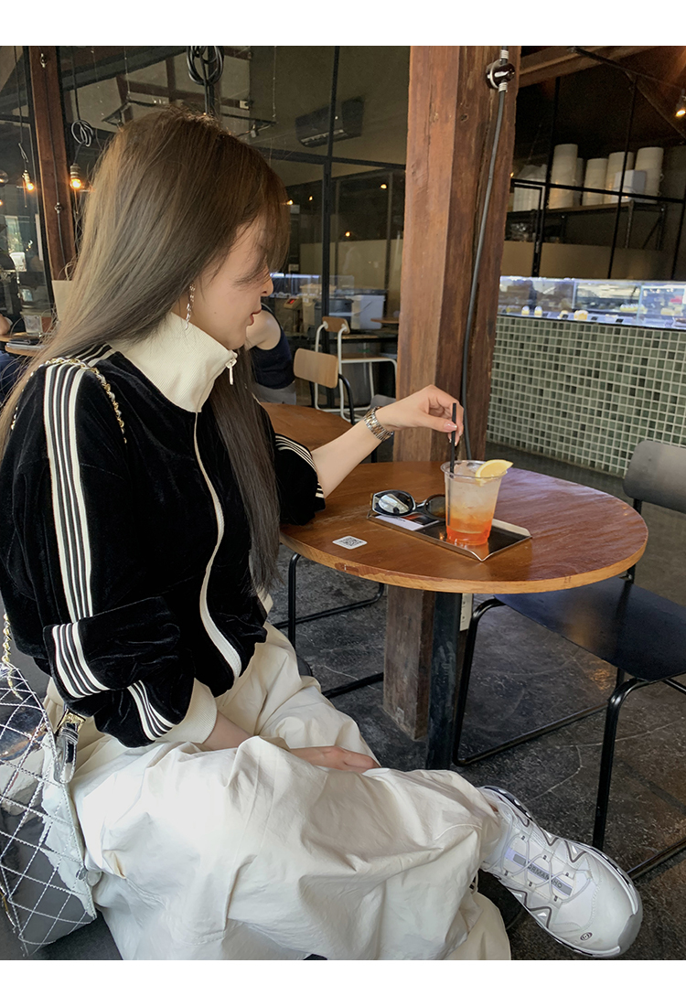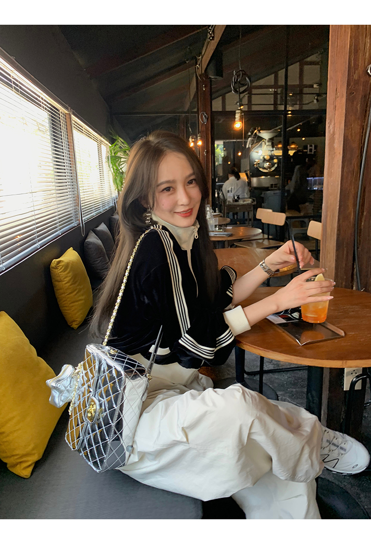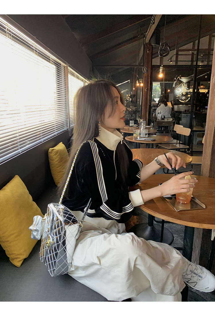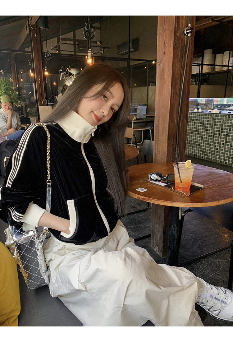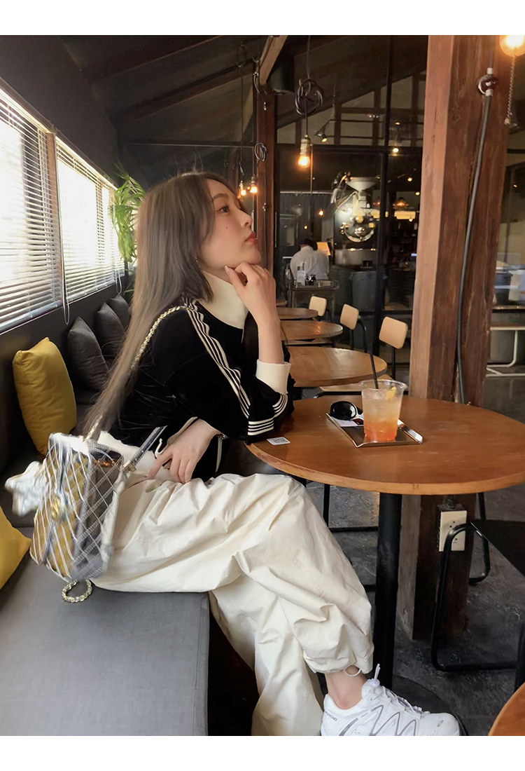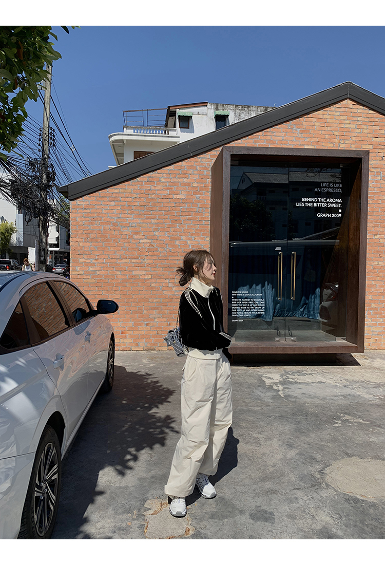 *o-ha-you*【FMQW2031068】美式少女鹽系girl天菜美式運動風絲絨撞色短外套/工裝褲
