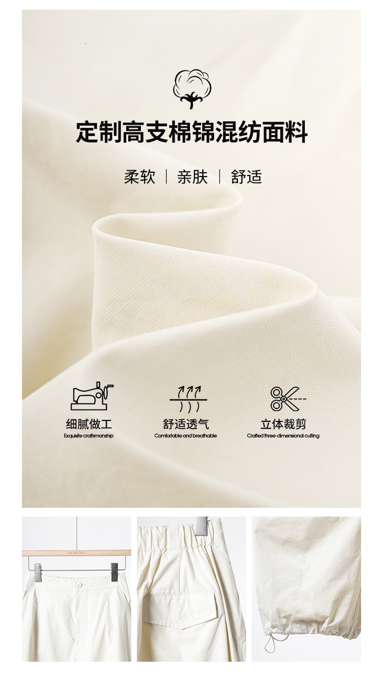 工裝褲布料品名:訂製高支棉錦混紡布料