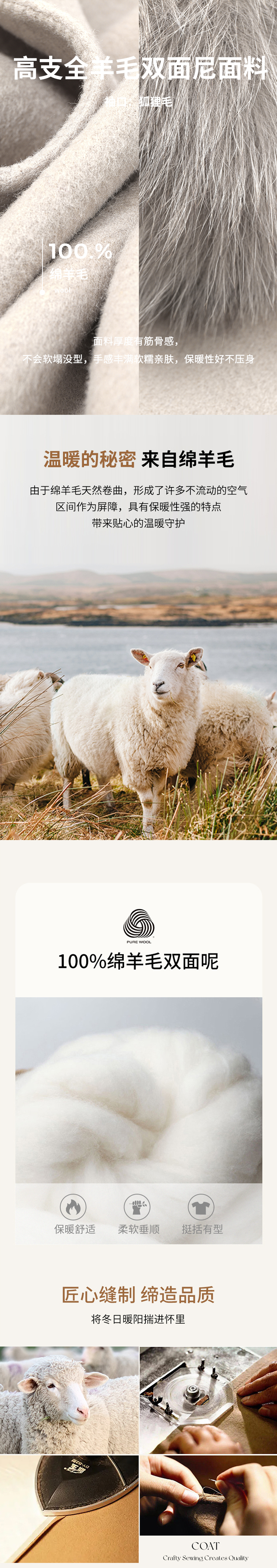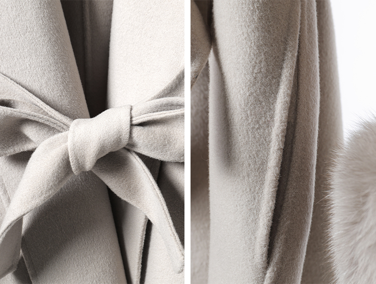 平整。双面呢大衣的缝合采用藏针法,只会看到一条凸