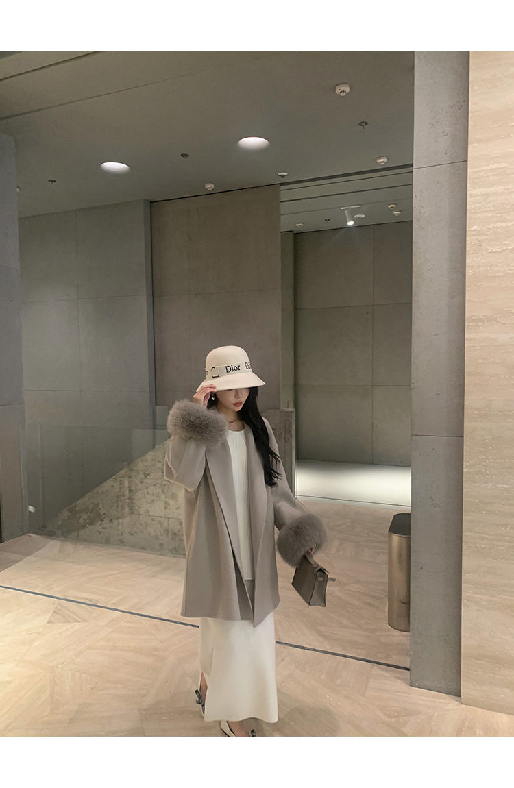 袖口狐狸毛可脱卸,打造多种造型,设计感强