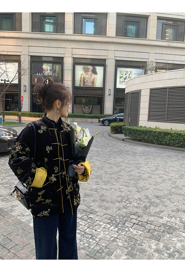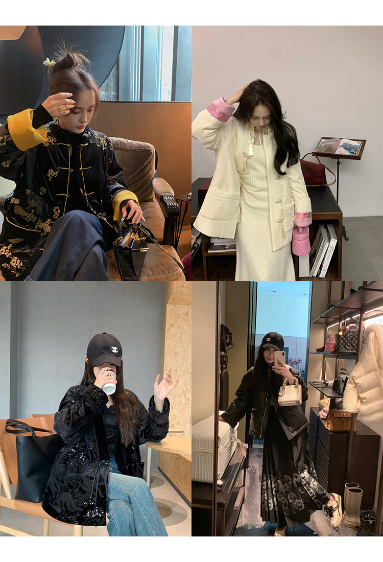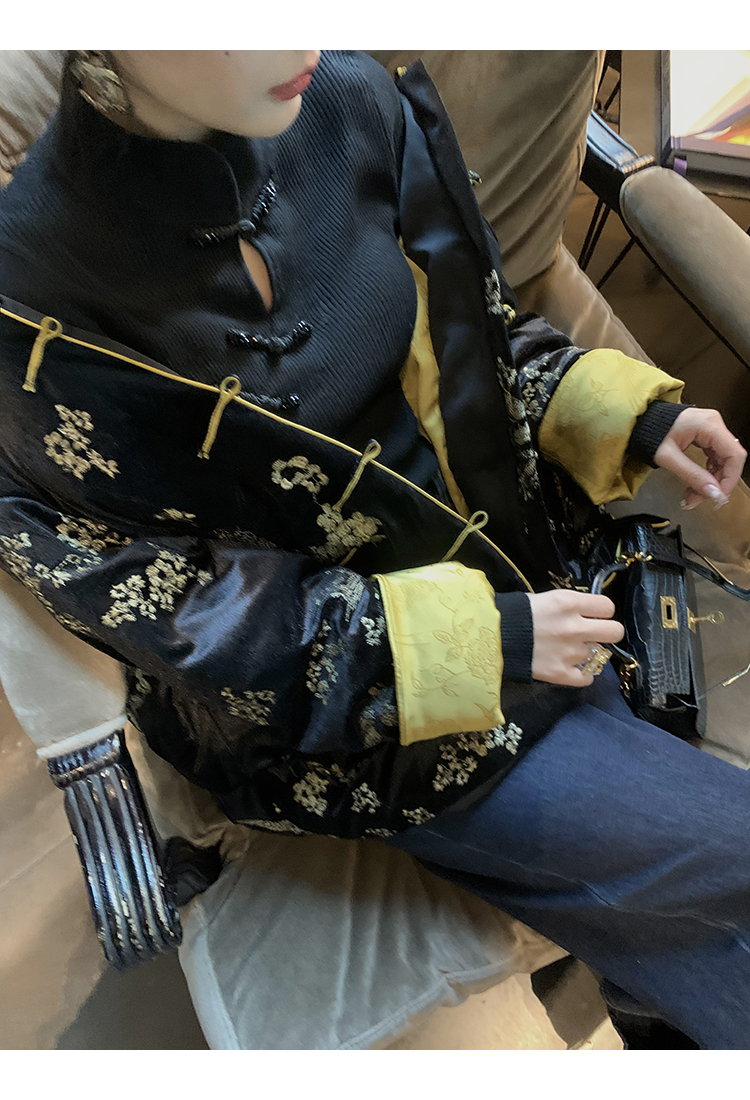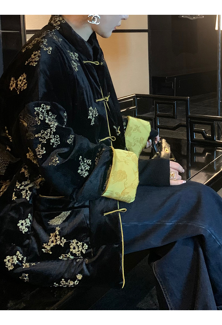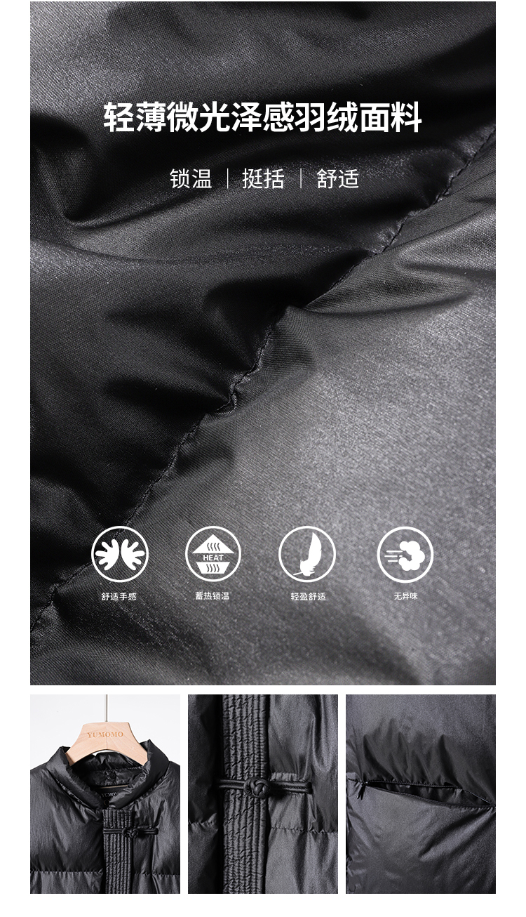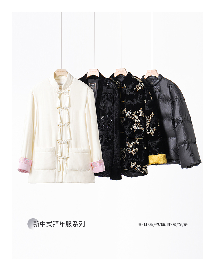 盤扣設計門襟金屬拉鍊+手工盤扣,為新中式增添一份色彩,防風保暖雙層保護