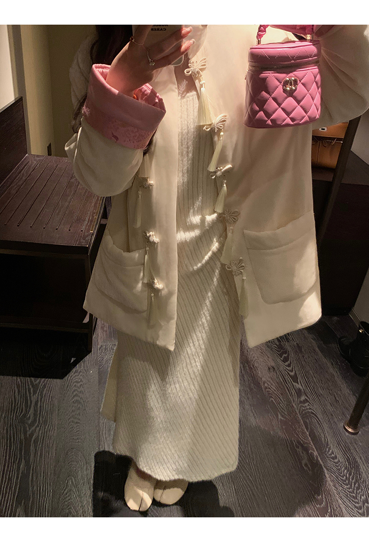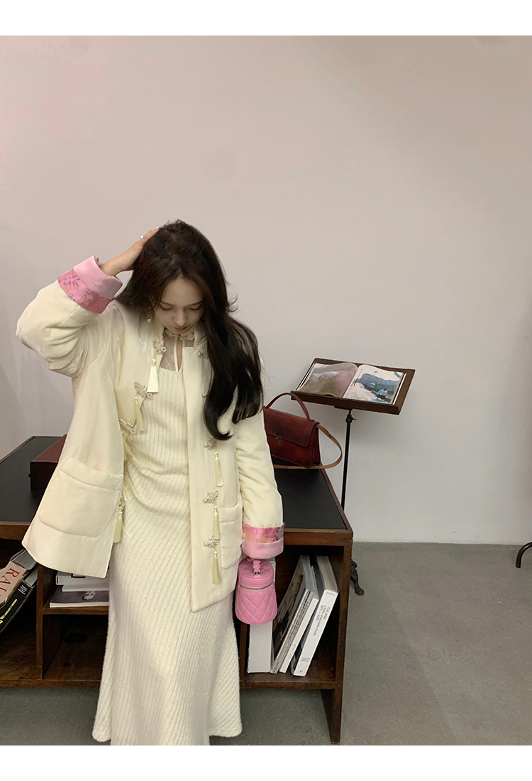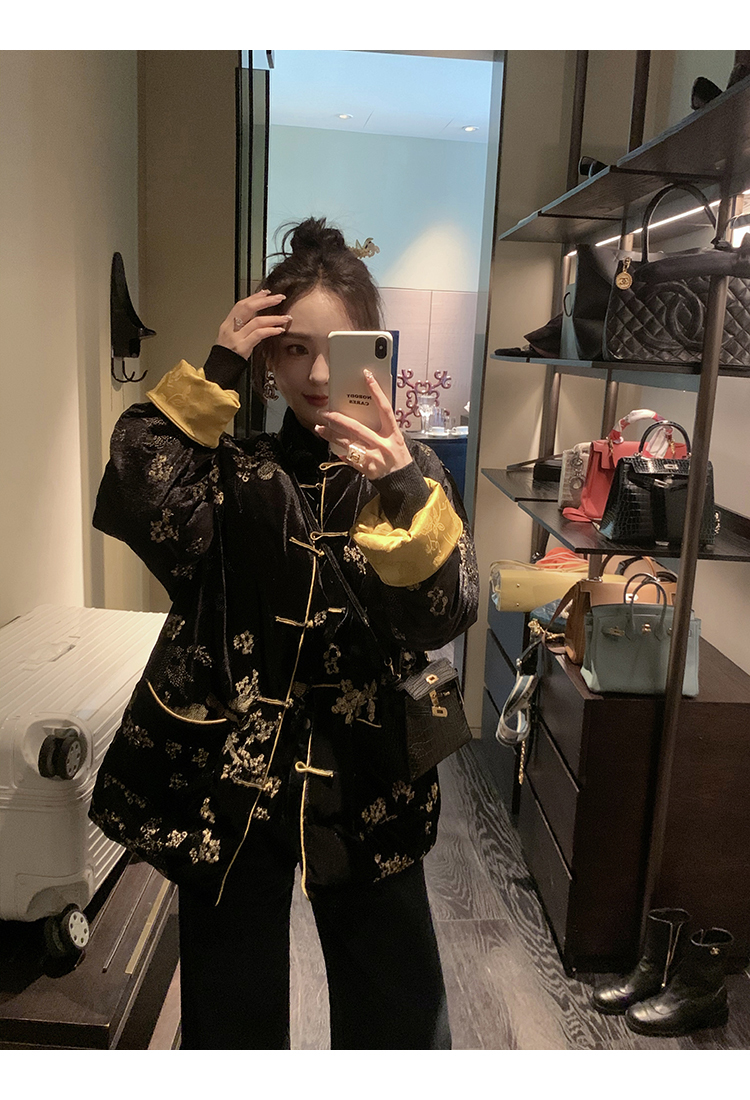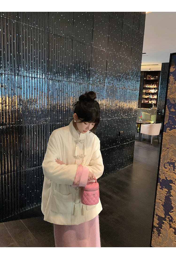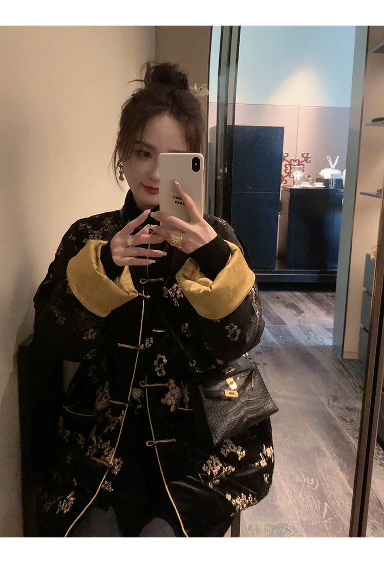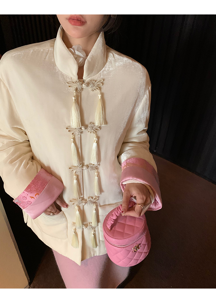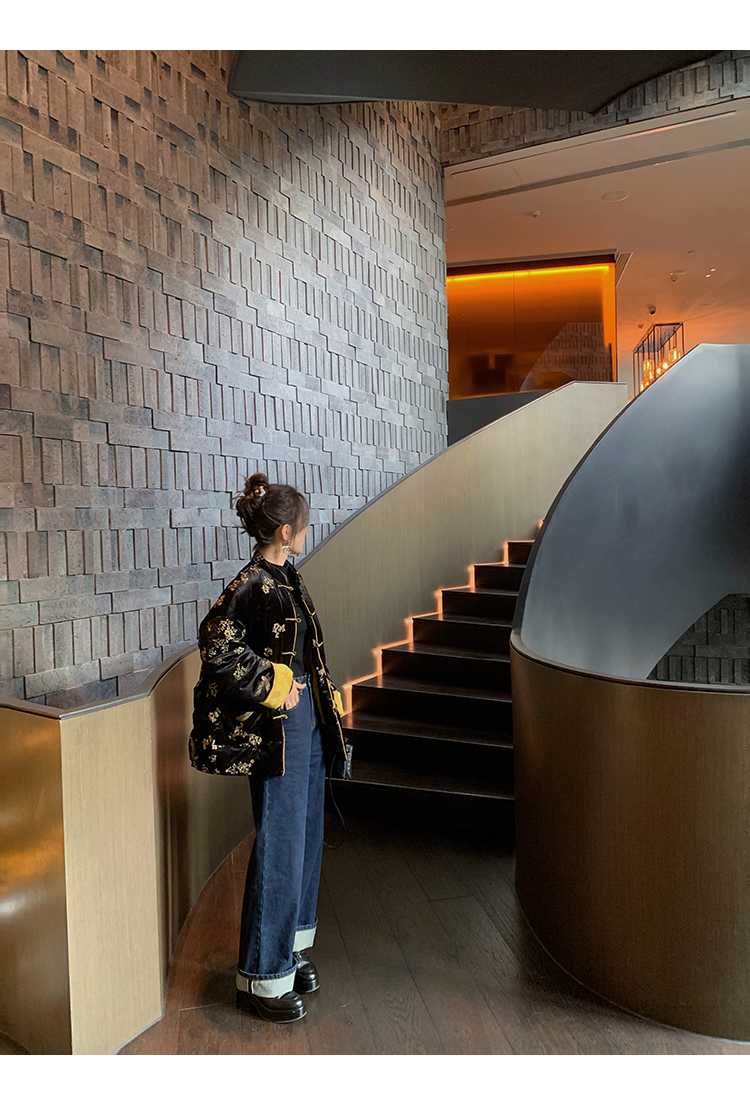 盤扣設計門襟金屬拉鍊+手工盤扣,為新中式增添一份色彩,防風保暖雙層保護