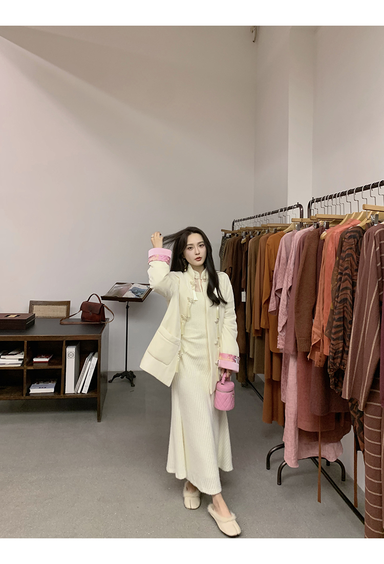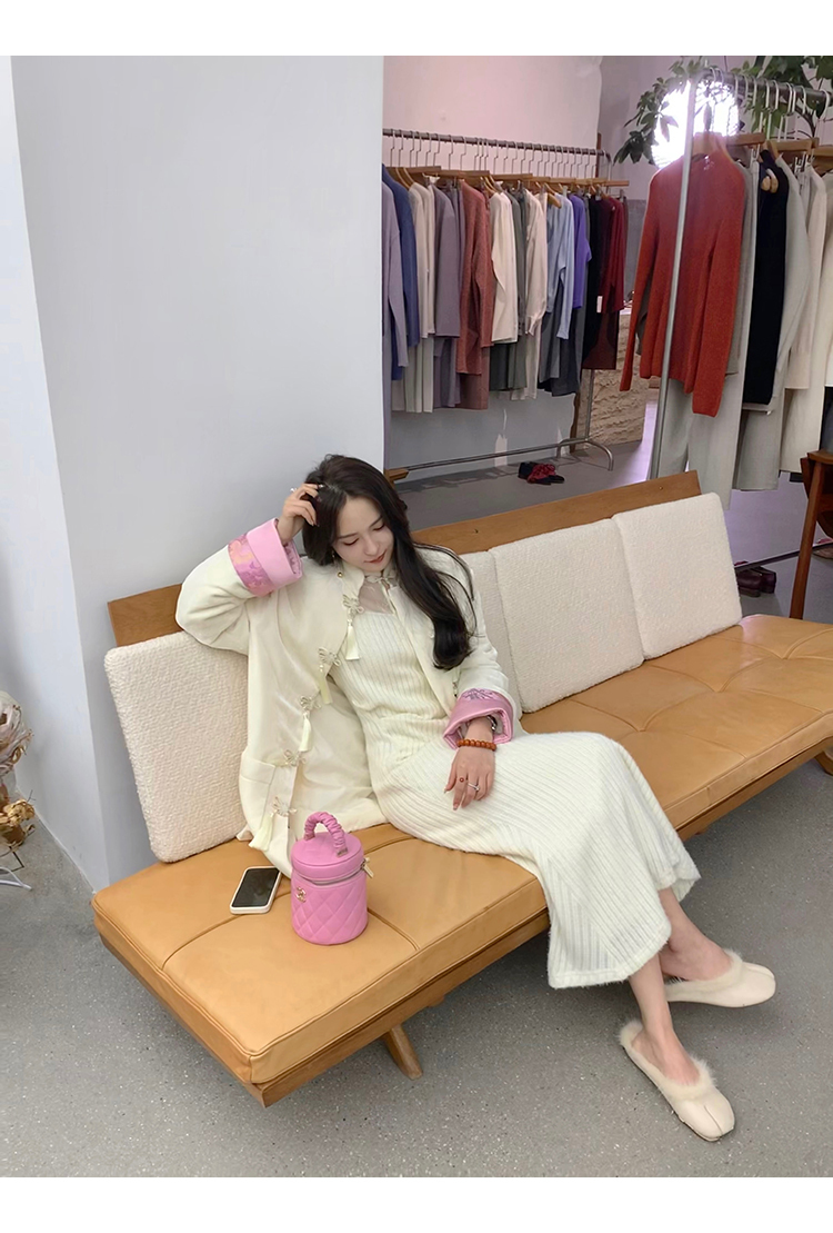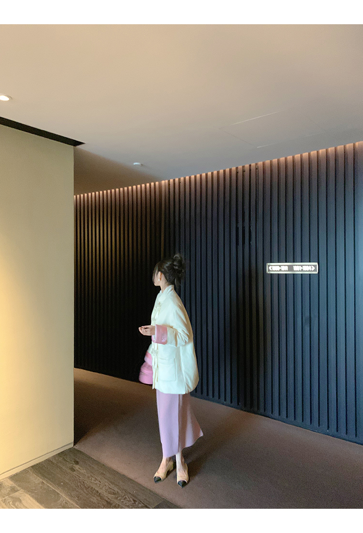 領型設計中式小立領,領口弧度乾淨流暢,展現東方雅韻