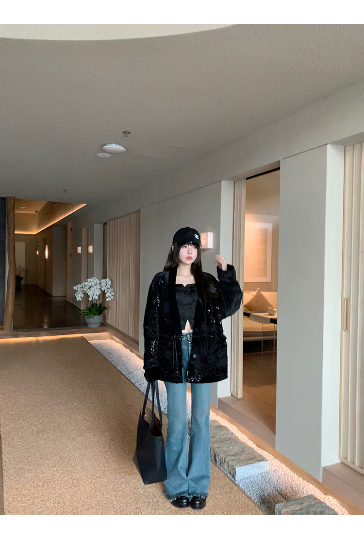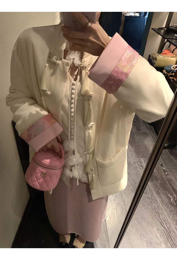 流蘇盤扣外套布料品名:訂製珠光絲絨 袖口:提花布料
