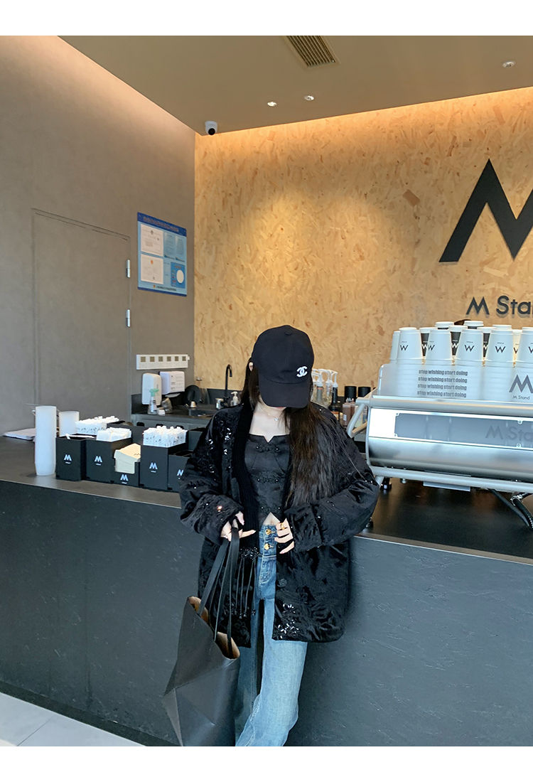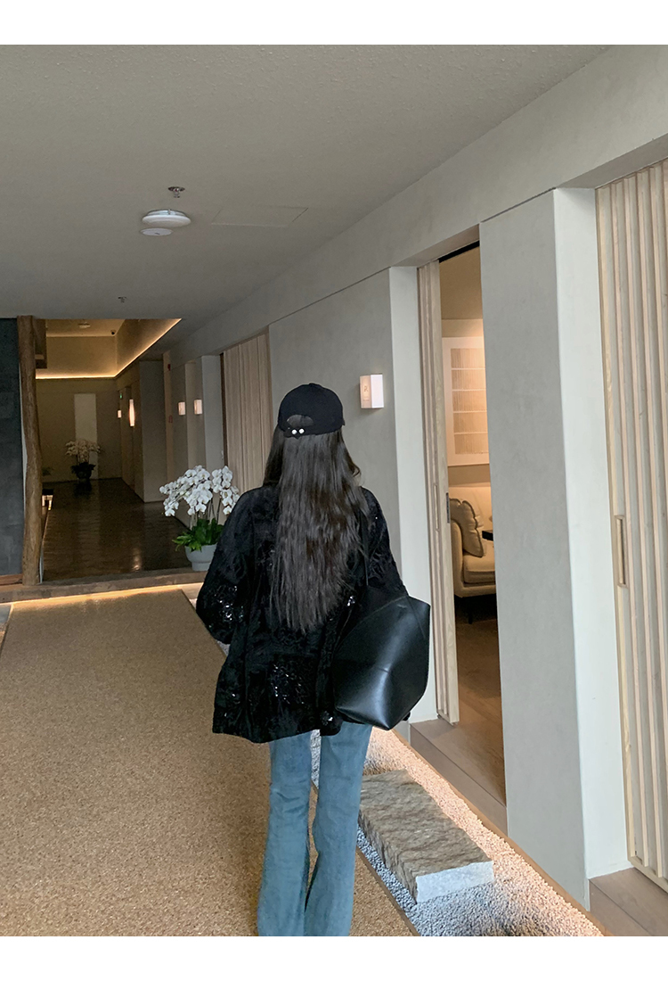 袖口拼接的提花布料, 提花的光澤感碰撞絲絨材質,