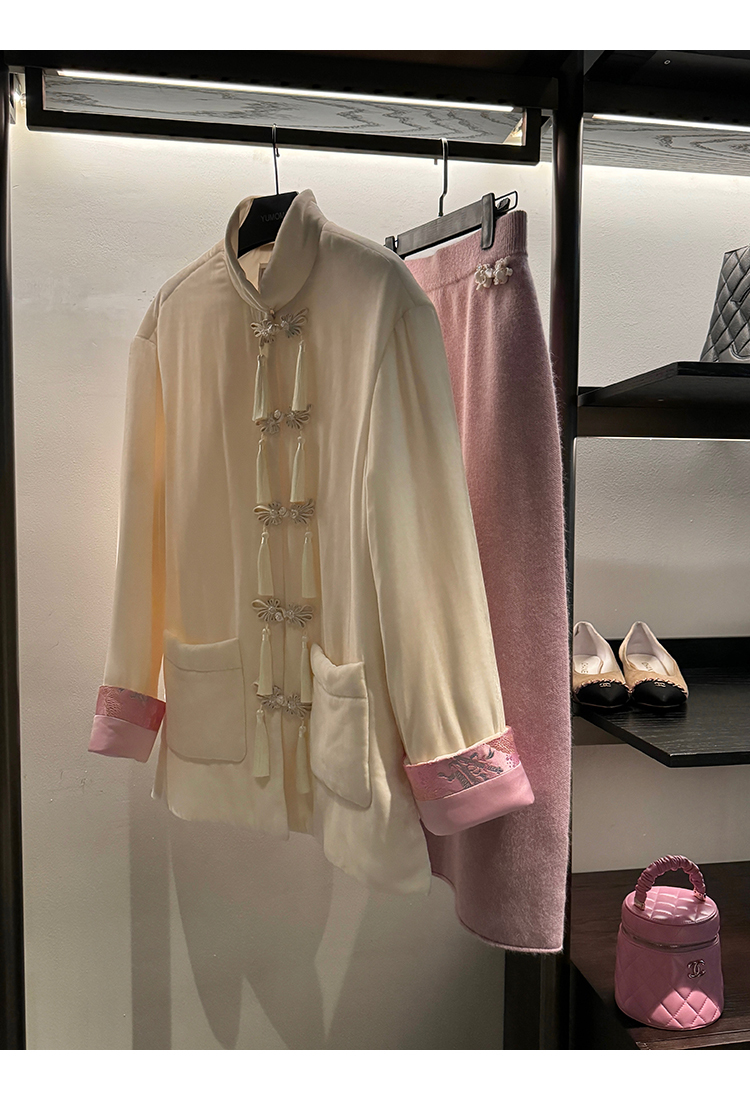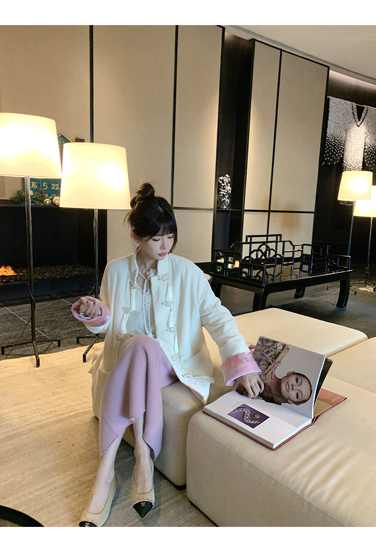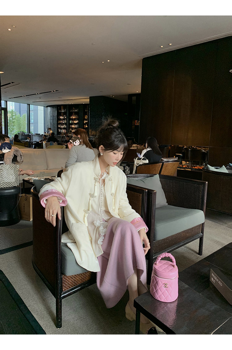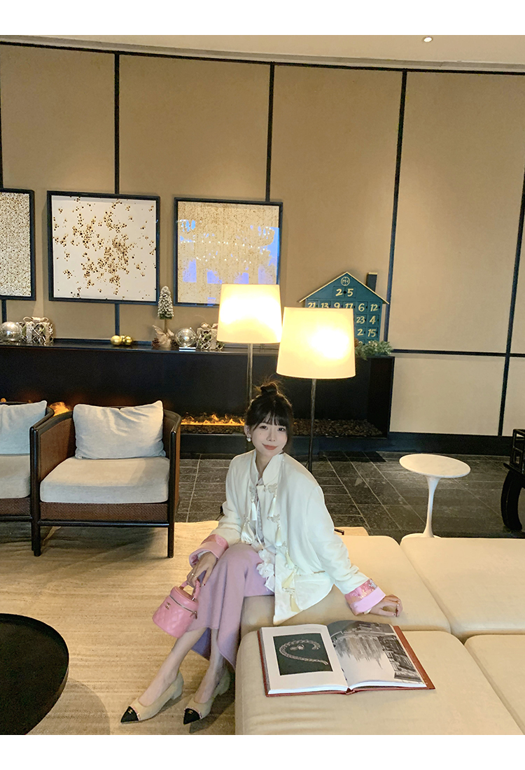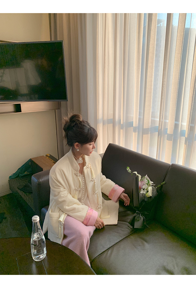盤扣設計門襟加盤扣與衣服相呼應,內裡加欽扣,實用的同時不影響整體的美感