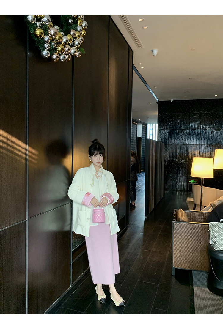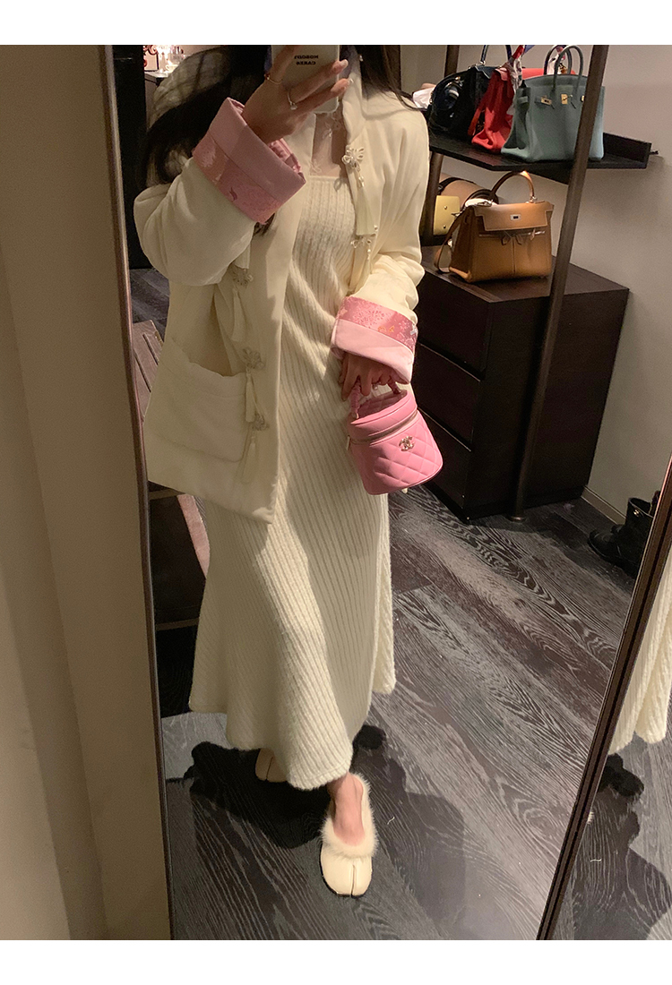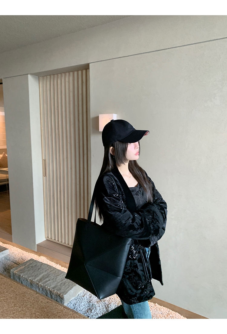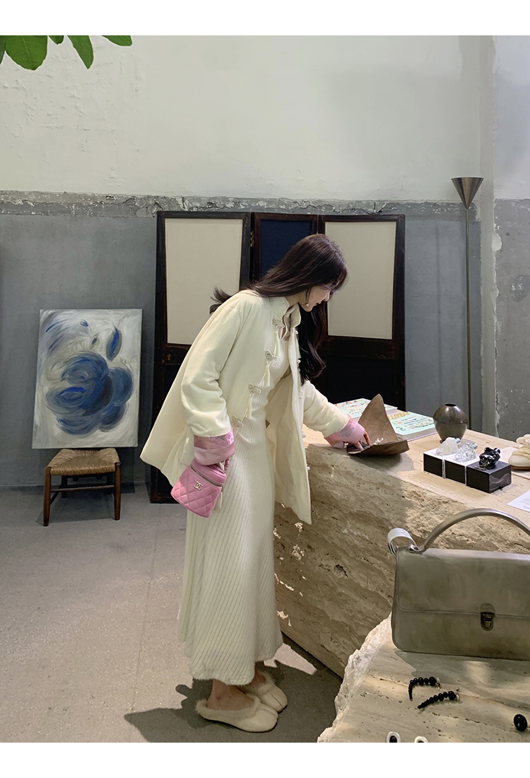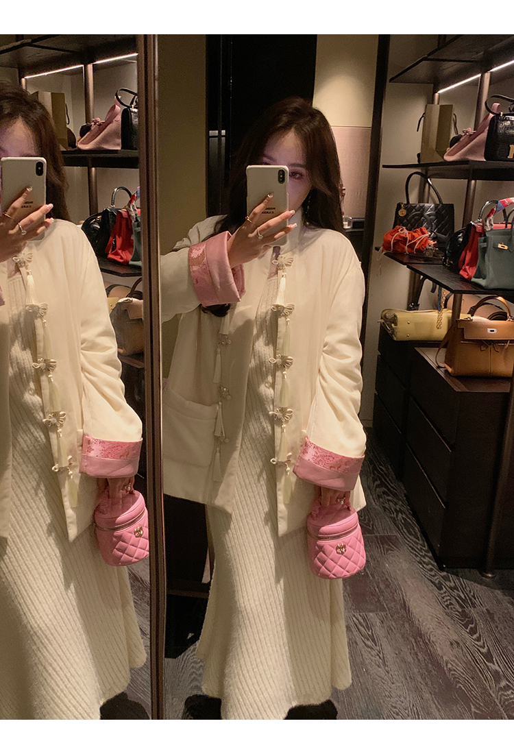 盤扣設計門襟加盤扣與衣服相呼應,內裡加欽扣,實用的同時不影響整體的美感