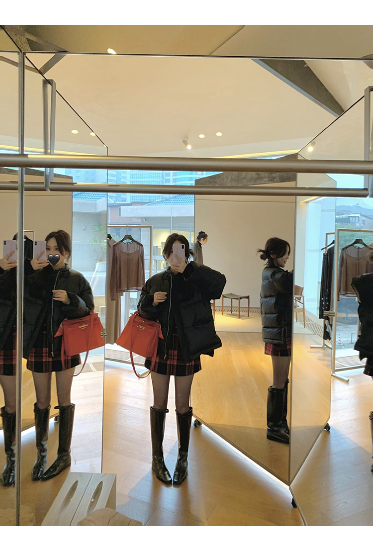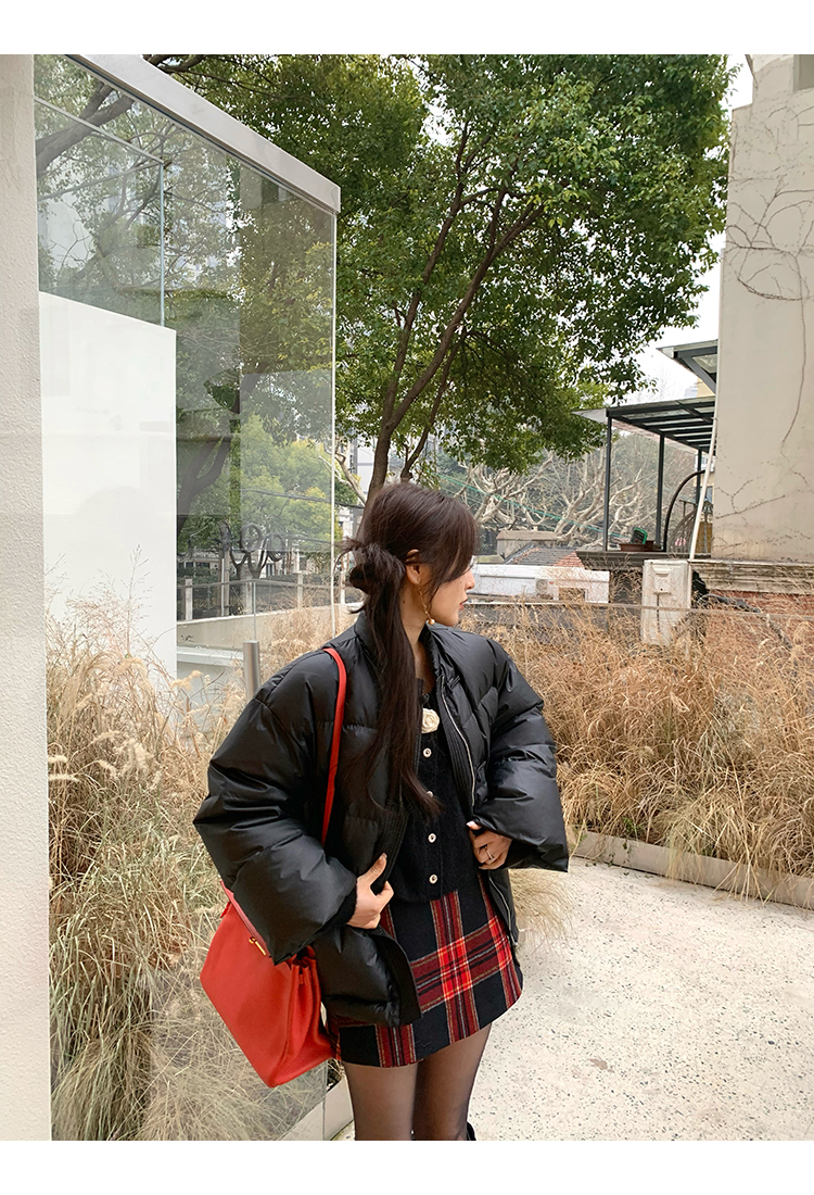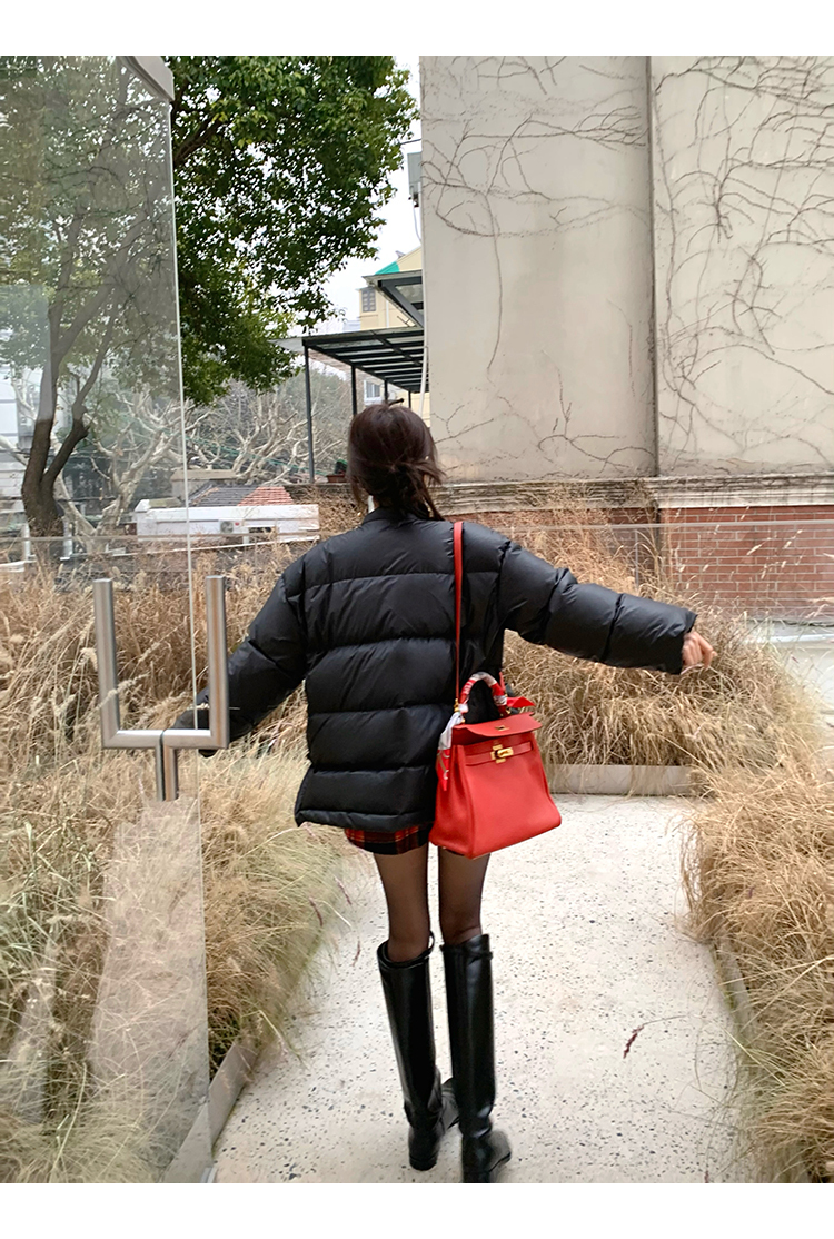 盤扣羽絨外套品名: 訂製輕薄微亮羽絨布料 填充物:90白鴨絨