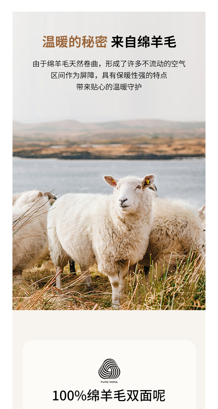 面料品名: 美澳双面立绒呢 面料成分 : 100.%绵羊毛