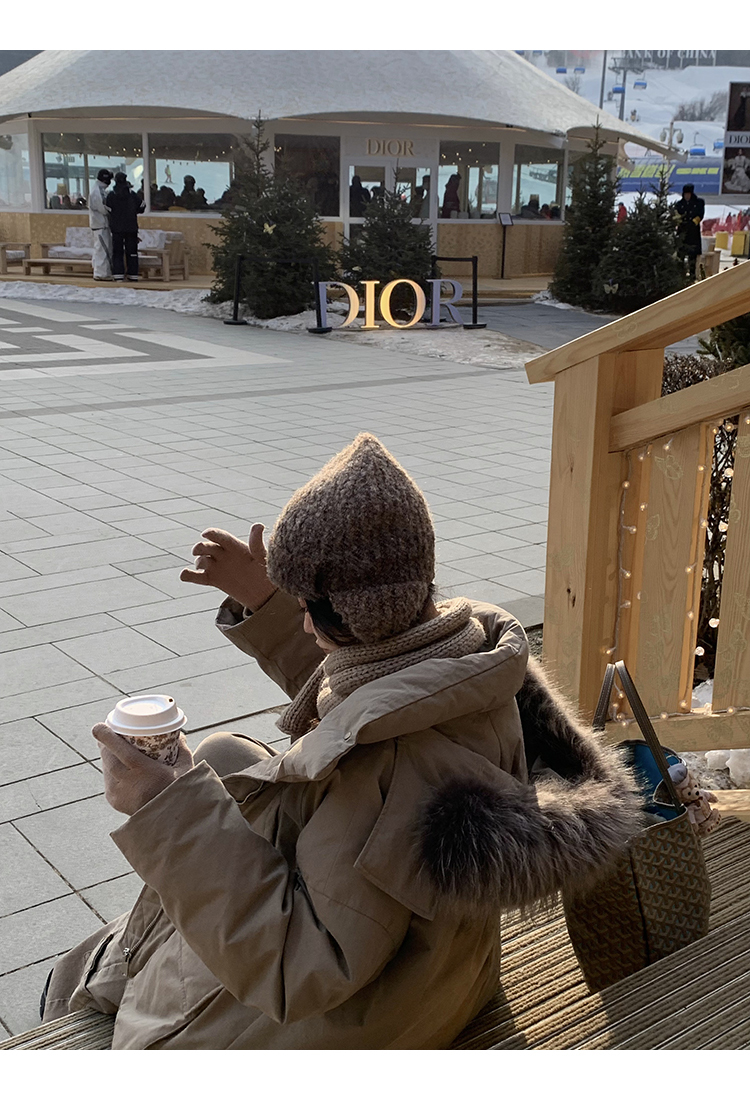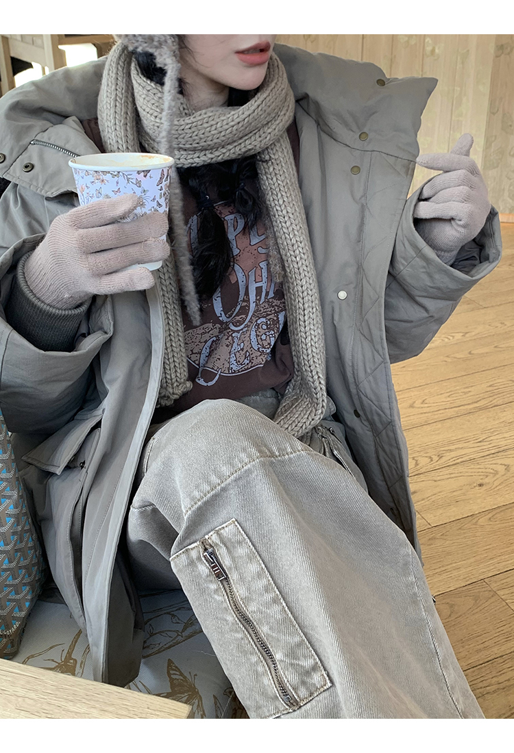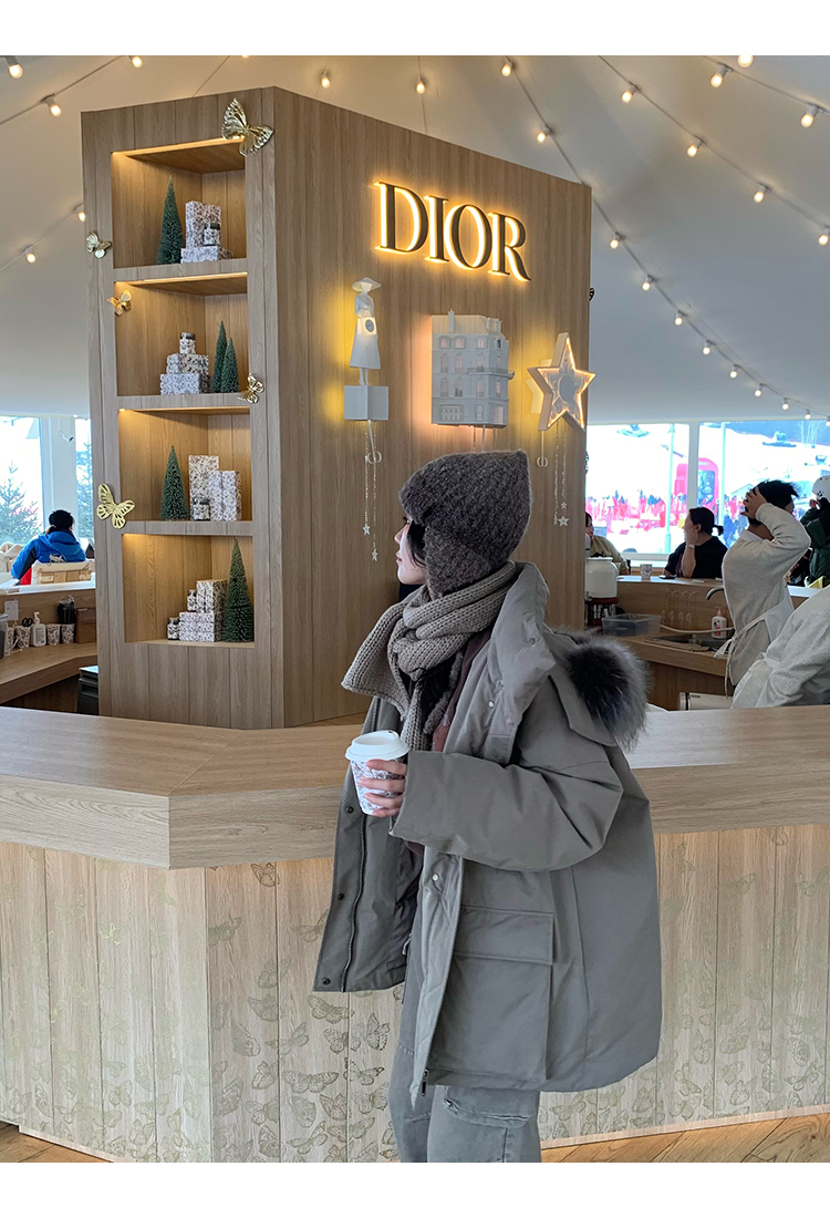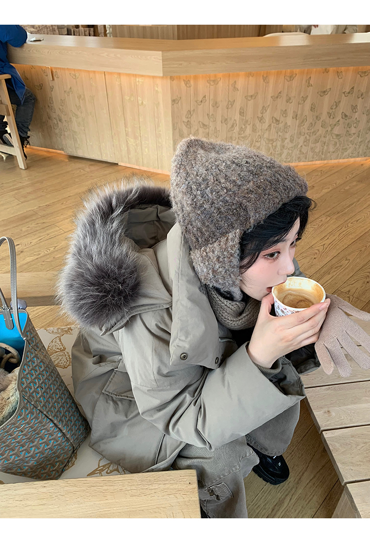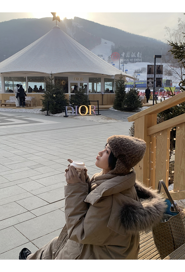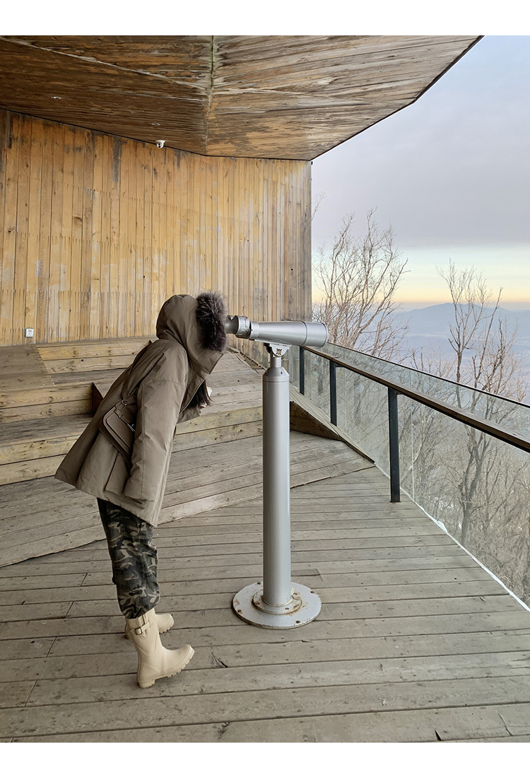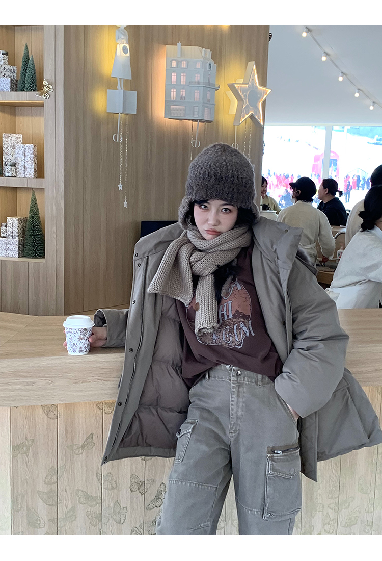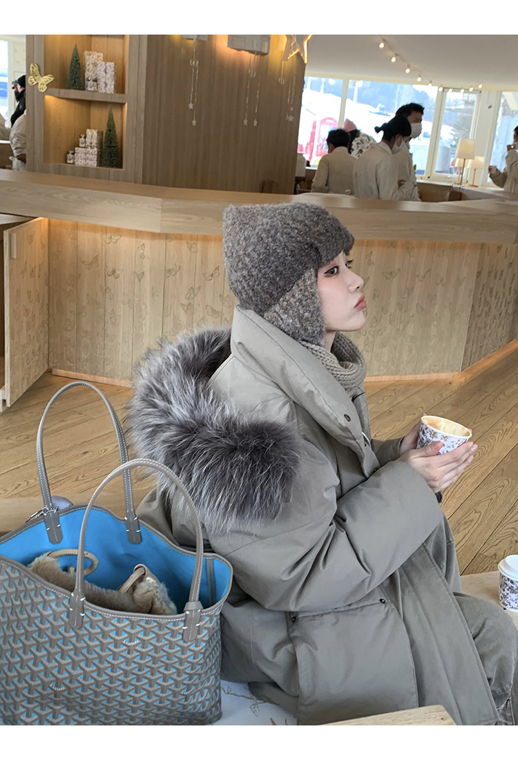 领型设计可拆卸帽子+可拆卸定染貉子毛领,工装感和可爱版型上身不显臃肿