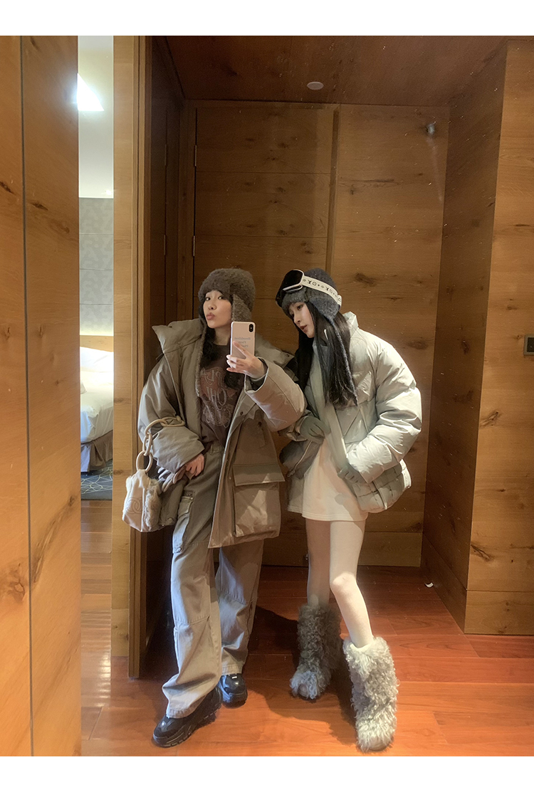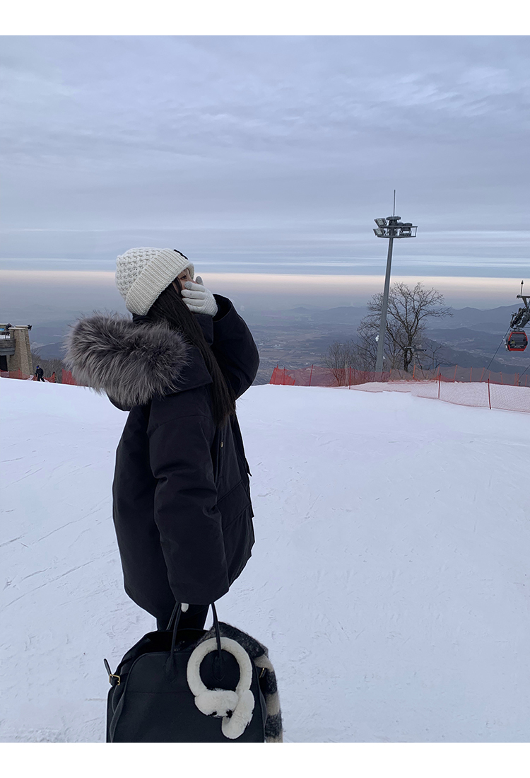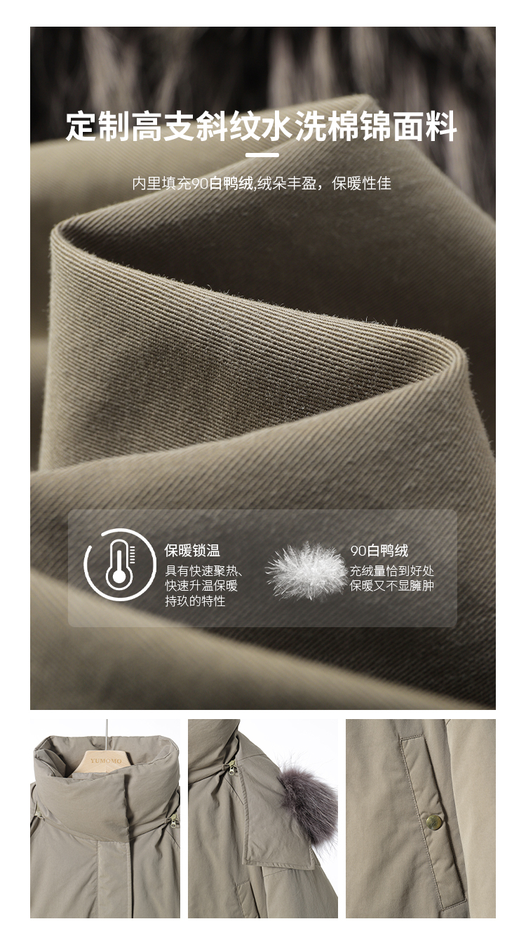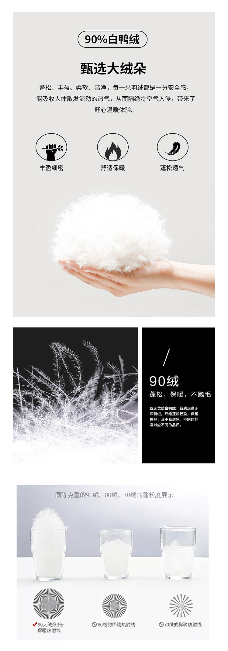 内里填充90白鸭绒,绒朵丰盈,保暖性佳