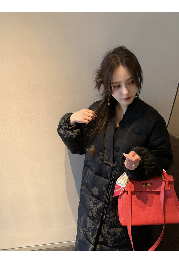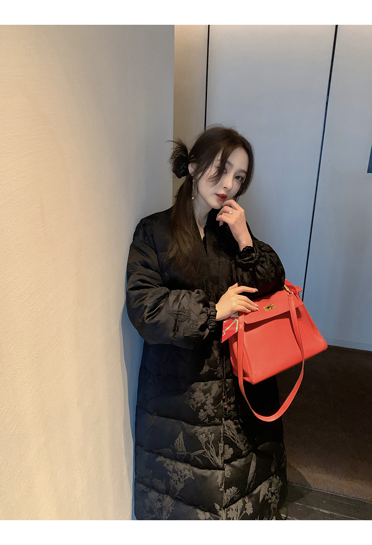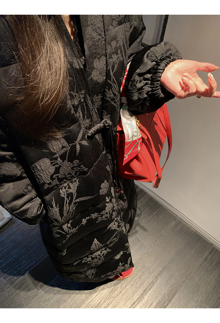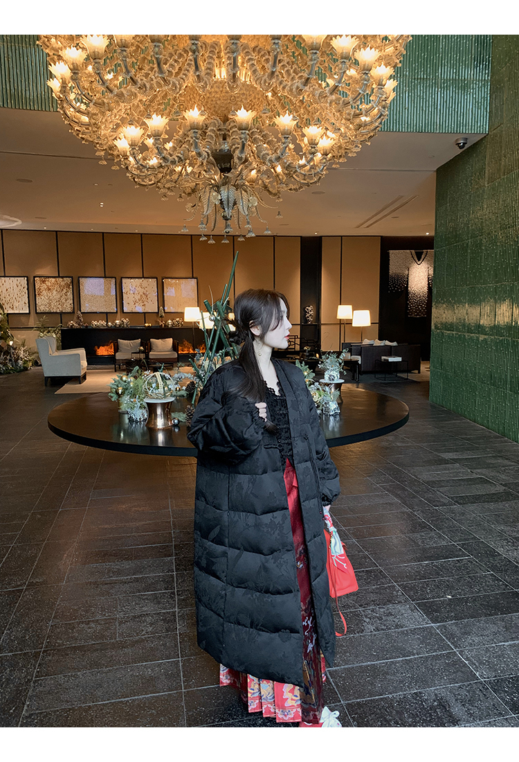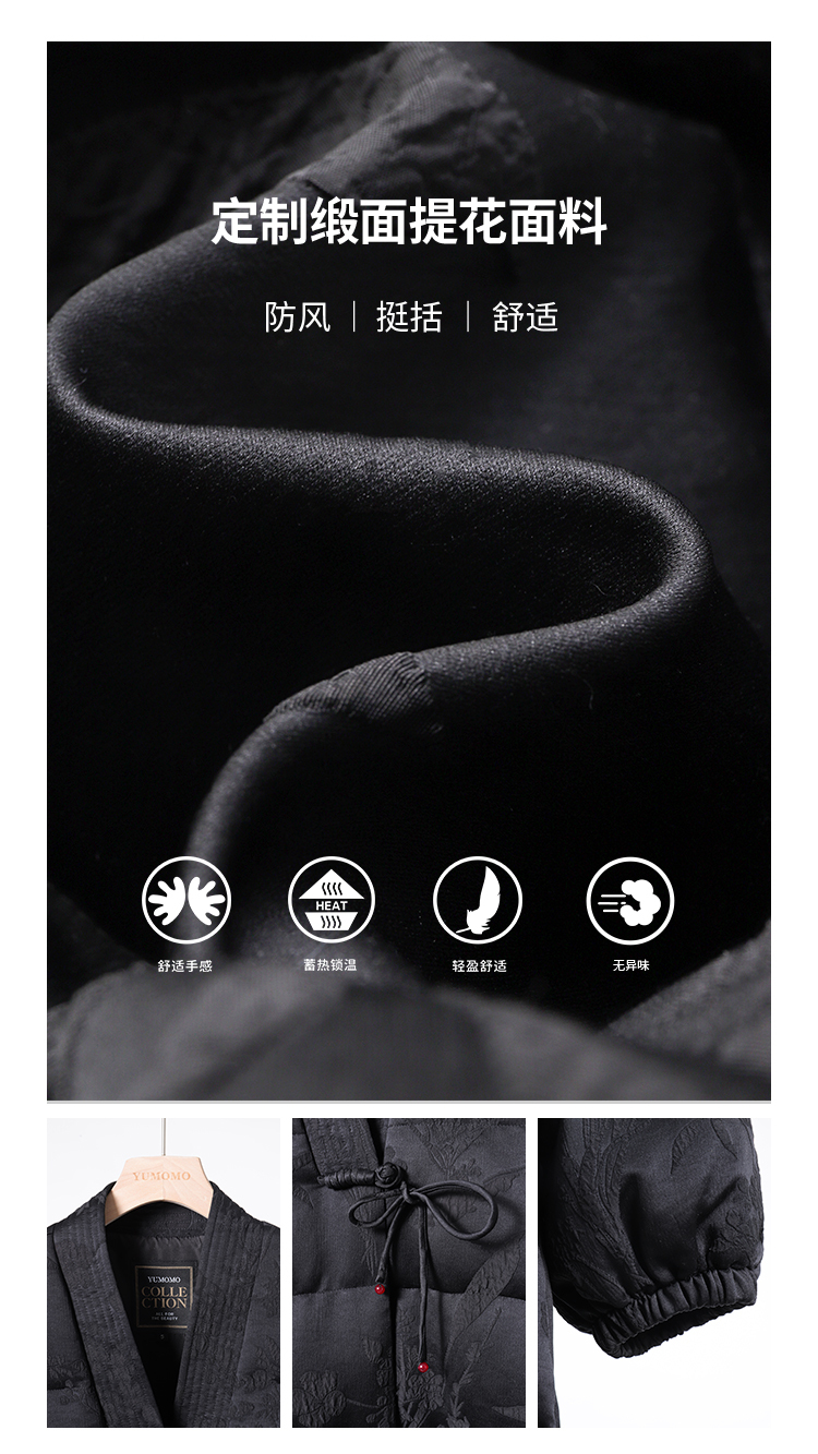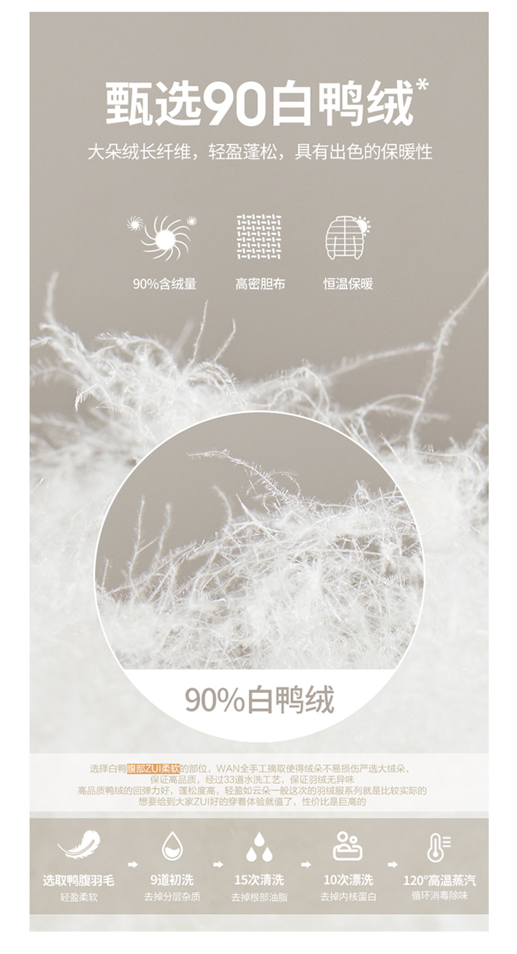 面料品名: 缎面提花面料 填充物:90白鸭绒