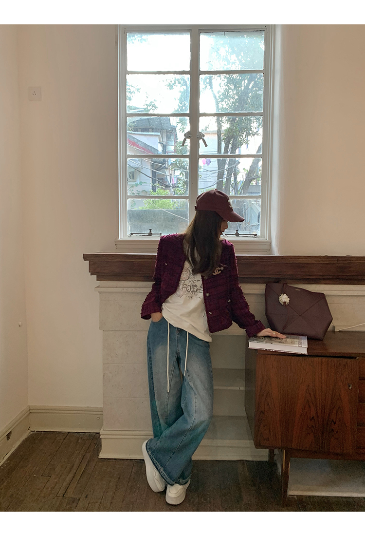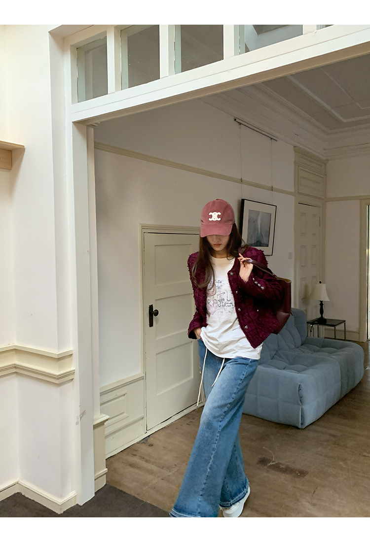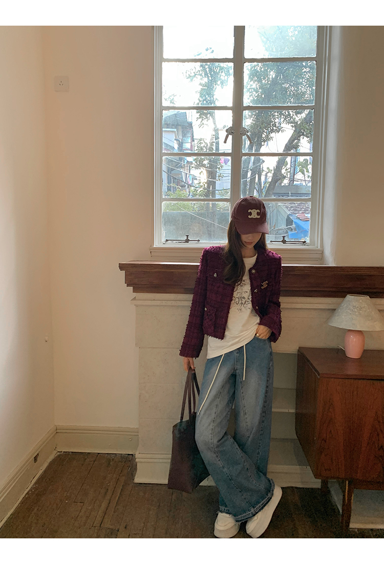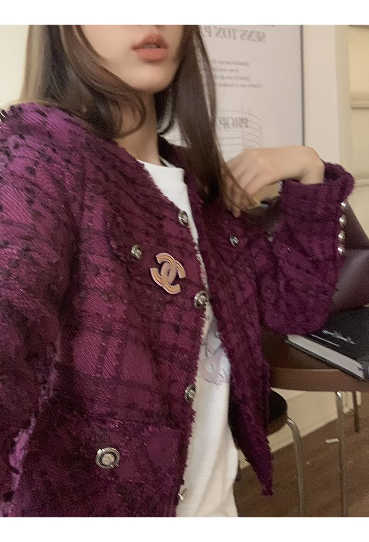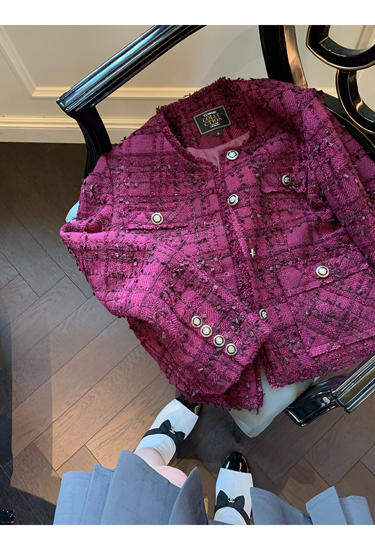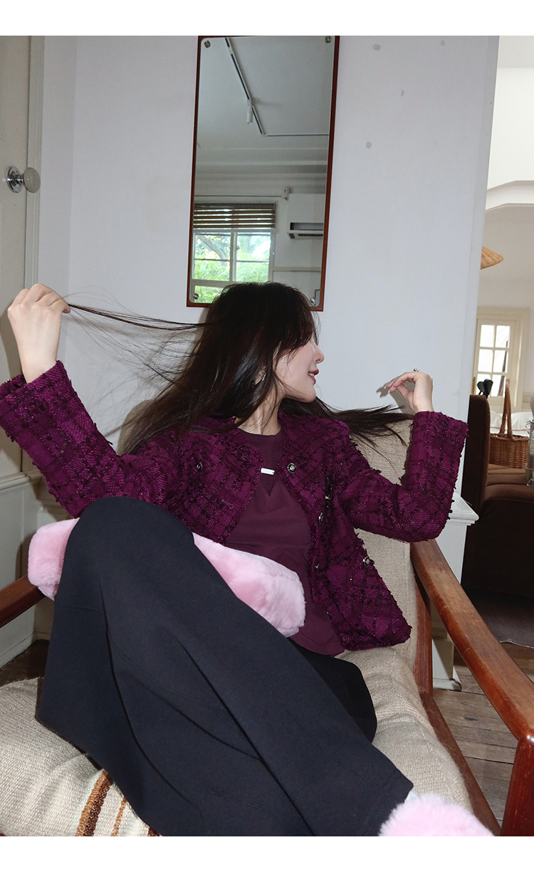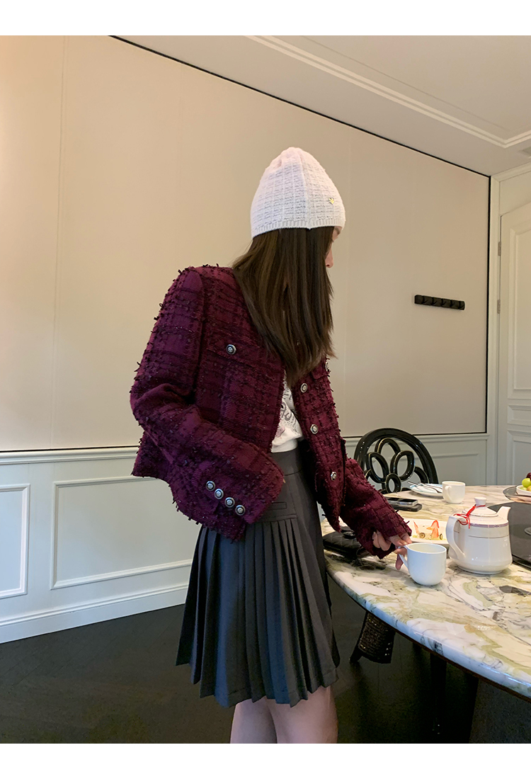 這款粗花呢短外套高芨顯質感,休閒的拉毛邊設計細節滿滿,